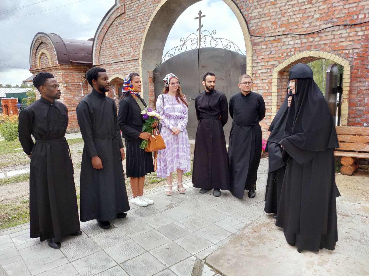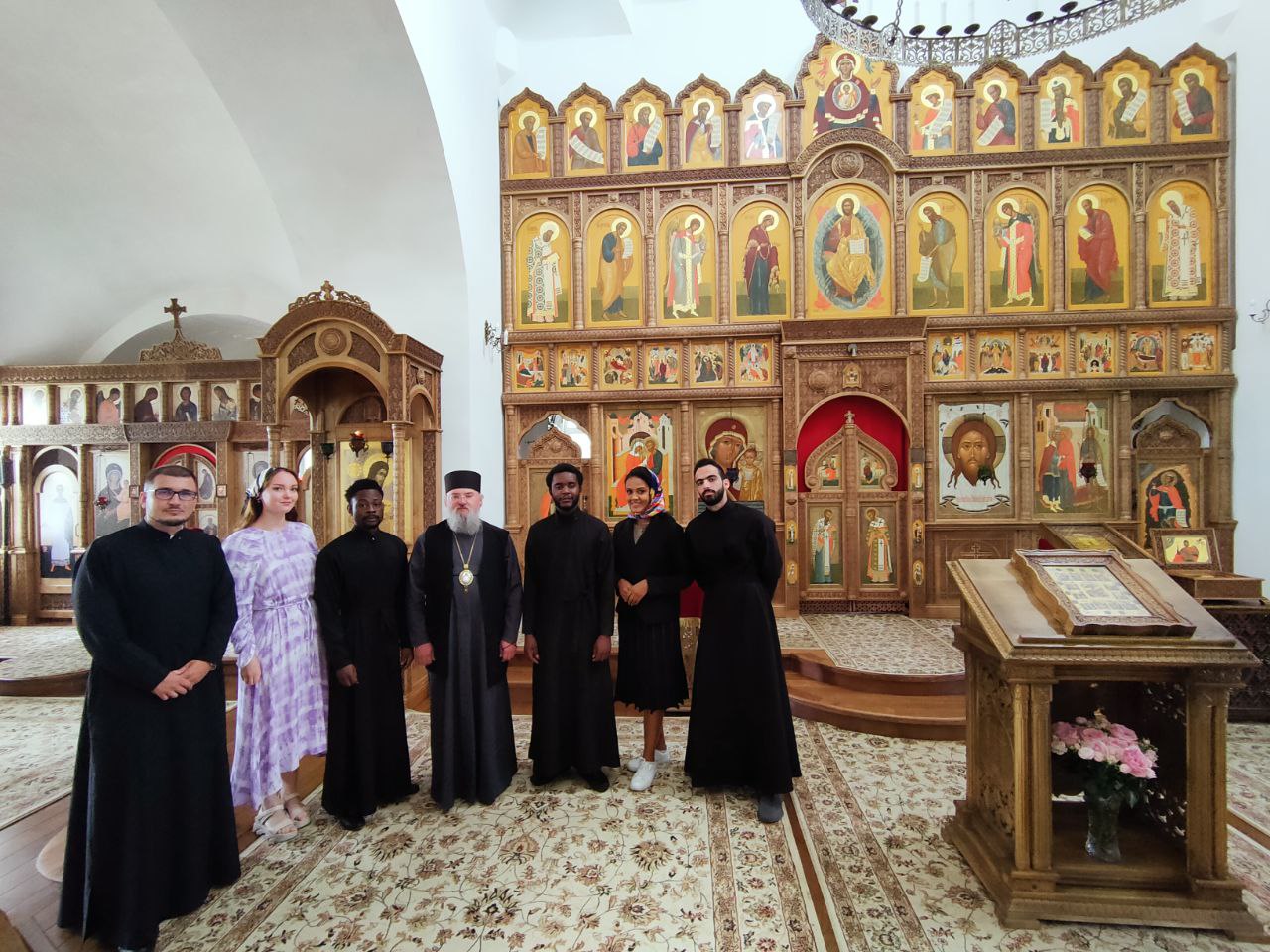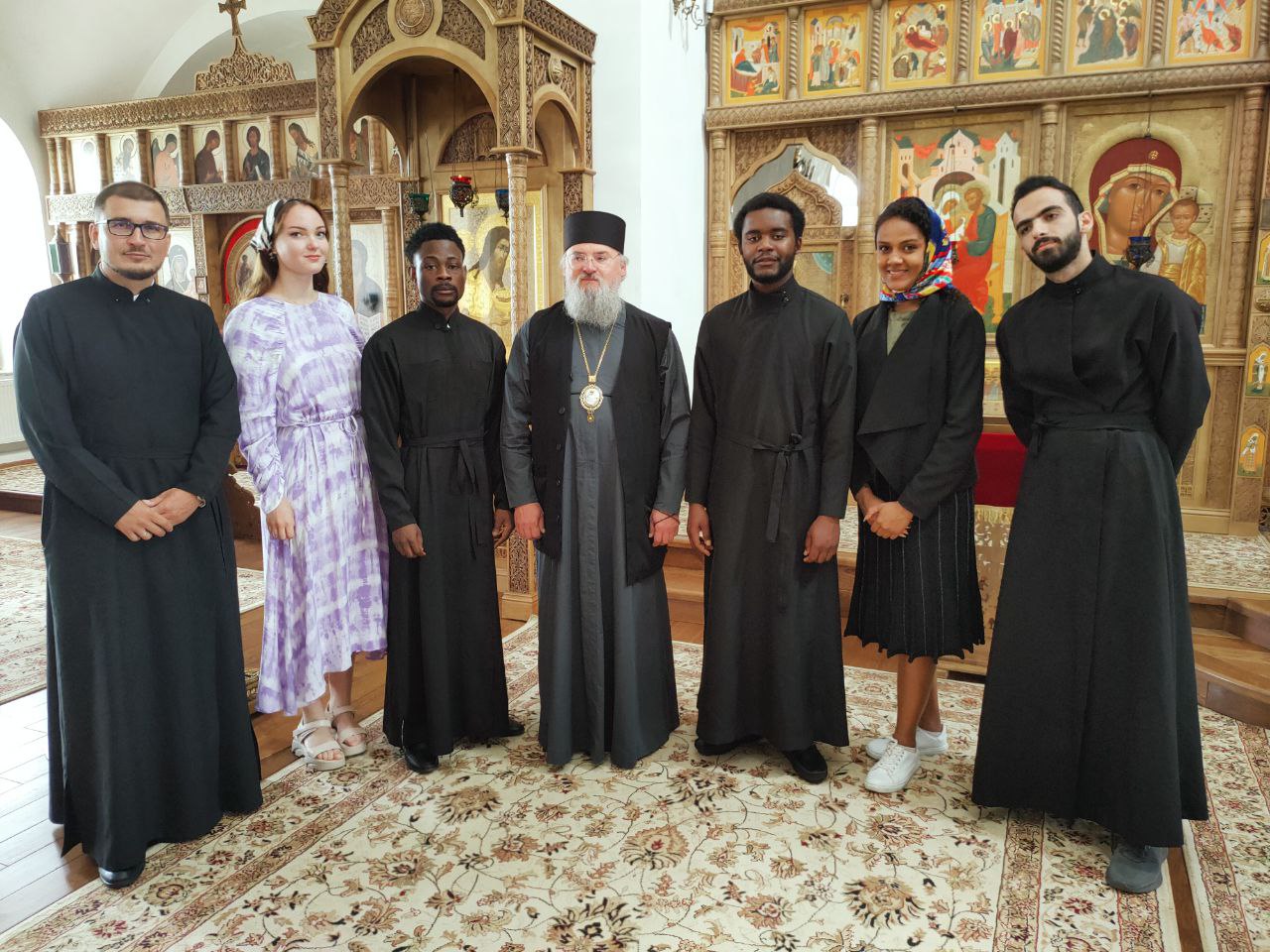 В состав прибывшей группы вошли: Бляшон Глеб Александрович (руководитель делегации), и.о. руководителя Отдела по культуре Челябинской епархии; Уткина Елена Александровна, руководитель Центра социокультурный адаптации иностранных студентов; Алешандре Бэнза-Эдсон (в крещении Александр), гражданин Анголы, студент Челябинского государственного института культуры, иподиакон митрополита Челябинского и Миасского Алексия; Мануэль Мухонго-Джоби (в крещении Мануил), гражданин Анголы, студент Челябинского государственного института культуры, иподиакон митрополита Челябинского и Миасского Алексия; Мажд Хаираб (в крещении Иоанн), гражданин Сирии, абитуриент Екатеринбургской духовной семинарии, иподиакон митрополита Челябинского и Миасского Алексия; Дениза Сантос (в крещении Дарья), гражданка Бразилии, архитектор и дизайнер, волонтер и активист православной молодёжи Челябинской епархии.