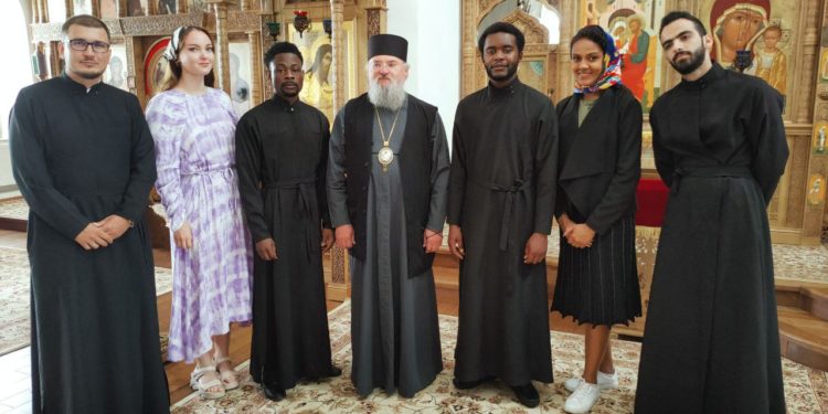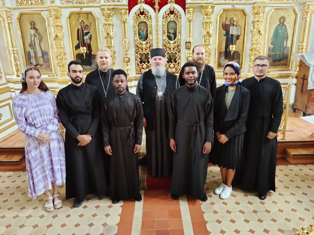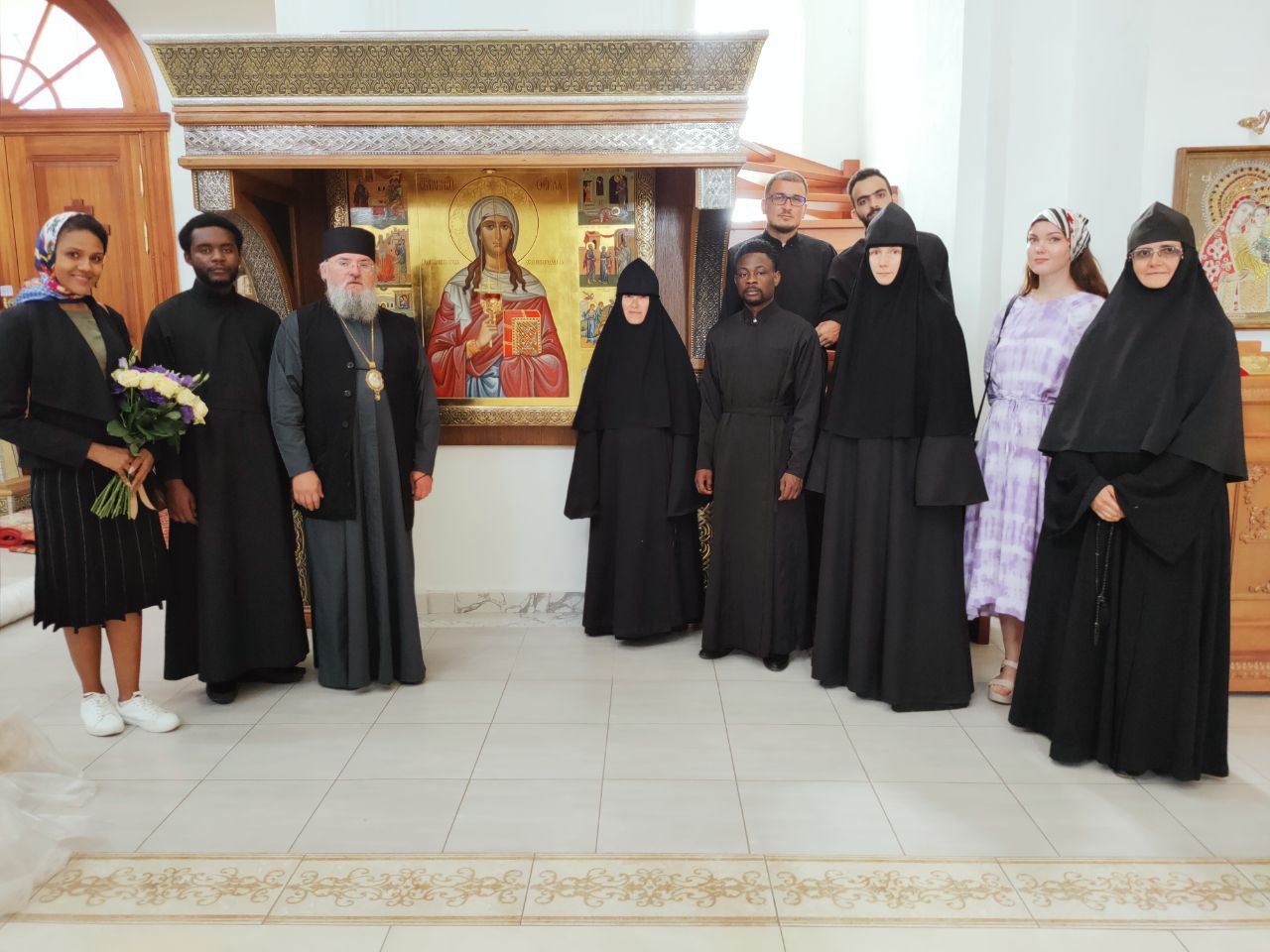 В состав прибывшей группы вошли: Бляшон Глеб Александрович (руководитель делегации), и.о. руководителя Отдела по культуре Челябинской епархии; Уткина Елена Александровна, руководитель Центра социокультурный адаптации иностранных студентов; Алешандре Бэнза-Эдсон (в крещении Александр), гражданин Анголы, студент Челябинского государственного института культуры, иподиакон митрополита Челябинского и Миасского Алексия; Мануэль Мухонго-Джоби (в крещении Мануил), гражданин Анголы, студент Челябинского государственного института культуры, иподиакон митрополита Челябинского и Миасского Алексия; Мажд Хаираб (в крещении Иоанн), гражданин Сирии, абитуриент Екатеринбургской духовной семинарии, иподиакон митрополита Челябинского и Миасского Алексия; Дениза Сантос (в крещении Дарья), гражданка Бразилии, архитектор и дизайнер, волонтер и активист православной молодёжи Челябинской епархии.