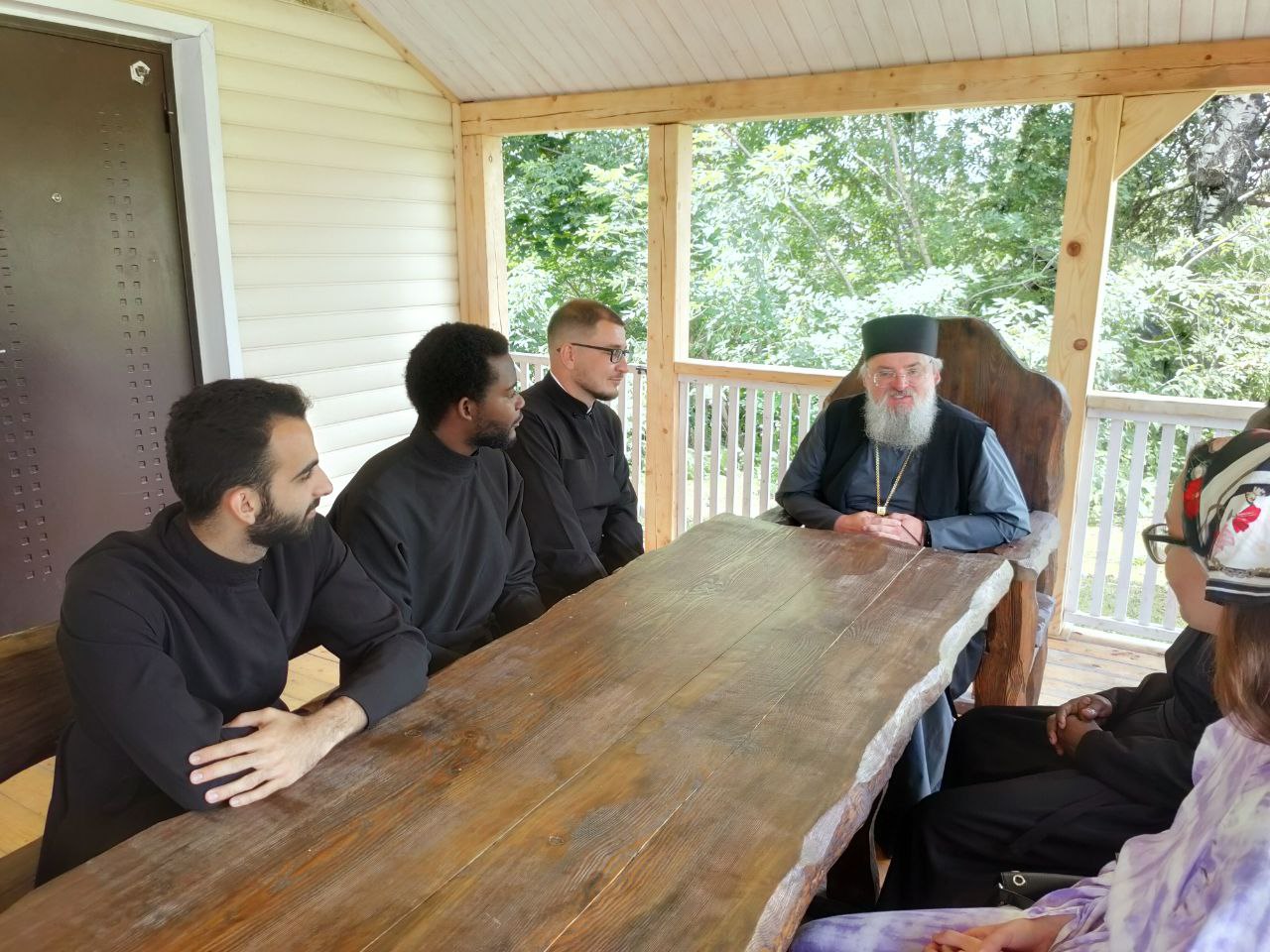 Гостей приветствовал епископ Козельский и Людиновский Никита, а затем делегация посетила некоторые храмы и обители Козельской епархии, знакомясь с их историей и святынями.