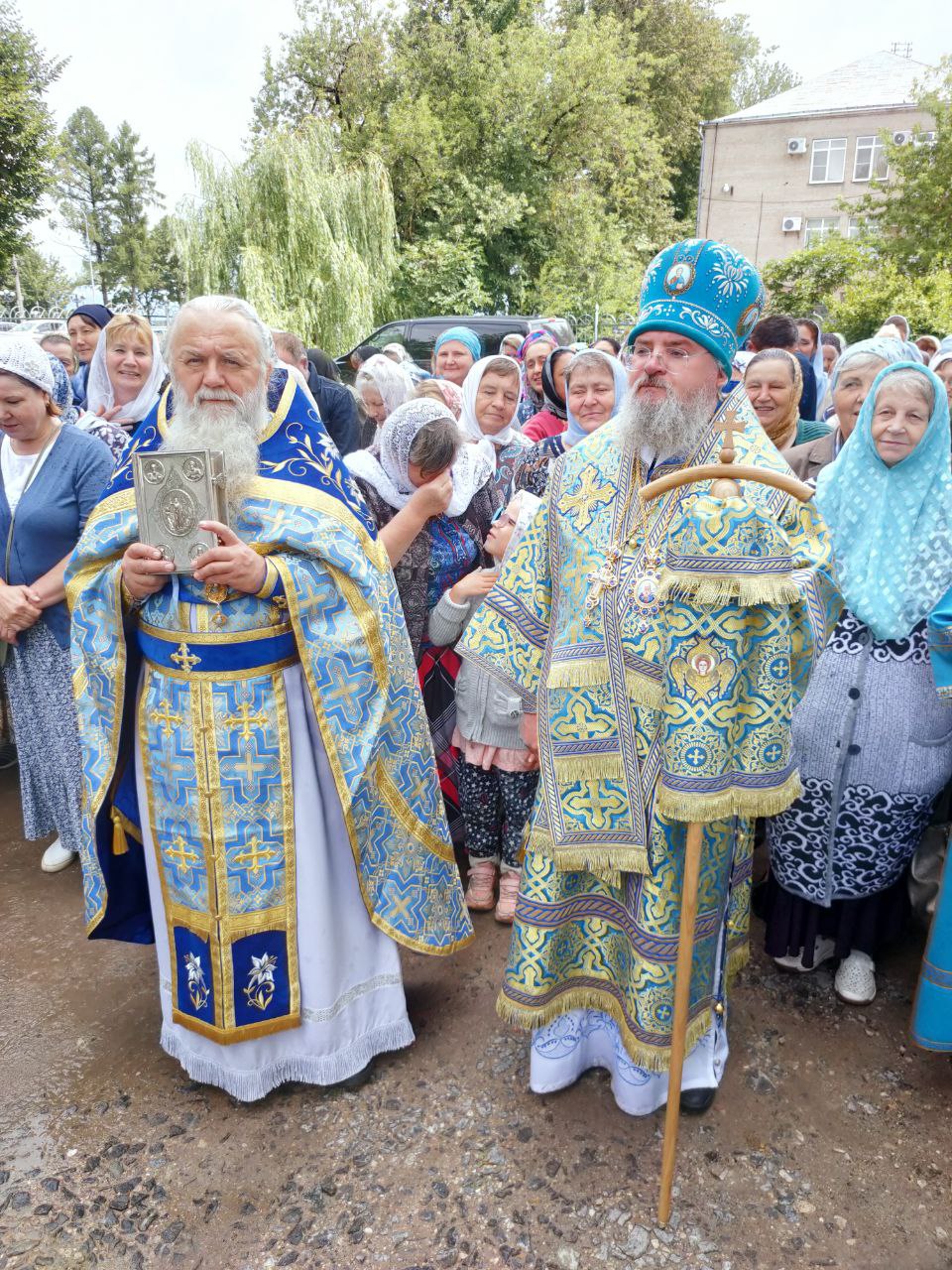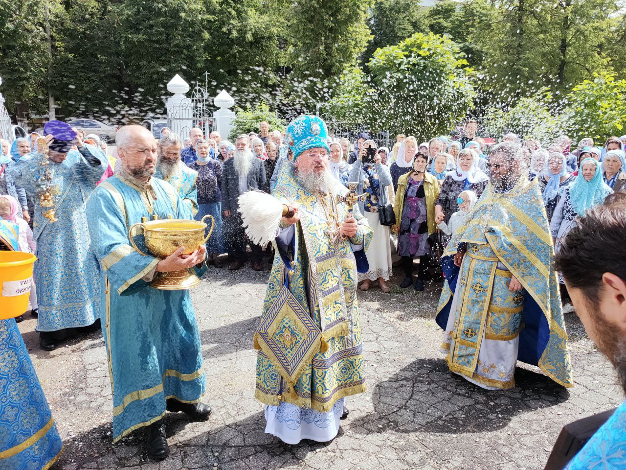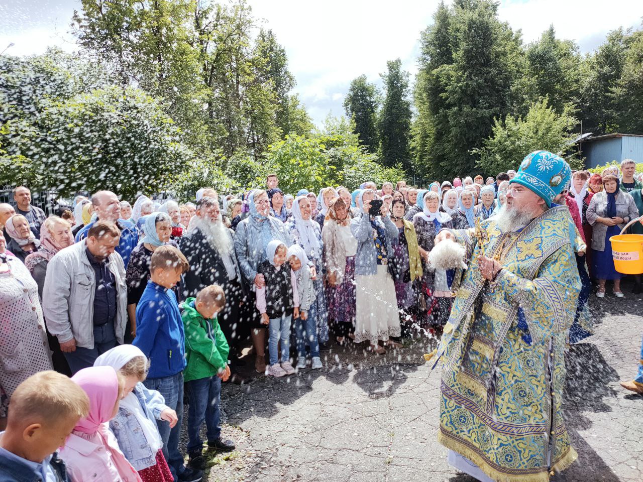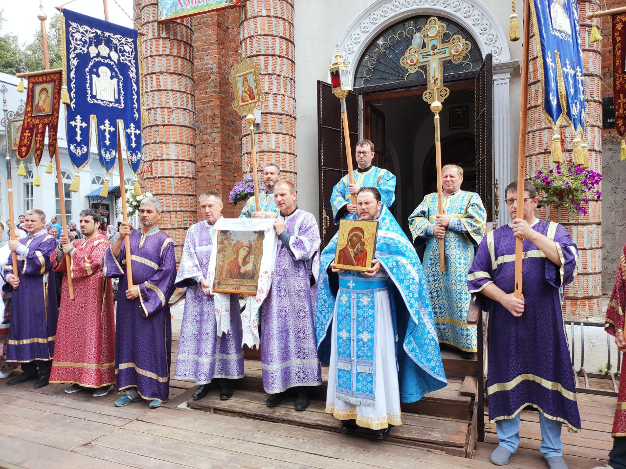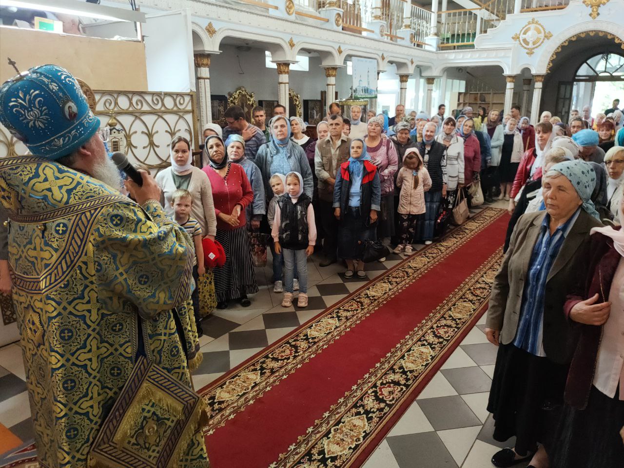 По окончании литургии состоялся праздничный крестный ход, в завершении которого, вознеся молитву Пресвятой Богородице, владыка обратился к богомольцам с проповедью.
