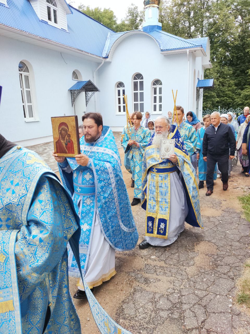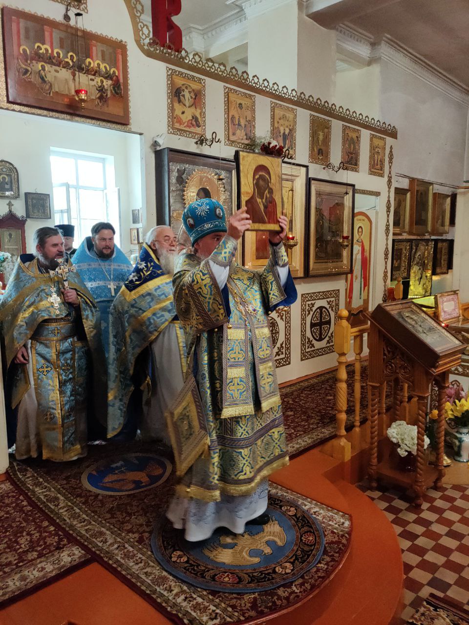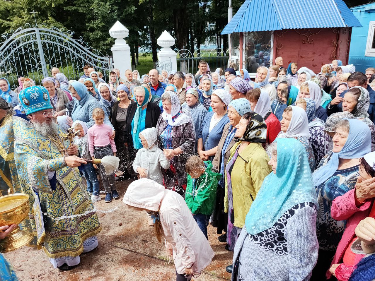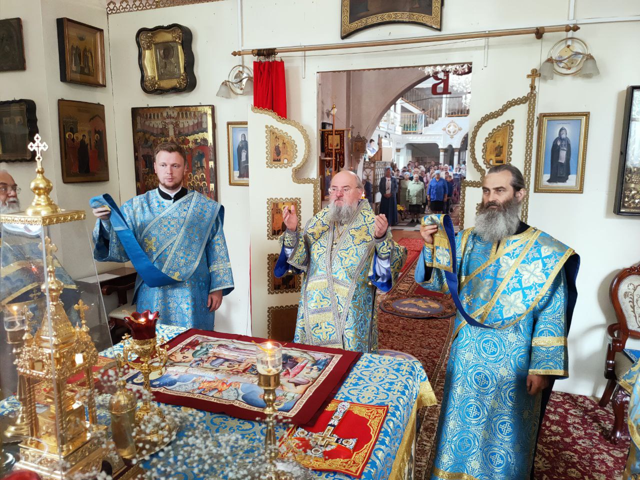 По окончании литургии состоялся праздничный крестный ход, в завершении которого, вознеся молитву Пресвятой Богородице, владыка обратился к богомольцам с проповедью.