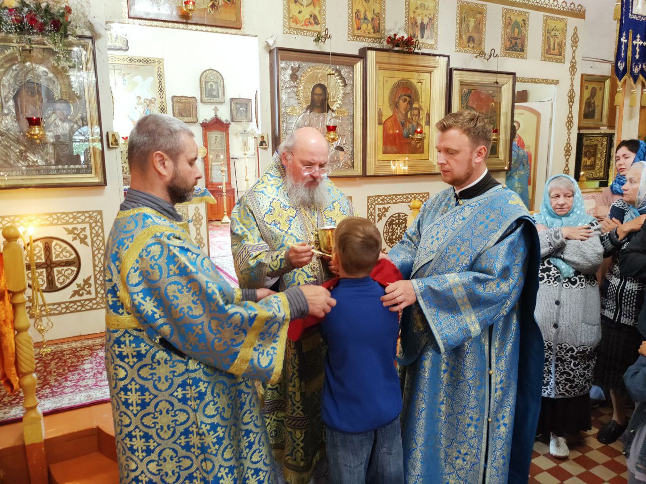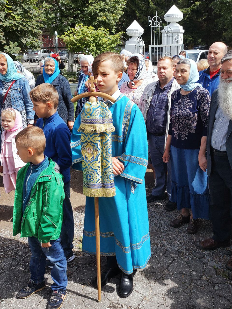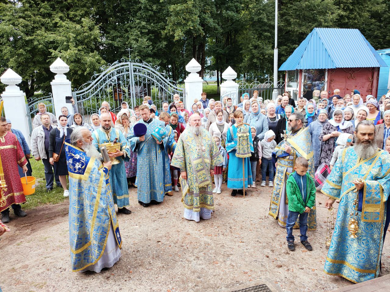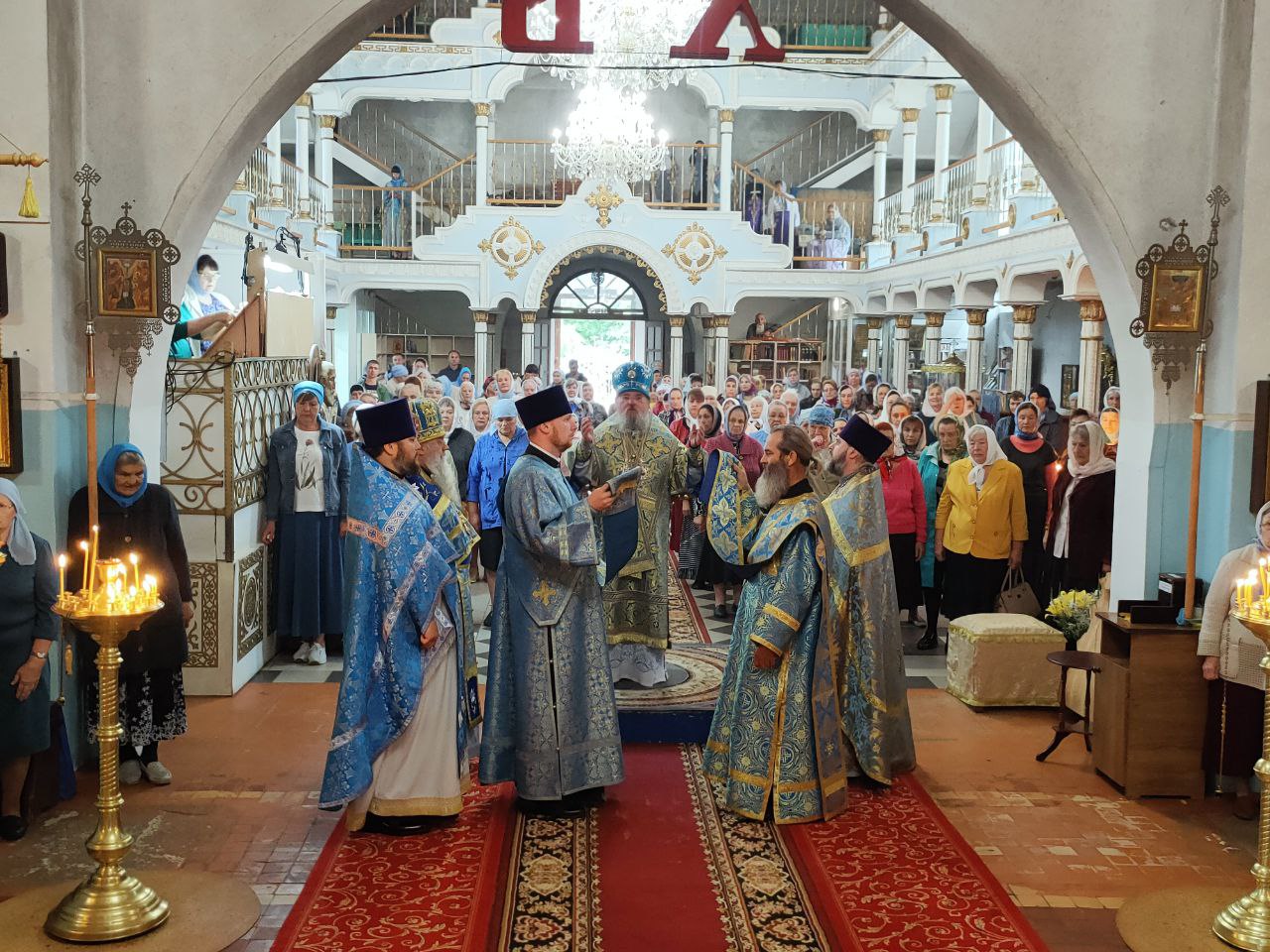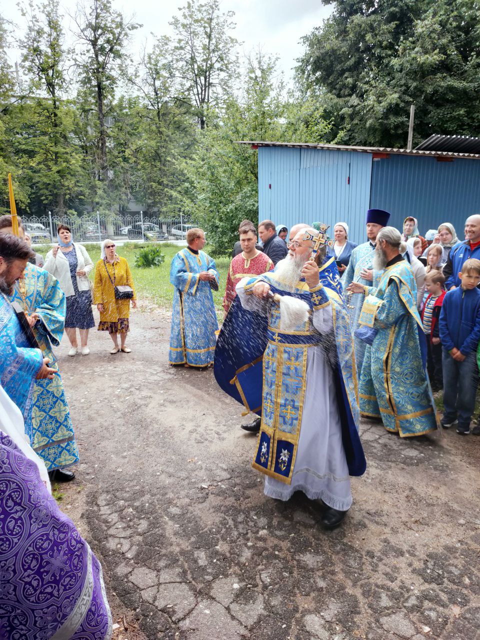 По окончании литургии состоялся праздничный крестный ход, в завершении которого, вознеся молитву Пресвятой Богородице, владыка обратился к богомольцам с проповедью.
