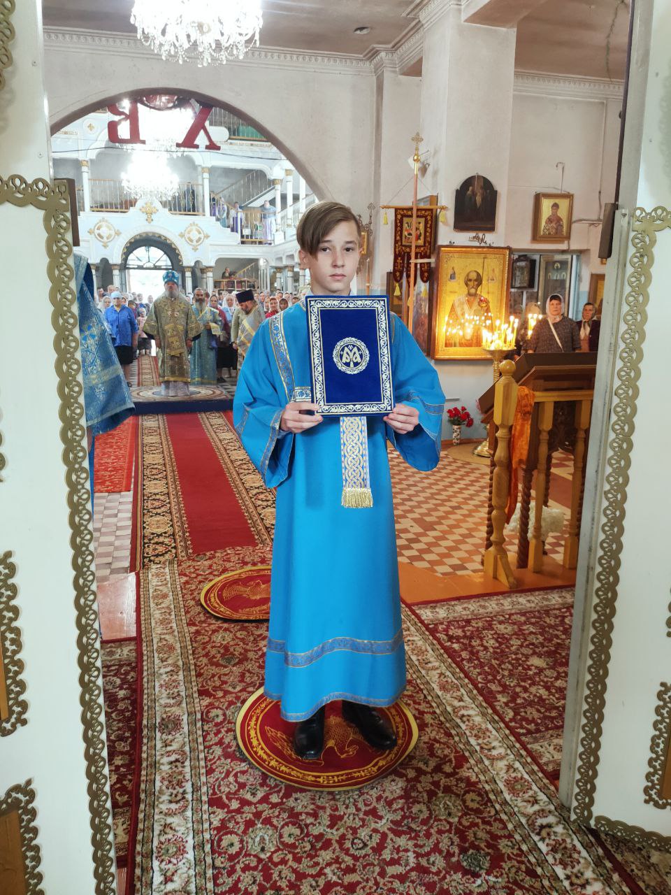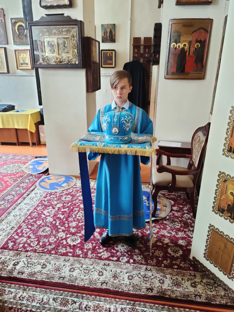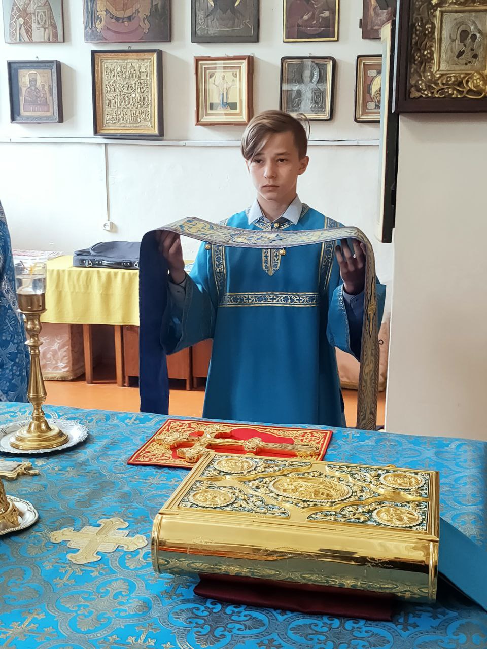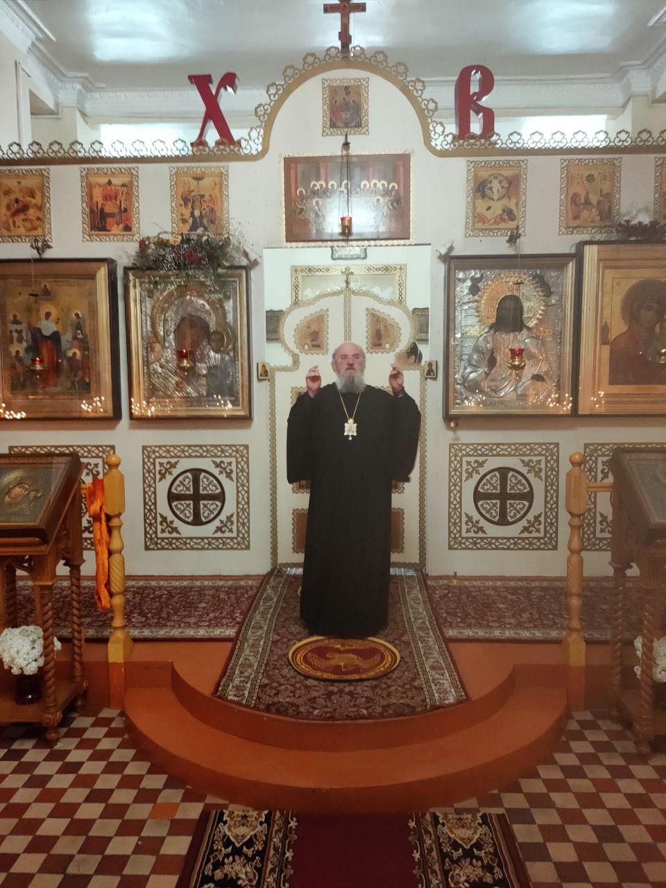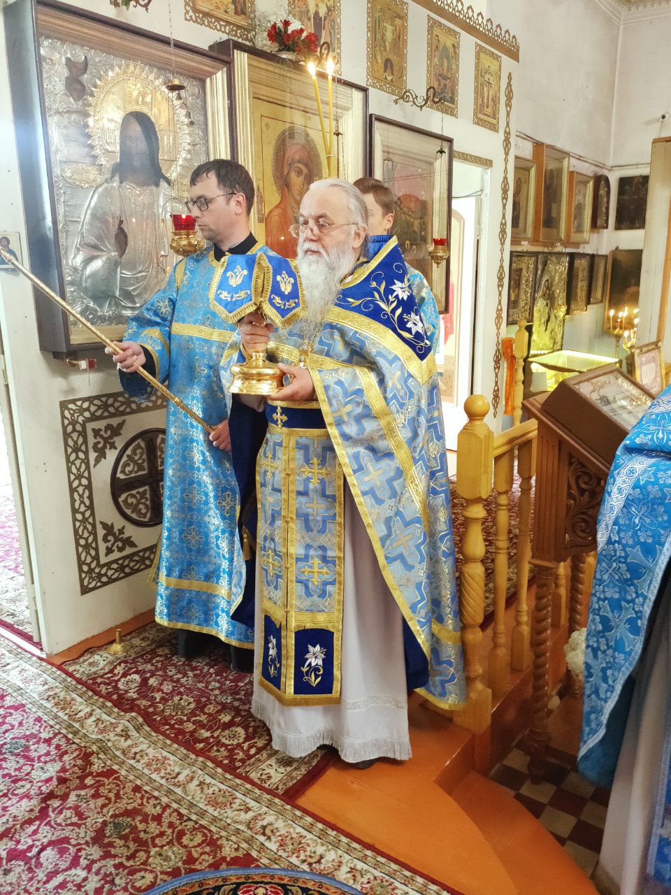 Преосвященному владыке сослужили: благочинный округа, настоятель собора, духовник епархии митрофорный протоиерей Алексий Жиганов, протоиерей Михаил Карпенко, протоиерей Антоний Хатунцев, диакон Евгений Ковригин и диакон Андрей Соколов.