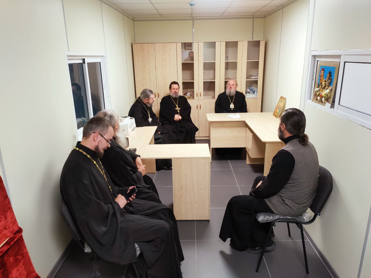 К обсуждению предлагались вопросы встречи традиционного ежегодного крестного хода Калужской митрополии «Помолимся о земле Калужской» с чудотворным Калужским образом Божией Матери, а также материальной помощи вдове почившего клирика храма преподобного Сергия Радонежского протоиерея Дмитрия Губаль и вынужденным переселенцам с территории Украины, проживающим в Людиново.