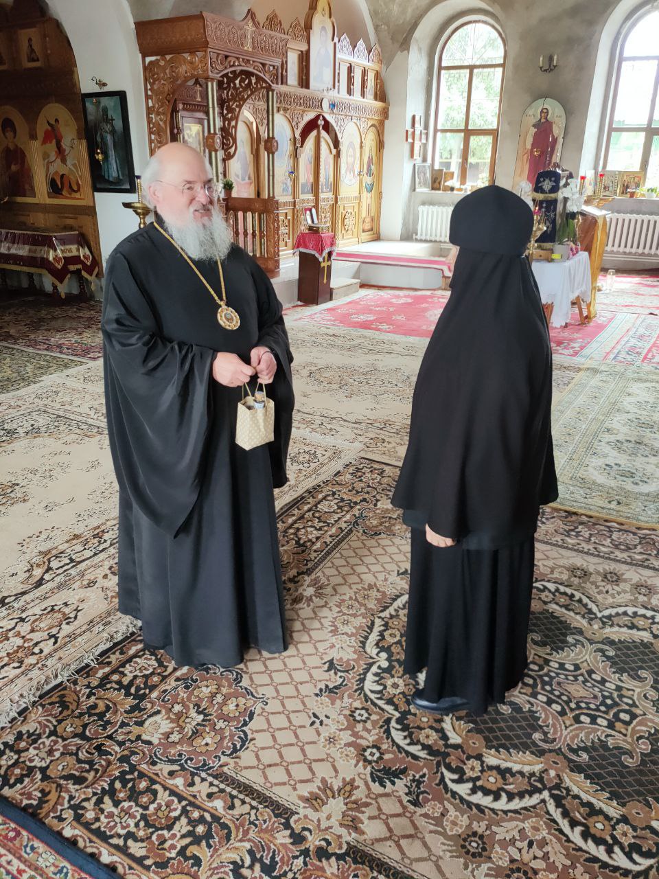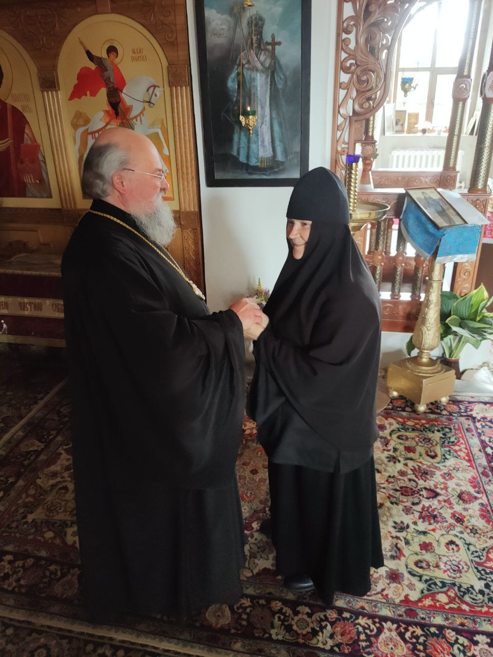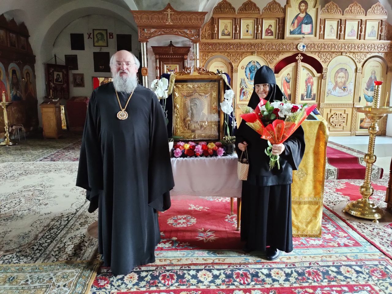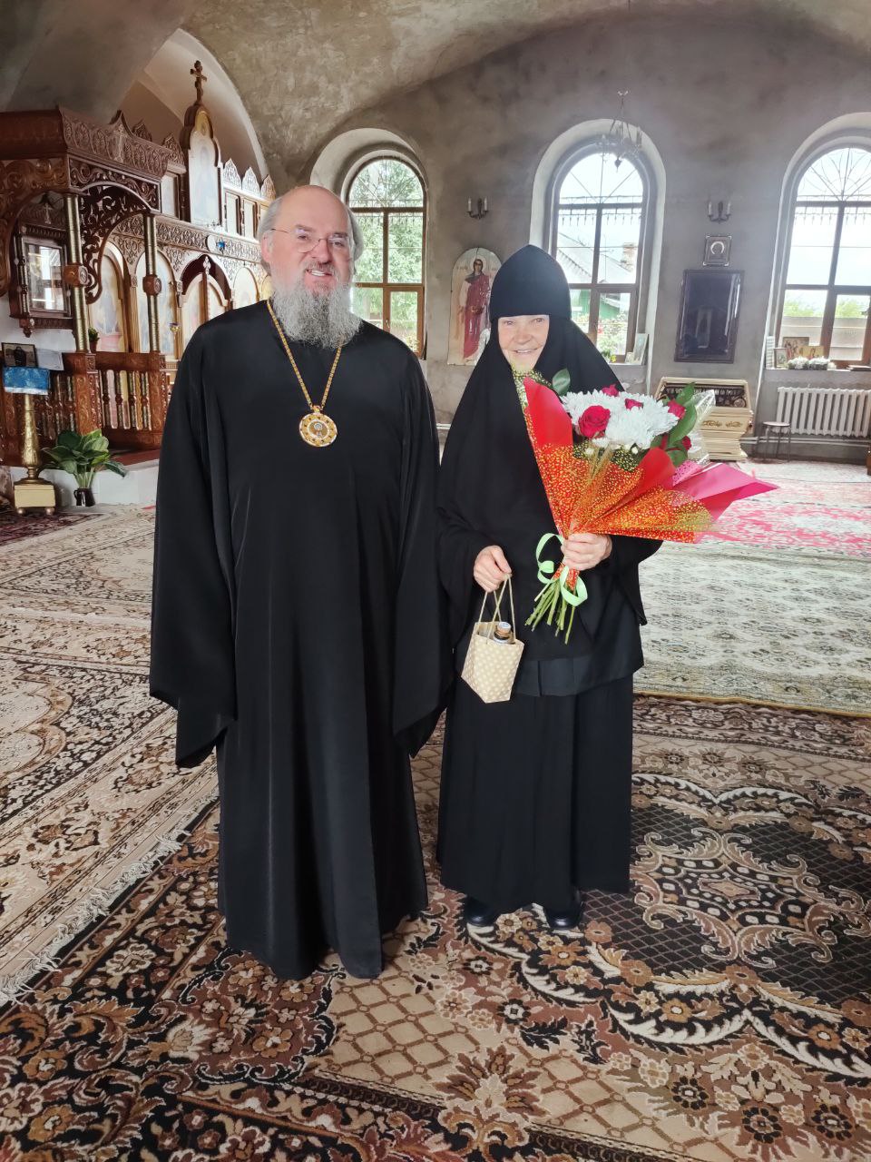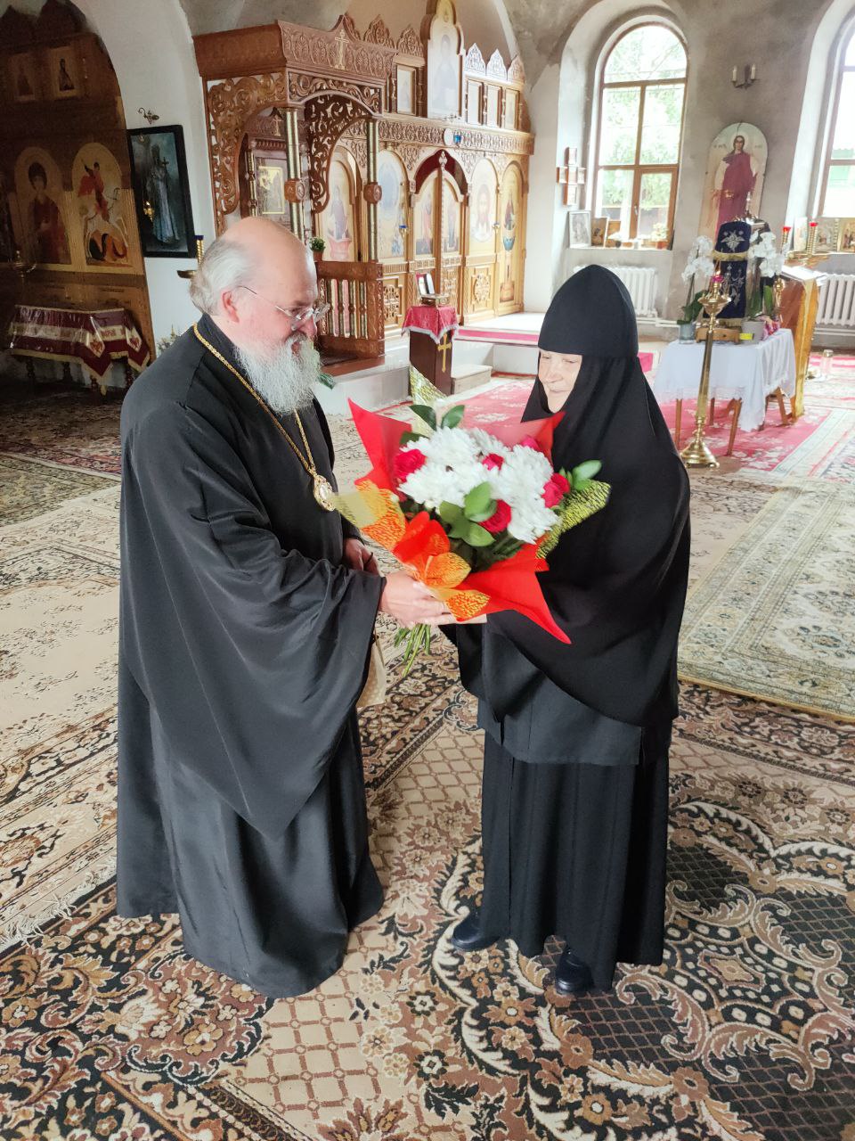 В этот день матушку посетил епископ Козельский и Людиновский Никита, который преподнес ей букет цветов и памятный подарок с пожеланием долгих лет жизни и крепкого духовного и телесного здоровья.