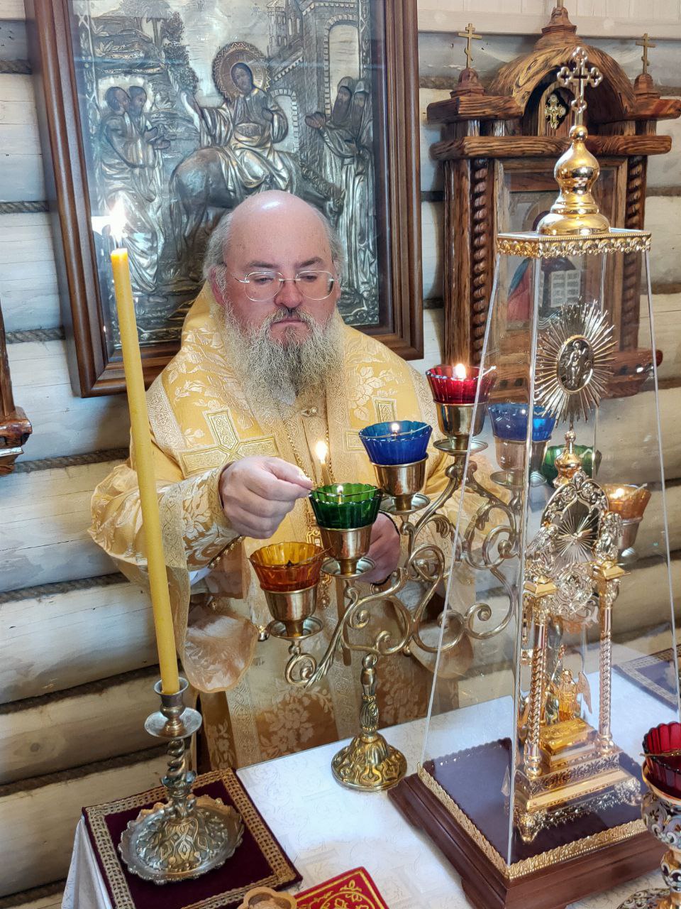 По отпусте литургии священнослужители совершили славление великой княгине Ольге, а затем, вознеся молитву святой, епископ Никита обратился к богомольцам с проповедью.