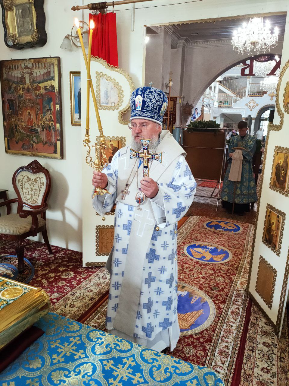 По благословению митрополита Калужского и Боровского Климента, в рамках традиционного ежегодного Крестного хода по городам Калужской митрополии, 25 июля 2022 года в Казанский собор города Людиново на поклонение верующим прибыли чудотворная Калужская икона Божией Матери и икона Святые и новомученики в Земле Калужской просиявшие. Духовенство и жители города с радостью встретили Царицу Небесную Крестным ходом. Встреча святыни состоялась у Поклонного Креста, затем Крестным ходом под звон колоколов иконы были внесены в Казанский собор. Вечернее богослужение возглавил благочинный Людиновского округа настоятель Казанского собора города Людиново протоиерей Алексий Жиганов в сослужении настоятеля Лазаревского храма города Людиново протоиерея Михаила Карпенко и клирика Казанского собора города Людиново диакона Андрея Соколова.  В честь прибытия чудотворной иконы «Калужской» Божией Матери после Всенощного бдения был отслужен акафист Царице Небесной. В течение всей ночи все желающие в храме могли читать акафист Богородице.  Утром 26 июля пред святынями был совершен водосвятный молебен с чтением акафиста Божией Матери, а затем Божественная литургия, которую возглавил Управляющий Козельской епархией епископ Козельский и Людиновский Никита. Архипастырю сослужили: благочинный Людиновского округа настоятель Казанского собора города Людиново протоиерей Алексий Жиганов, настоятель храма преподобного Сергия Радонежского протоиерей Василий Биляк, настоятель Лазаревского храма протоиерея Михаила Карпенко, диакон Евгений Ковригин и диакон Андрей Соколов. После сугубой ектении епископ Никита вознес молитву о скорейшем восстановлении мира. По благословению Святейшего Патриарха Московского и всея Руси Кирилла эта сугубая молитва совершается во всех храмах Русской Православной Церкви за каждым богослужением. По отпусте литургии священнослужители совершили славление Божией Матери, а затем владыка Никита обратился к богомольцам с архипатырским словом.