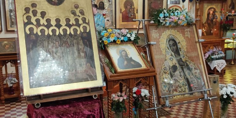 «О Пресвятая Владычице Богородице, Царице Небеси и земли! К Тебе прибегаем и к Твоей помощи взываем: сохрани землю нашу от нашествия врагов иноплеменных, и от всякия болезни душевныя и телесныя, и от смертоносныя язвы, да всегда поем, величаем и славим Тя, Пресвятую Богородицу, яко благую и Дивную Заступницу нашу во веки веков. Аминь».