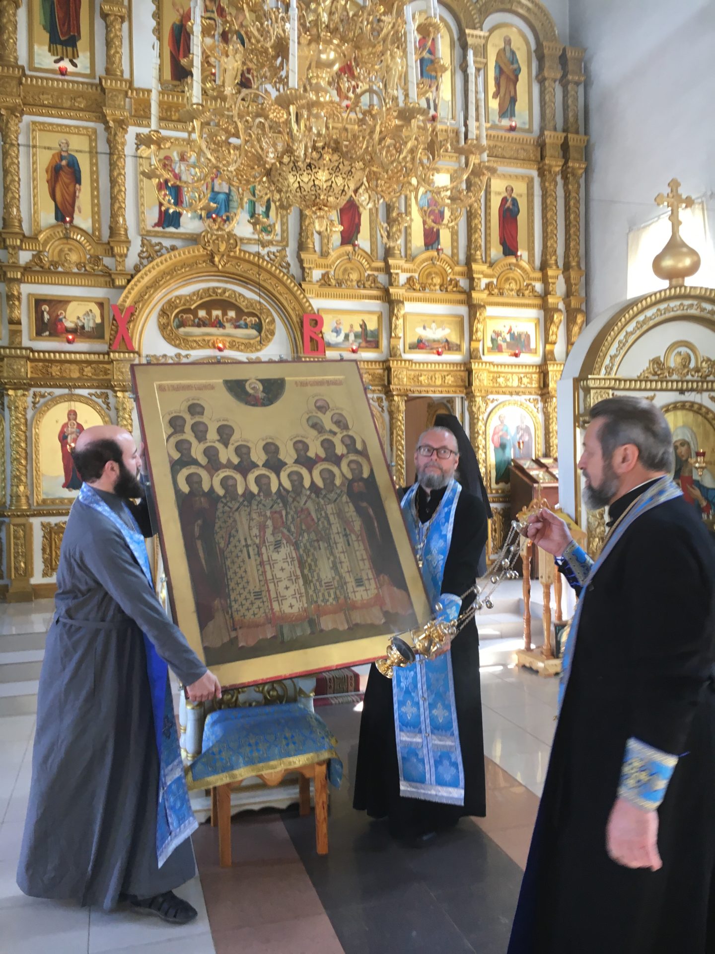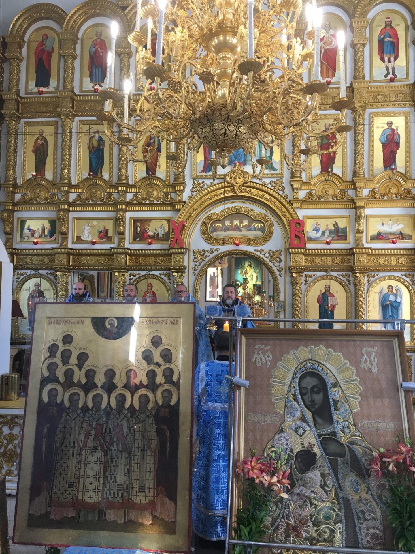В рамках традиционного ежегодного Крестного хода по городам и весям Калужской митрополии 28 июля 2022 года Крестный ход с Калужской иконой Божией Матери и с иконой Святых новомучеников в земле Калужской просиявших встретили жители и духовенство Думиничского района во главе с благочинным округа протоиереем Иоанном Старостой в храме святых бессеребренников Косьмы и Дамиана поселка Думиничи. Сразу по встрече святыни был отслужен молебен с акафистом, и все верующие имели возможность помолиться и приложиться к святыням.