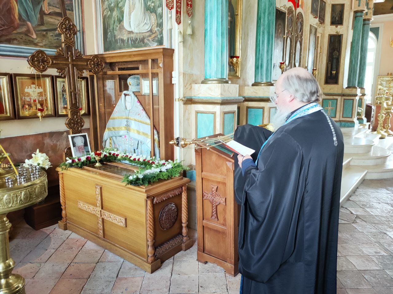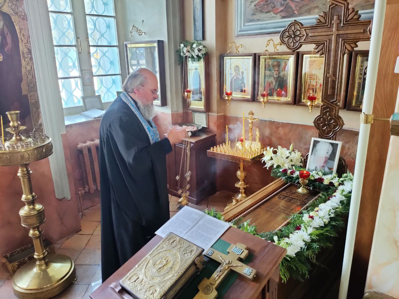 В храме Преображения Господня архипастырь совершил панихиду у могилы бывшего настоятеля протоиерея Леонтия Никифорова в день его рождения и накануне дня его тезоименитства.