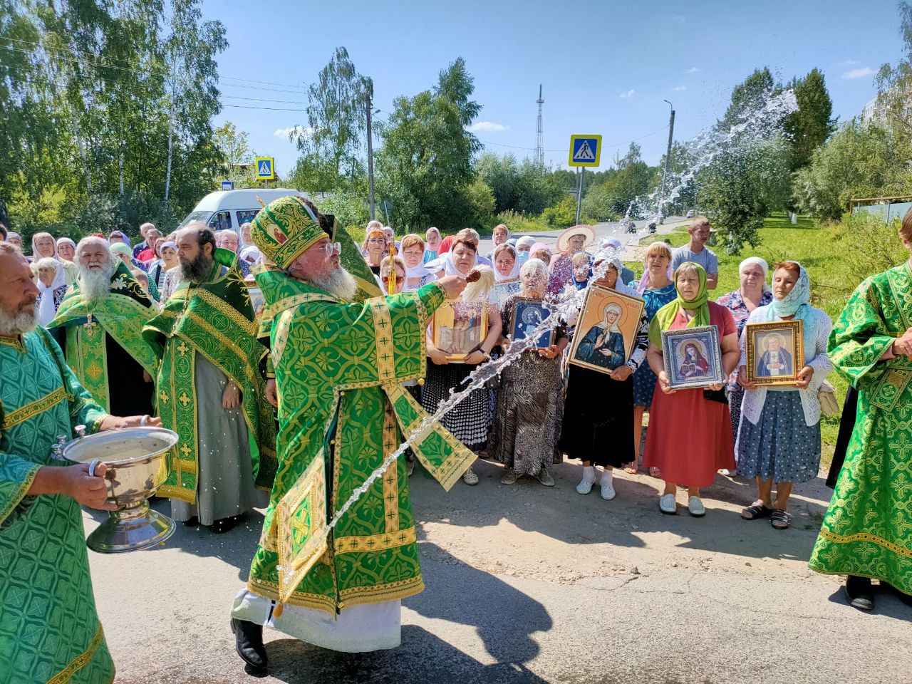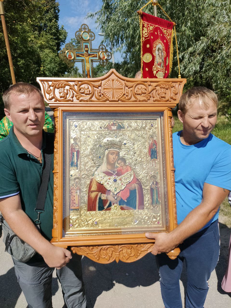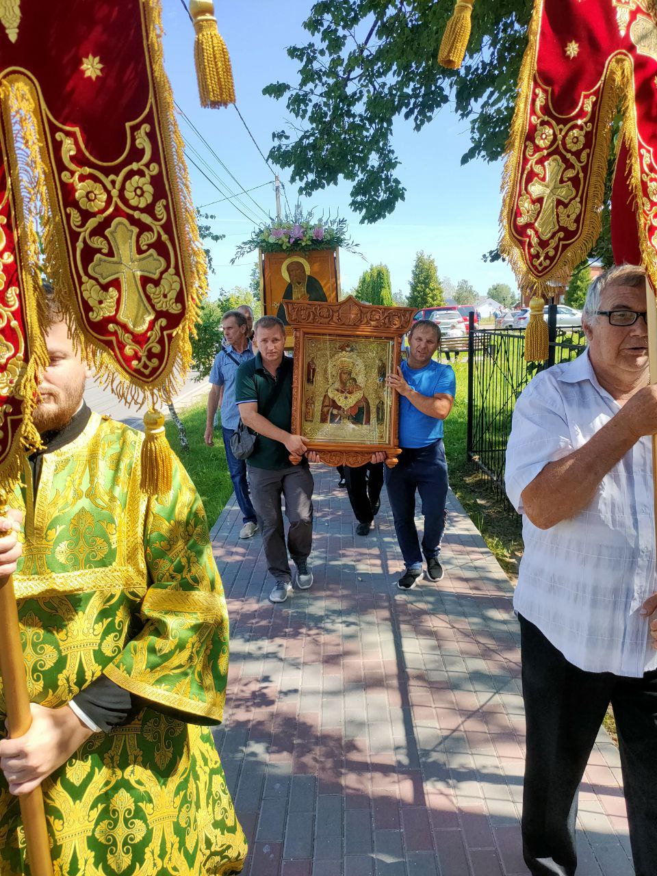Специально для участия в престольных торжествах в храм была доставлена икона Пресвятой Богородицы «Избавление от бед страждущих» — список с чудотворной иконы, хранящейся в Казанском соборе города Людиново.