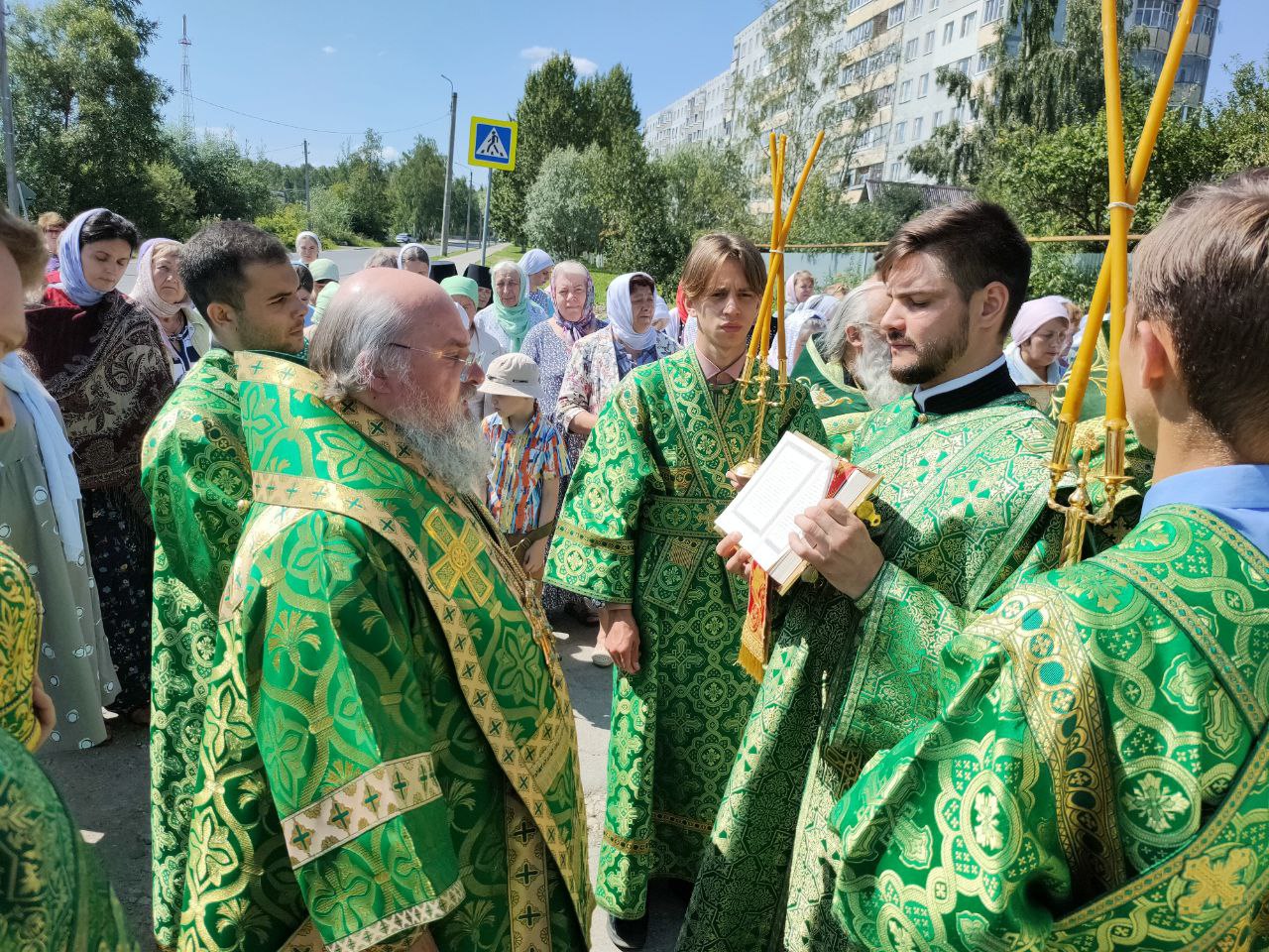 В продолжении крестного хода были сделаны четыре остановки на городских площадях с чтением молитв и Евангельских зачал Пресвятой Богородице и преподобному Серафиму Саровскому и кроплением святой водой.