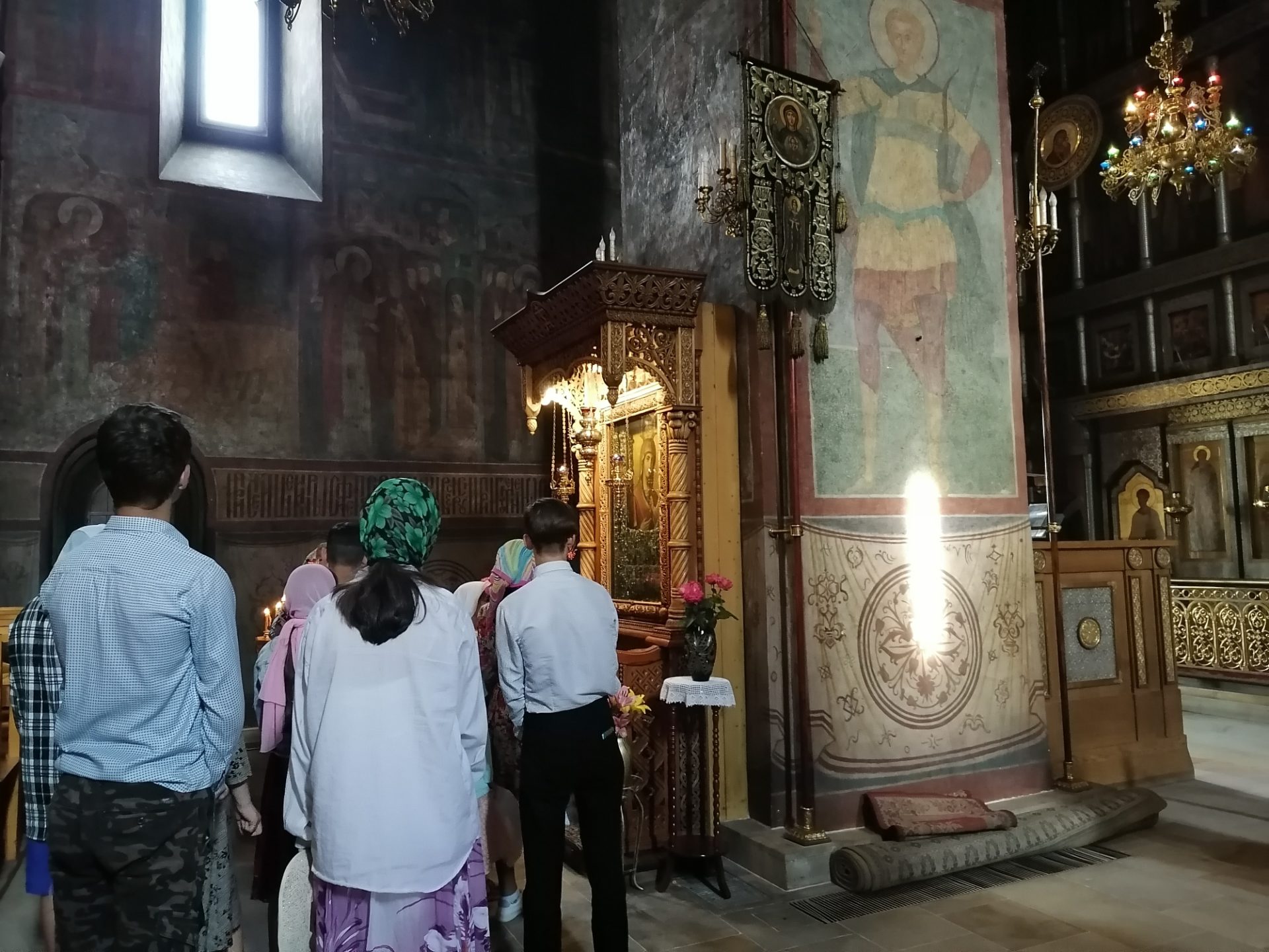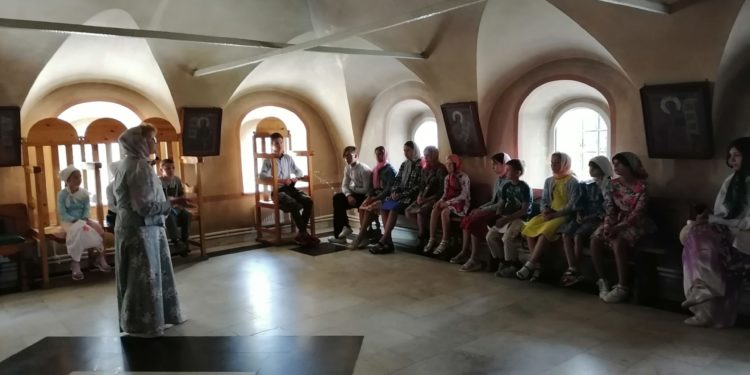 Дети из семей в трудной ситуации и дети беженцев с Донбасса, духовник Епархиального Социального центра помощи семье и детям «Рождественский» иерей Лев Шиповский по благословению епископа Козельского и Людиновского Никиты совершили паломническую поездку в Панфутьево-Боровский монастырь, познакомились с еще одной духовной жемчужиной земли Калужской. Очень хорошо встретили в монастыре детей, замечательная экскурсовод Ольга Николаевна провела двухчасовую экскурсию. Дети внимательно слушали увлекательный рассказ о жизни святого преподобного Панфутия Боровского, о строительстве монастыря, про вражеские осады монастырских стен. Дети видели пулевые отверстия на фресках. Поднимались на монастырские стены…Посетили несколько храмов на территории обители, приложились к святыням и мощам преподобного Панфутия. Каждый помолился о своем — кто о мире на Донбассе, кто о воюющих родных, а кто и о погибших близких…В трапезной все с аппетитом поели и послушали чтеца, читающего жития святых. Очень полезной и познавательной была поездка.