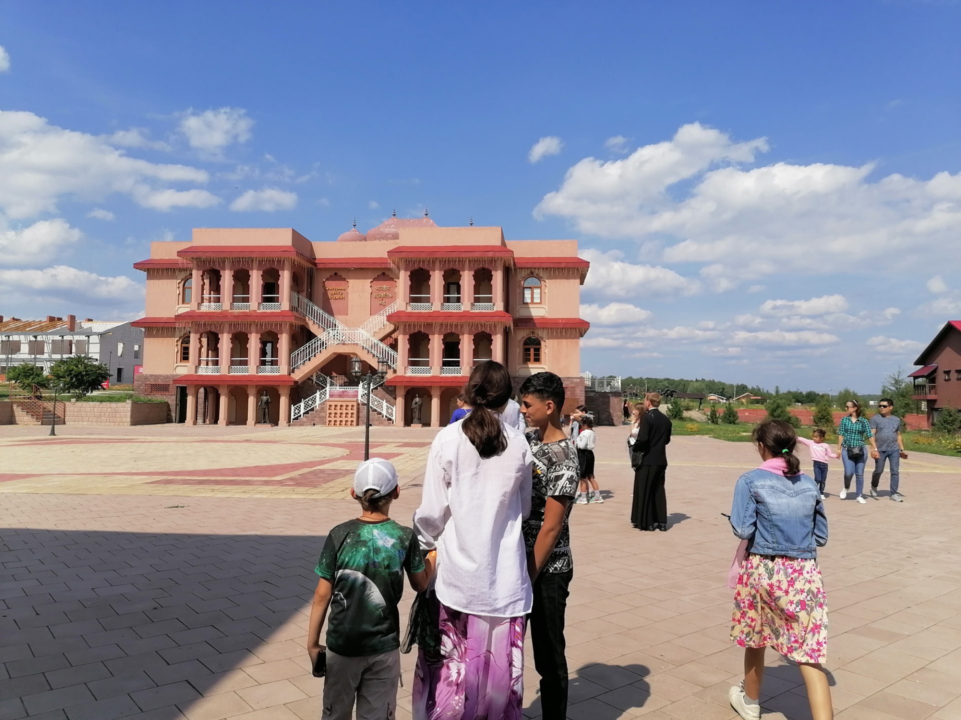 Дети из Епархиального Социального центра помощи семье и детям «Рождественский» побывали в Этномире-самом большом этнографическом парке-музее в России. Экскурсия была ознакомительной-но очень насыщенной впечатлениями. Всю территорию парка не обойти за один день, но детям показали Юго-Восточную Азию-побывали в индийском доме, в австралийской пещере, казахской юрте, в русском подворье. Подворье Украины, входящее в ознакомительный маршрут, попросили исключить-решили не волновать детей-беженцев с Донбасса. Заменили эту экскурсию на знакомство с русскими народными играми-дети были в восторге. На дорожку поели мороженого и побежали в автобус-всем не терпелось вернуться в «Рождественский» и поделиться впечатлениями