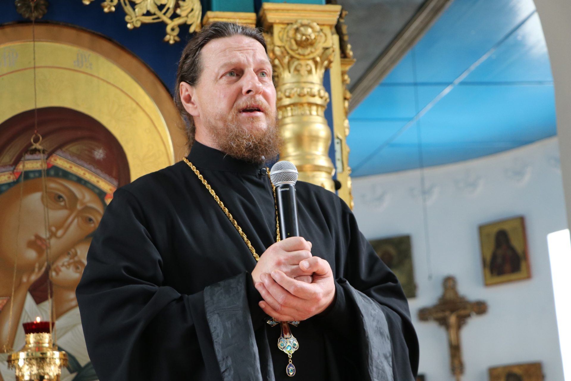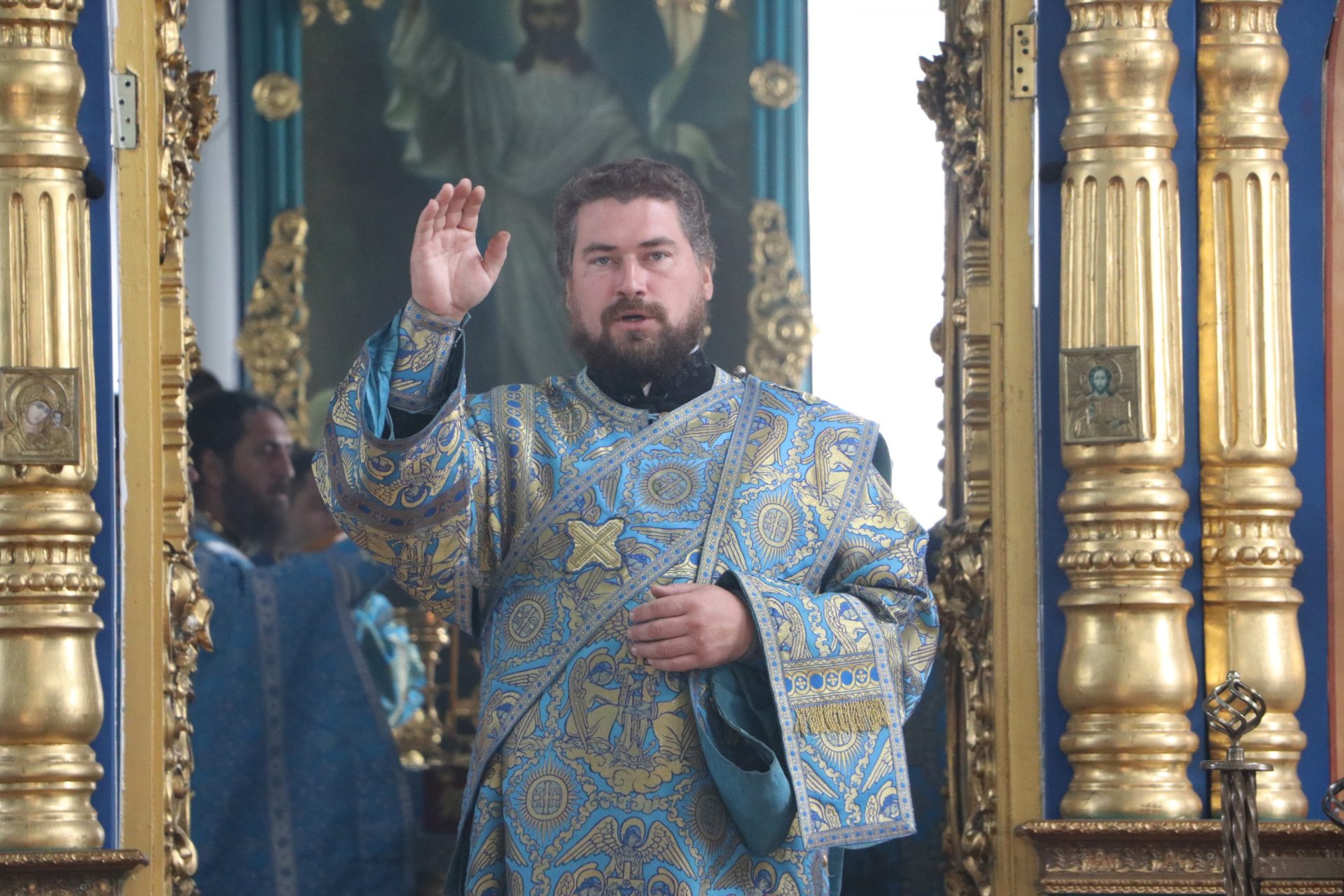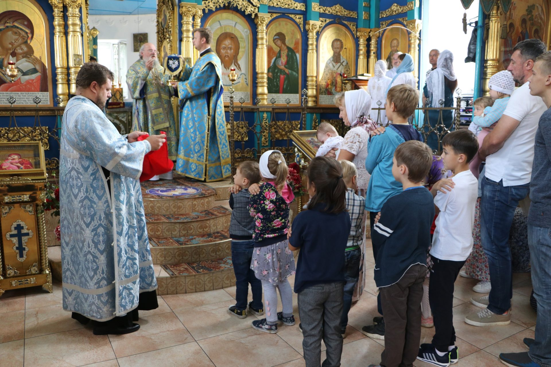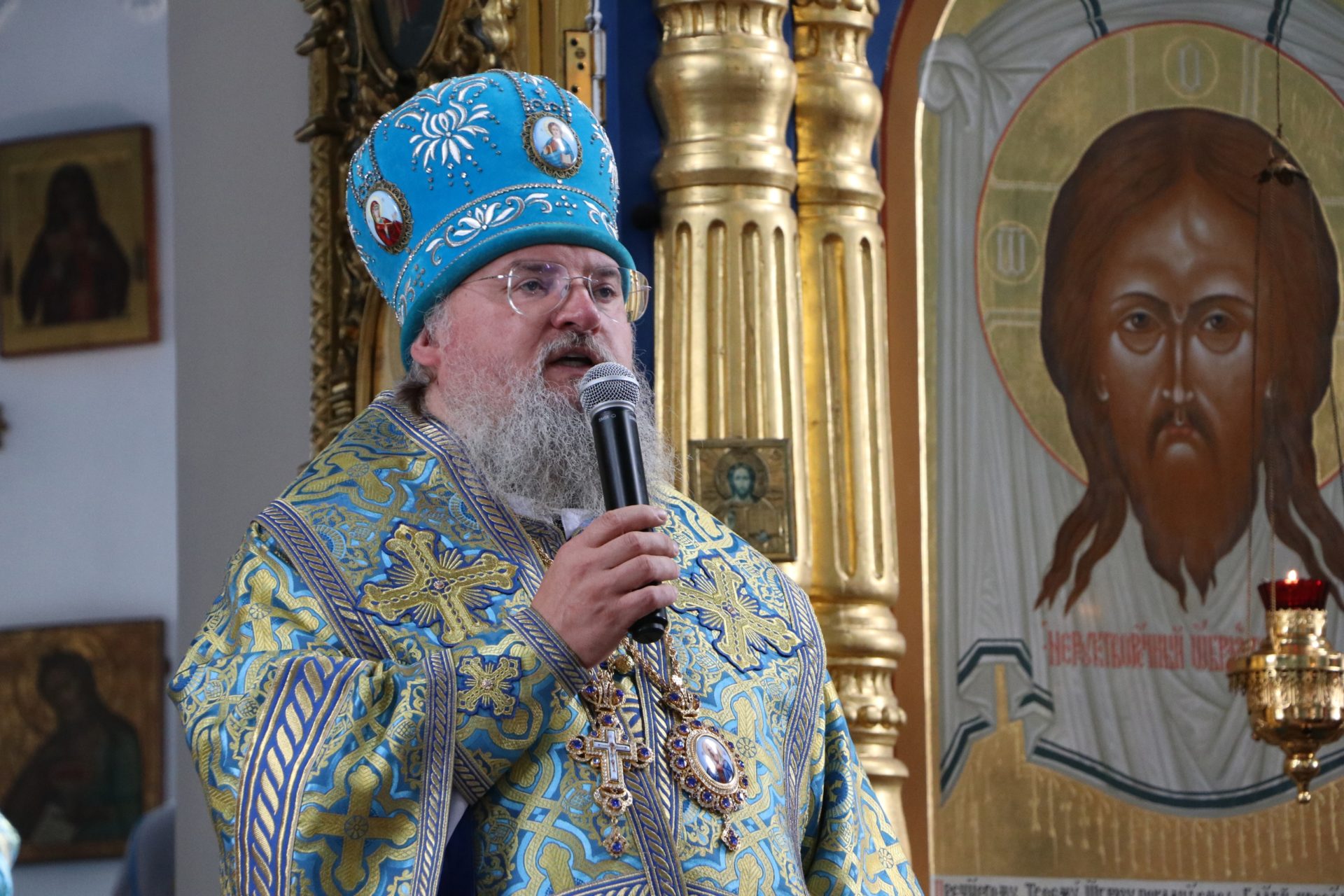 После сугубой ектении епископ Никита вознес молитву о скорейшем восстановлении мира. По благословению Святейшего Патриарха Московского и всея Руси Кирилла эта сугубая молитва совершается во всех храмах Русской Православной Церкви за каждым богослужением.