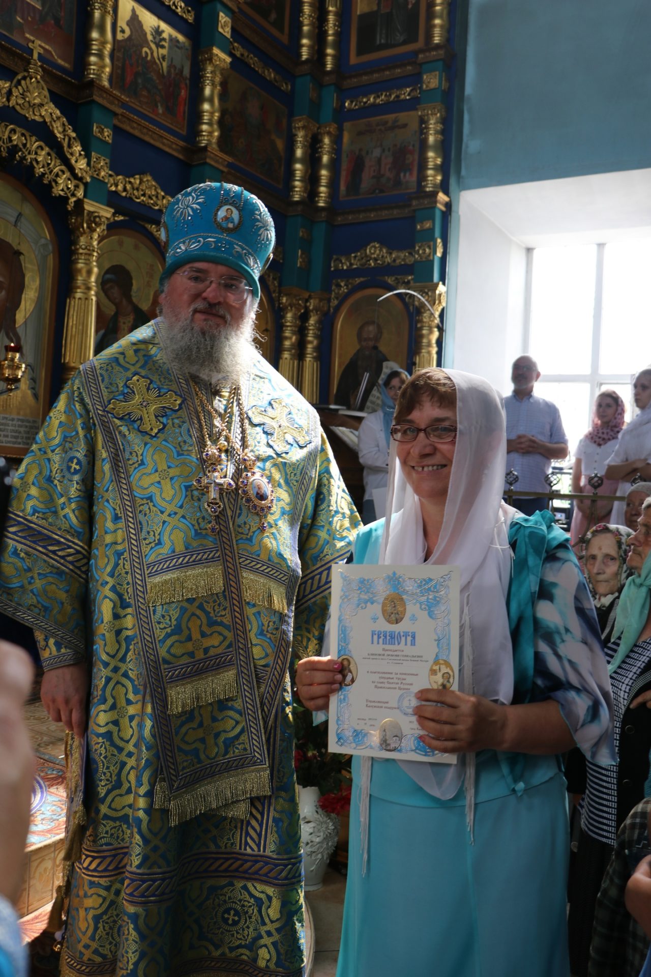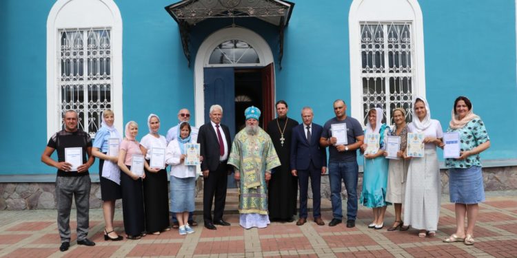 Епископ Никита поздравил с прошедшим днем рождения Главу администрации района Колесникова Александра Степановича и вручил ему приветственный Адрес, а также благодарственных грамот были удостоены прихожане храма, принимающие активное участие в жизни прихода и отмечающие в текущем году юбилейные даты.