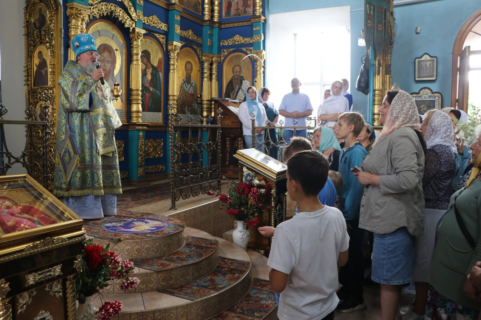 После отпуста литургии состоялся праздничный молебен и крестный ход вокруг храма, после которого владыка обратился к богомольцам с архипастырским словом.