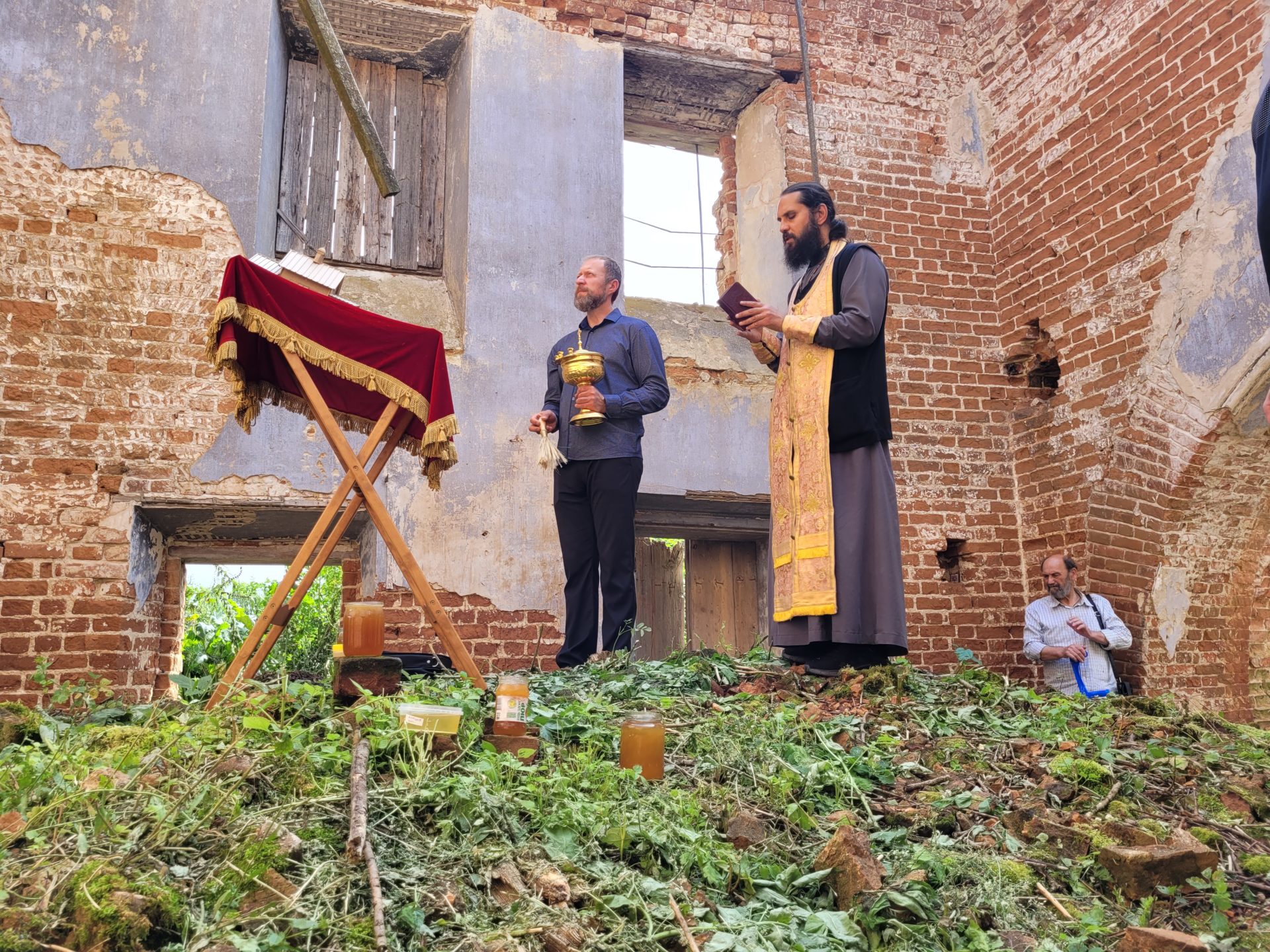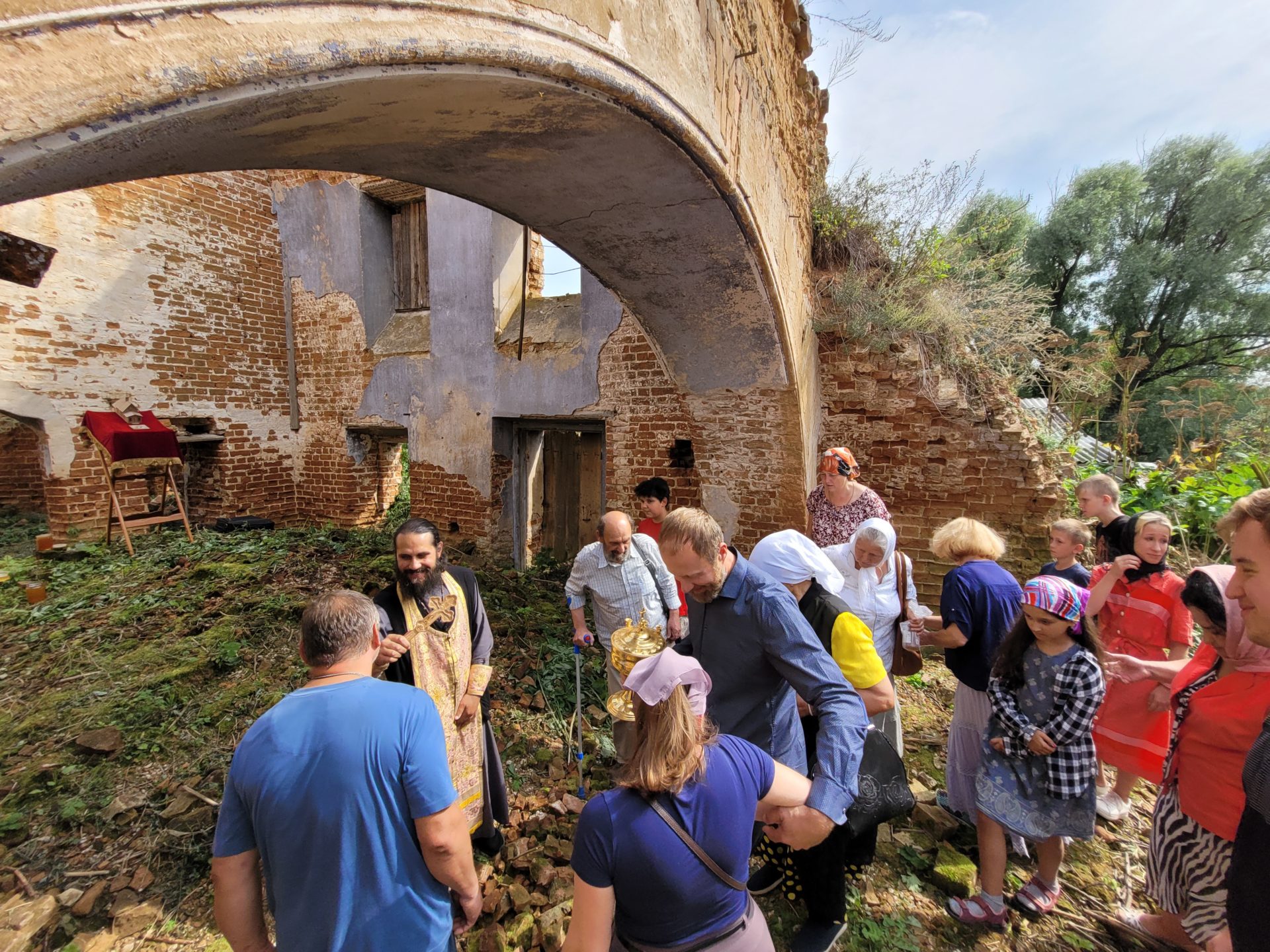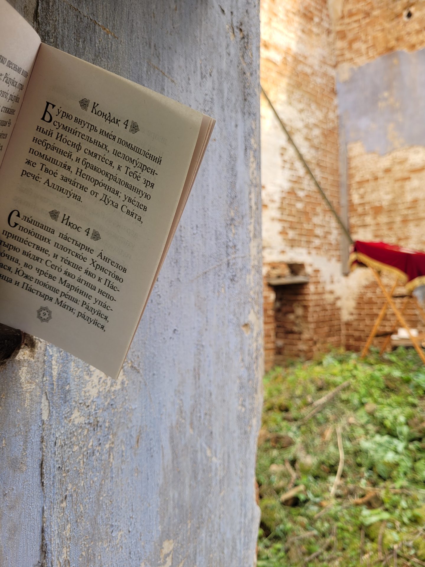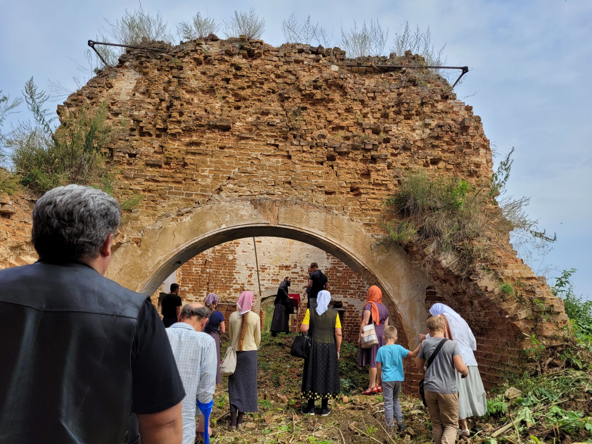 Акафист пели в разрушенном храме Покрова Пресвятой Богородицы, приписном к храму Зачатия Иоанна Предтечи.
