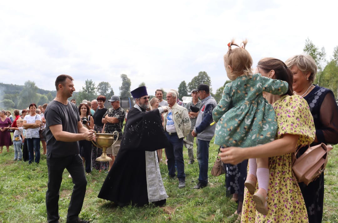 Священник поздравил всех с праздником Преображения, пожелав светлого преображения каждому и доброго, позитивного настроения всем присутствующим. Потом священнослужитель освятил яблоки, виноград, другие плоды нового урожая и окропил собравшихся святой водой.