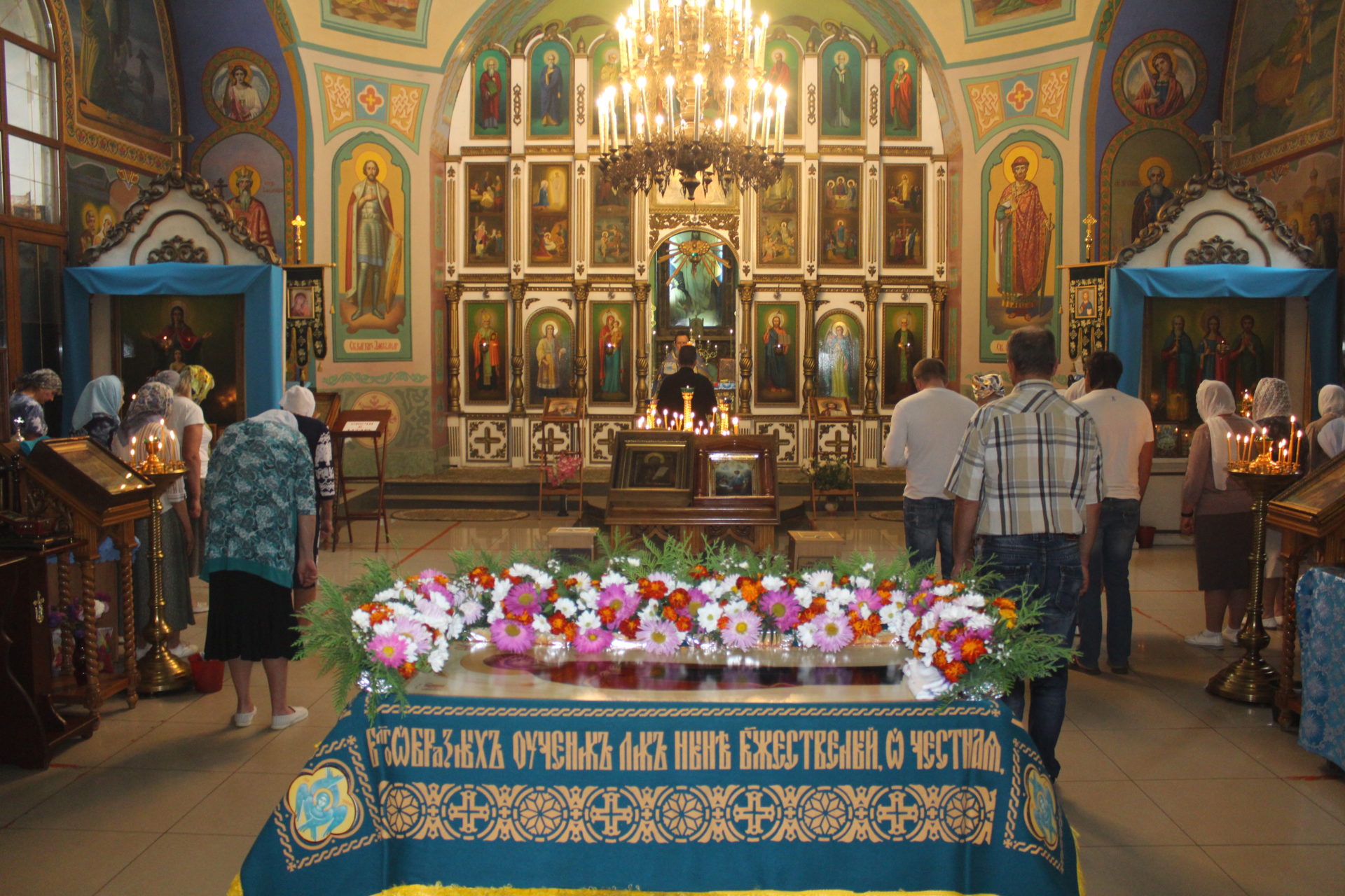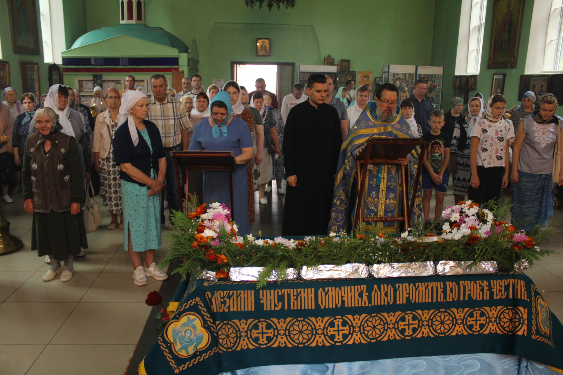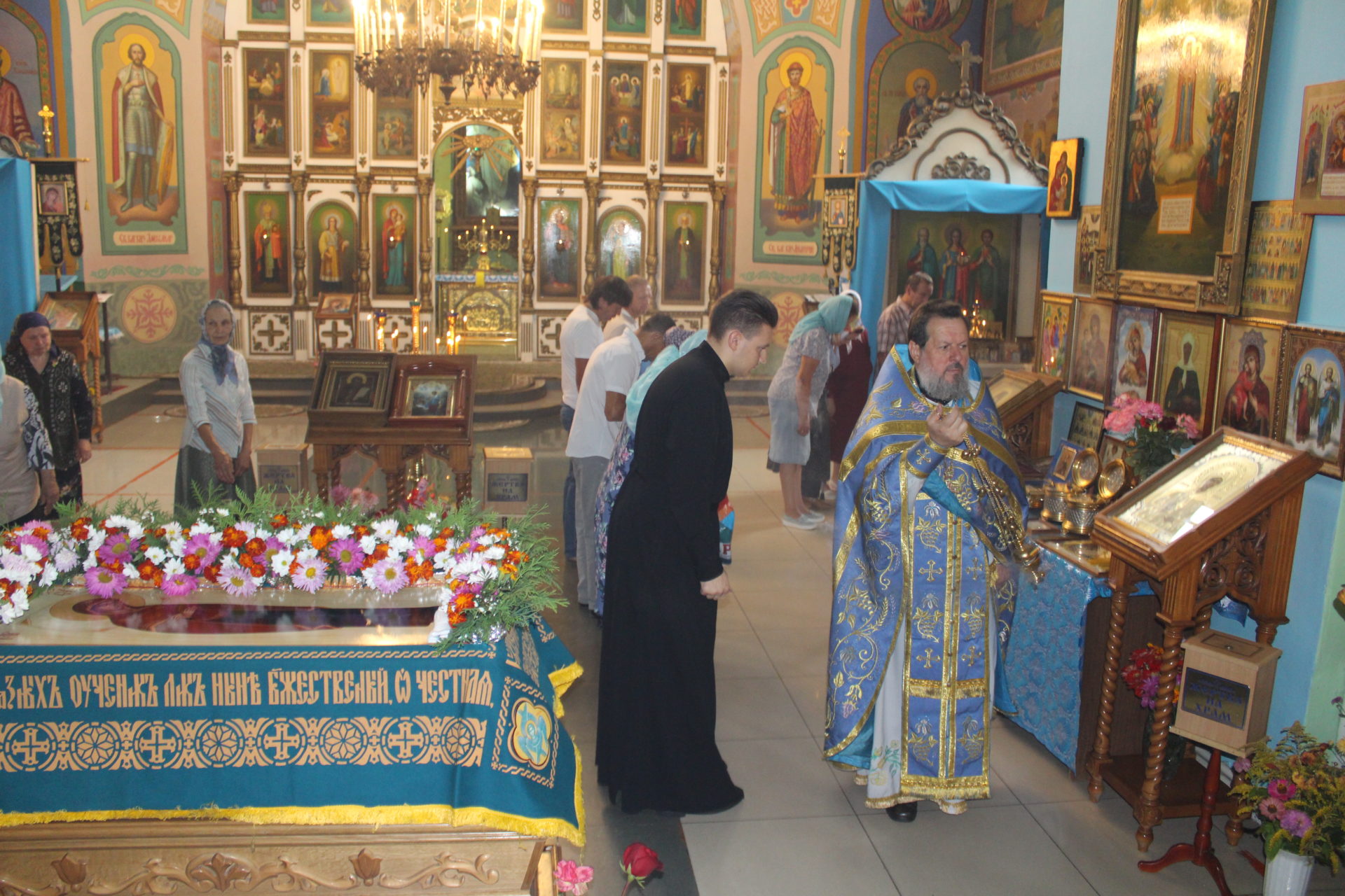 Вечером в день праздника в храме был совершен чин Погребение Божией Матери. При пении «Бог Господь» и тропарей «Благообразных ученик лик…» священнослужители выходят из алтаря на середину храма к Плащанице, совершается полное каждение храма. Затем читаются непорочны с похвалами на священное преставление Богоматери.