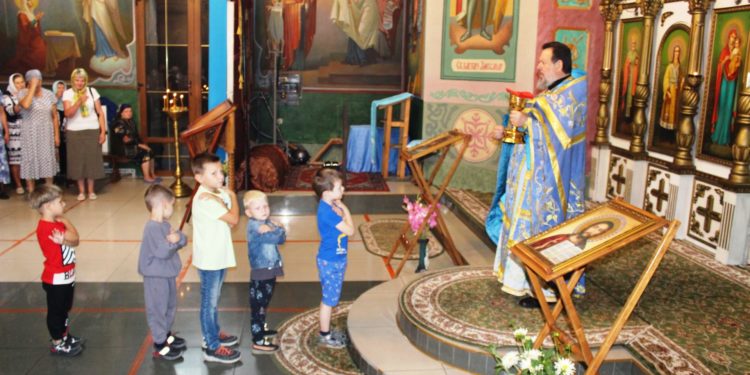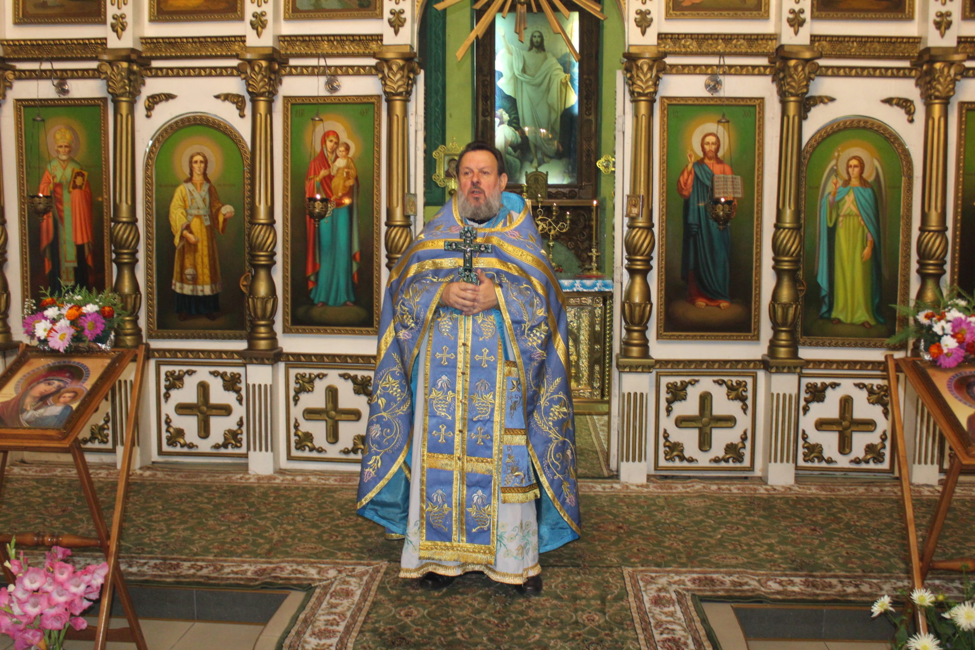 За Божественной Литургией отец Василий обратился к прихожанам со словами поздравления: «Сегодня Успение Пресвятой Богородицы. Этот праздник соединил в себе два противоположных понятия – радость и смерть. В понимании православных смерть – это временный сон, пока не воскреснет душа человека. Успение Богородицы – ода вечной жизни, когда по слову Господа люди, умершие в вере, насладятся вечностью, где не будет болезней, страданий, горя и слёз. После Вознесения Господня о Богородице, по завету Христа, заботился апостол Иоанн Богослов. И для него, и для остальных апостолов, Пресвятая Мария стала отрадой и утешением в скорби. Однажды во время молитвы Богородице явился архангел Гавриил и сообщил, что через три дня она покинет мир живых. Мария обрадовалась, поскольку поняла, что вскоре воссоединится с Сыном.