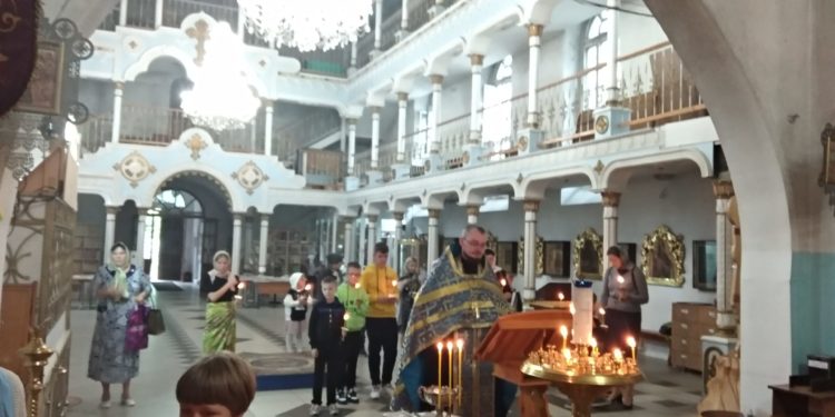 Молебен на начало учебного года для учащихся в Казанском соборе города Людиново