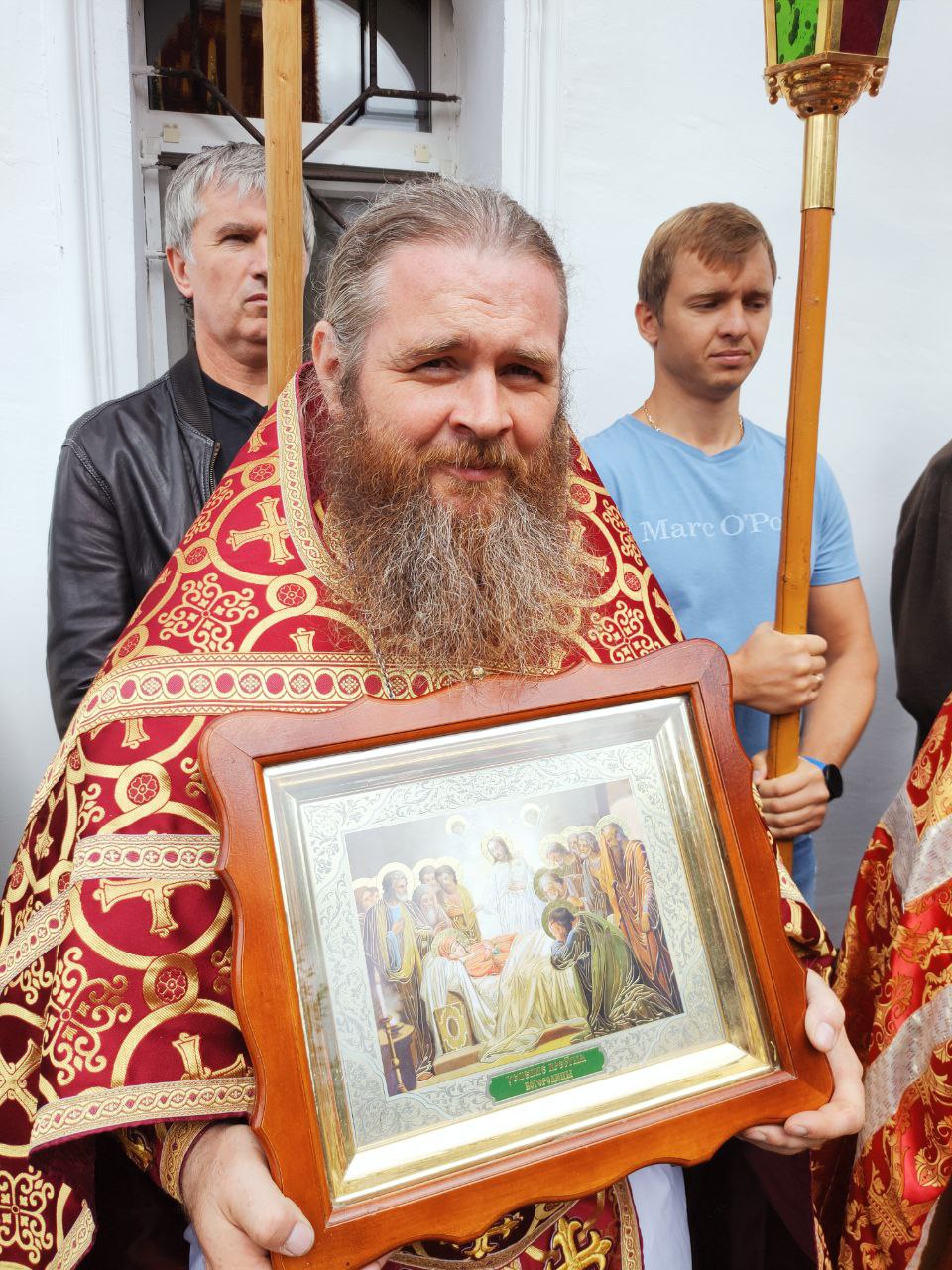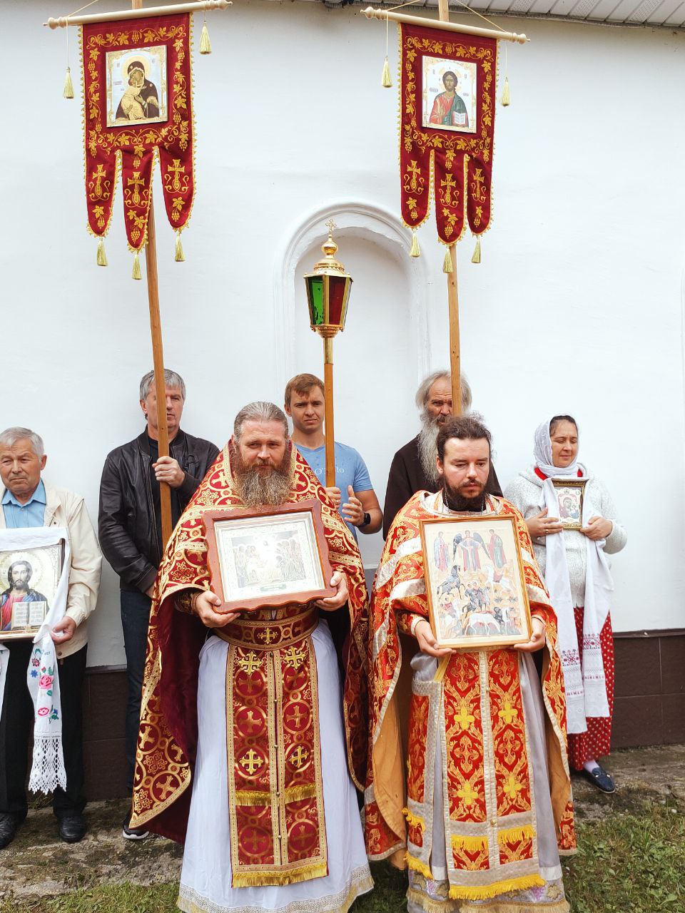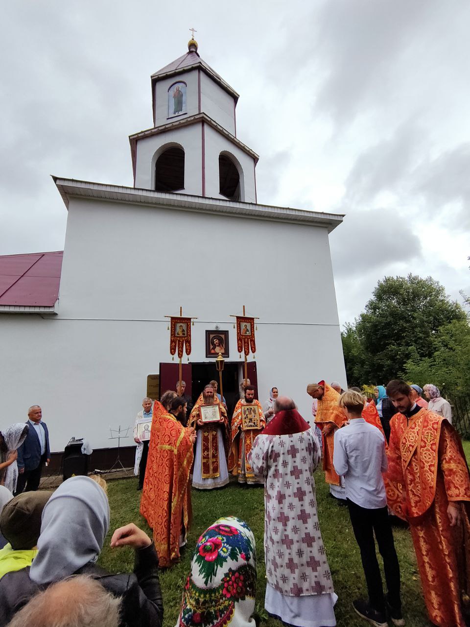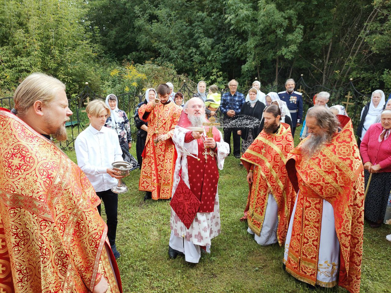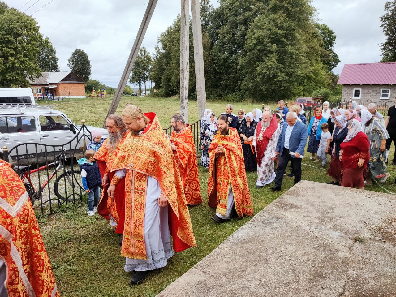 По отпусте литургии священнослужители совершили праздничный молебен святым мученикам Фролу и Лавру и крестный ход вокруг храма, в завершении которого, вознеся молитву угодникам Божиим, владыка обратился к богомольцам с проповедью.