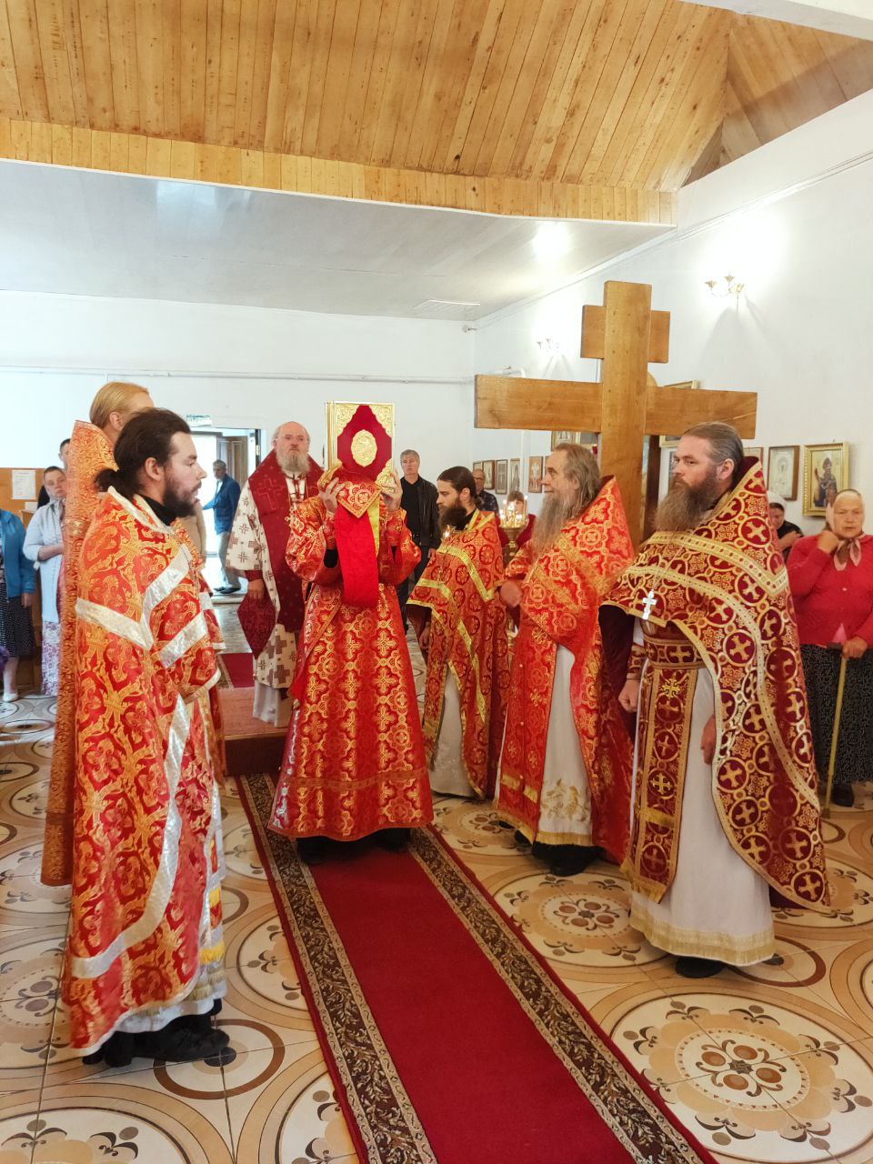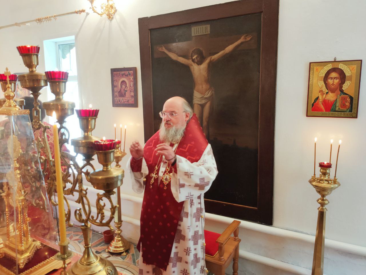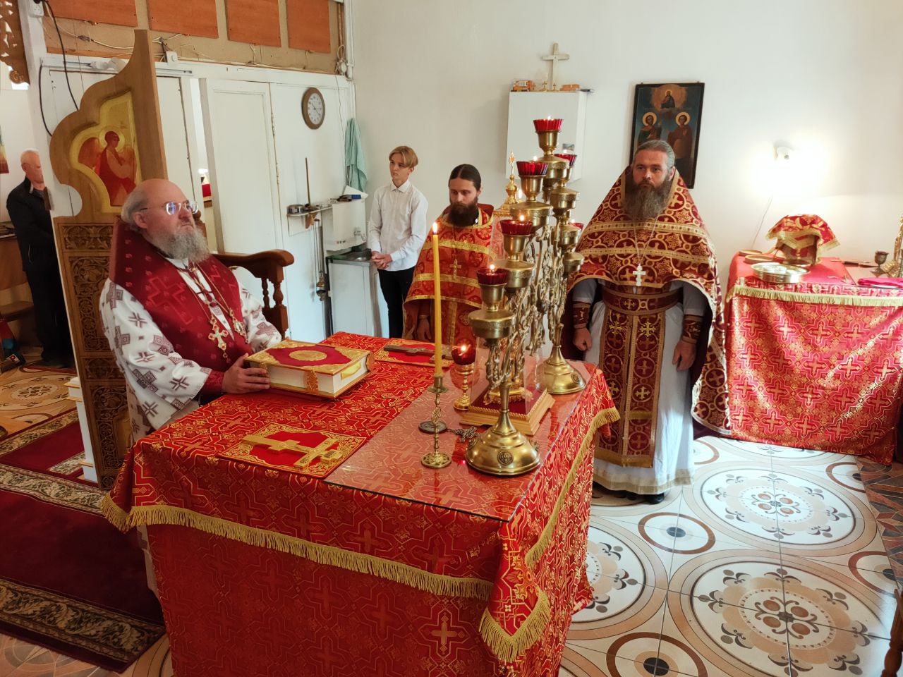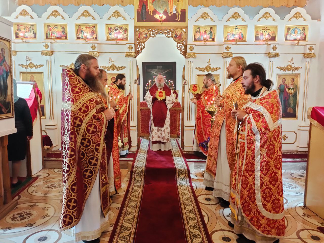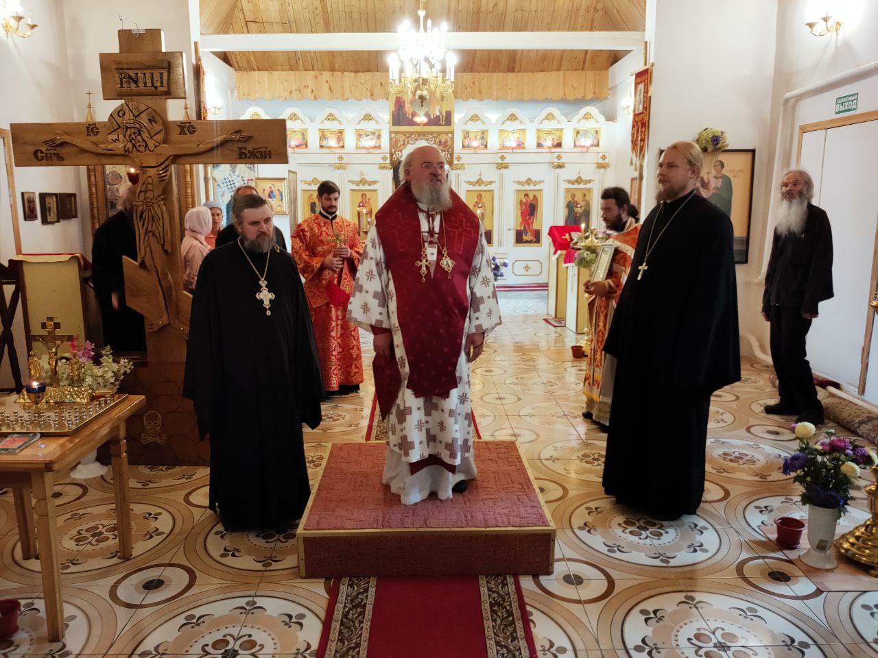 Преосвященному владыке сослужили: иерей Алексий Ефименков – благочинный округа, протоиерей Михаил Карпенко, иерей Сергий Барыкин, иеромонах Сергий (Тимофеев) – настоятель храма, иерей Николай Безручкин, иерей Алексий Скрипкин и диакон Евгений Васильев.
