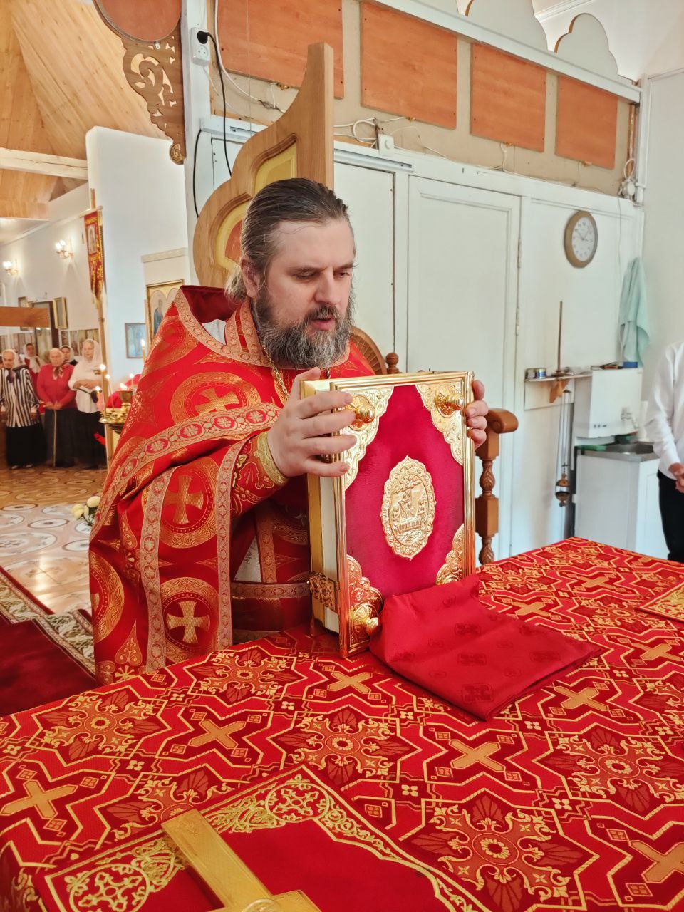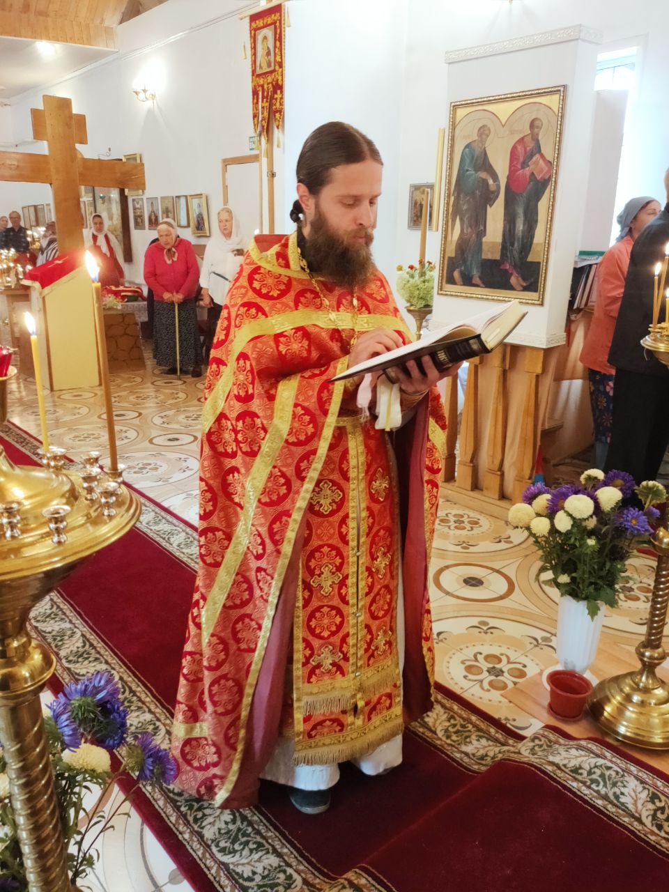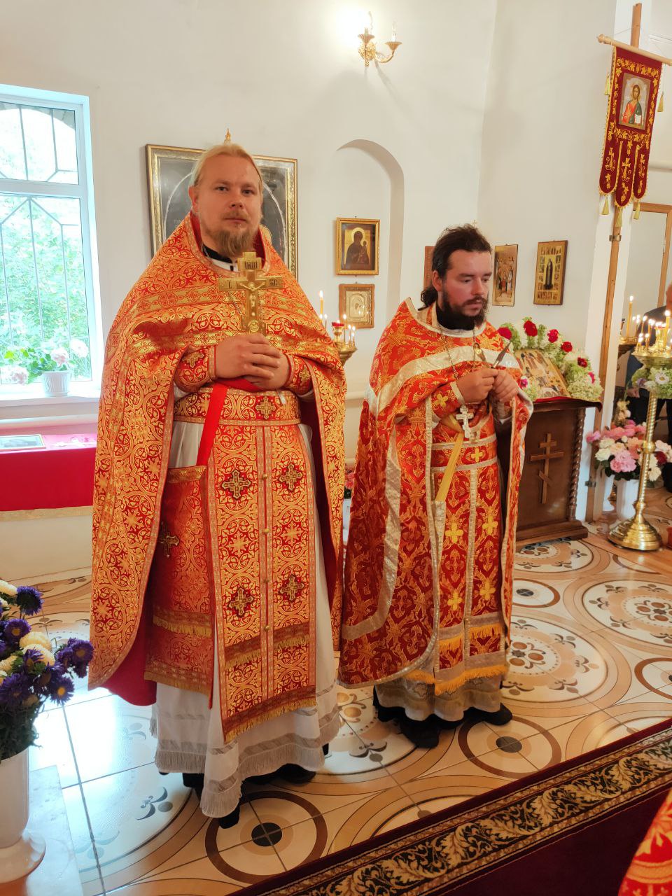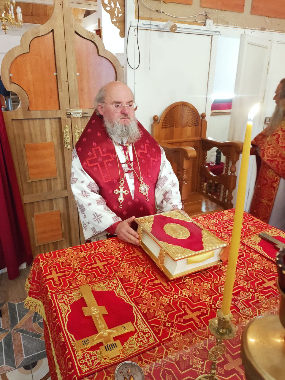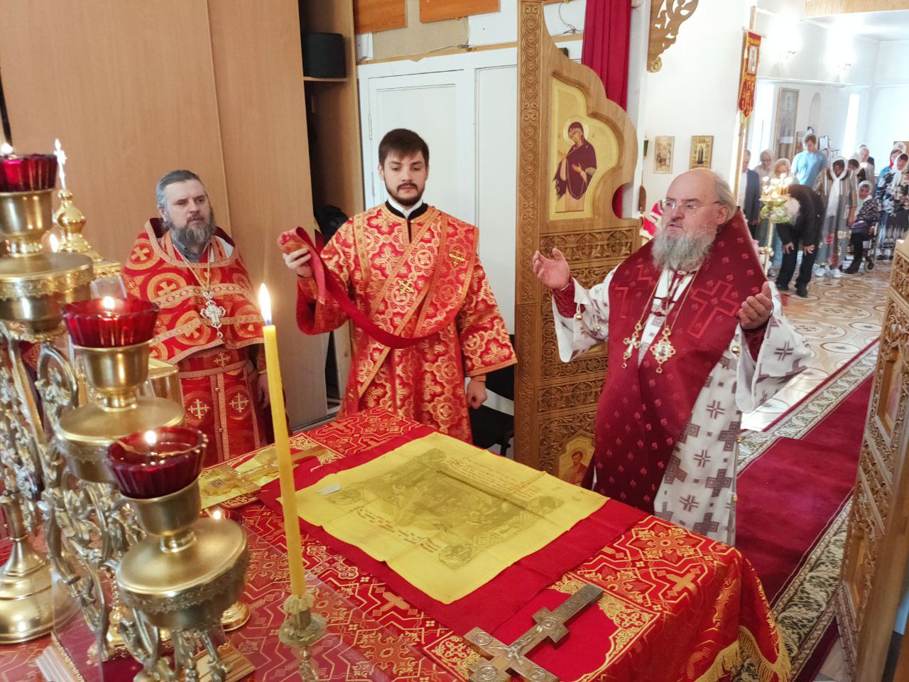 Преосвященному владыке сослужили: иерей Алексий Ефименков – благочинный округа, протоиерей Михаил Карпенко, иерей Сергий Барыкин, иеромонах Сергий (Тимофеев) – настоятель храма, иерей Николай Безручкин, иерей Алексий Скрипкин и диакон Евгений Васильев.