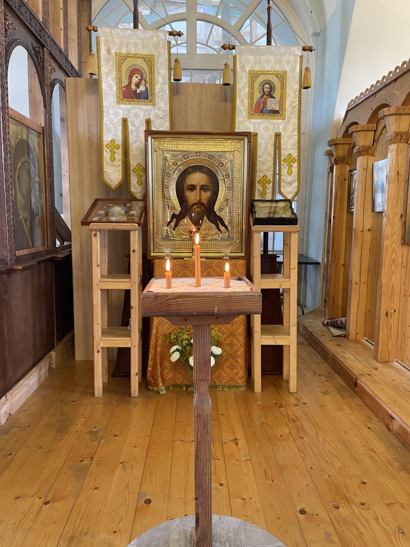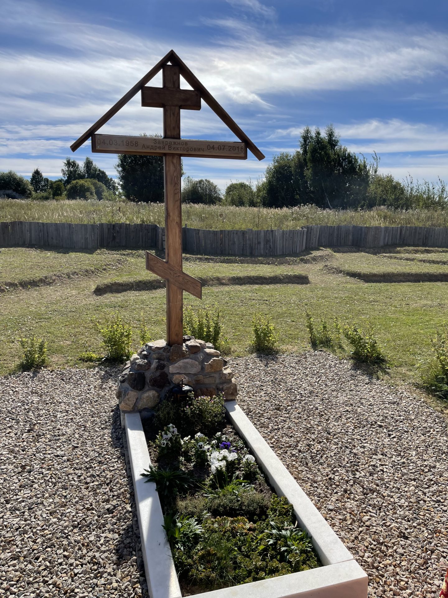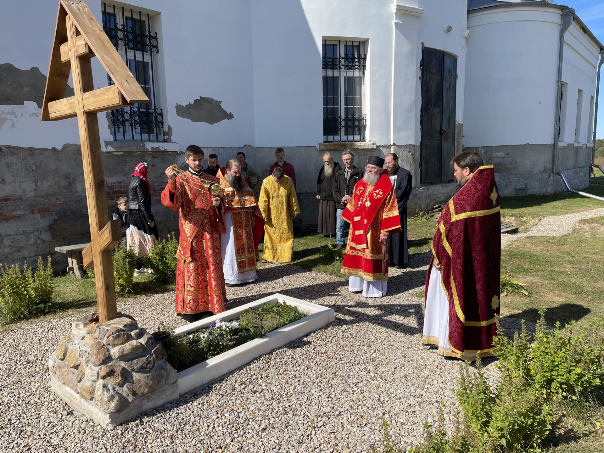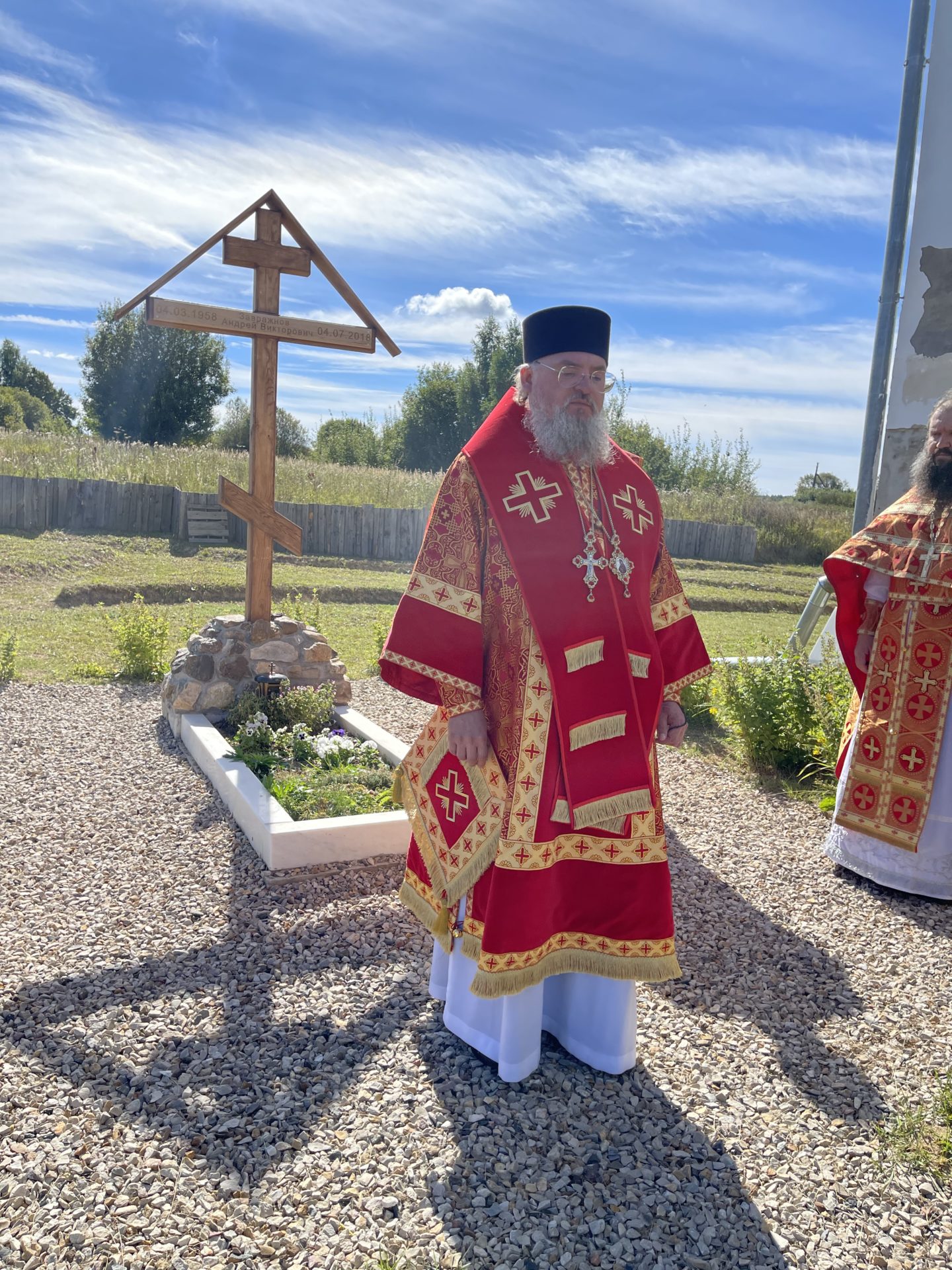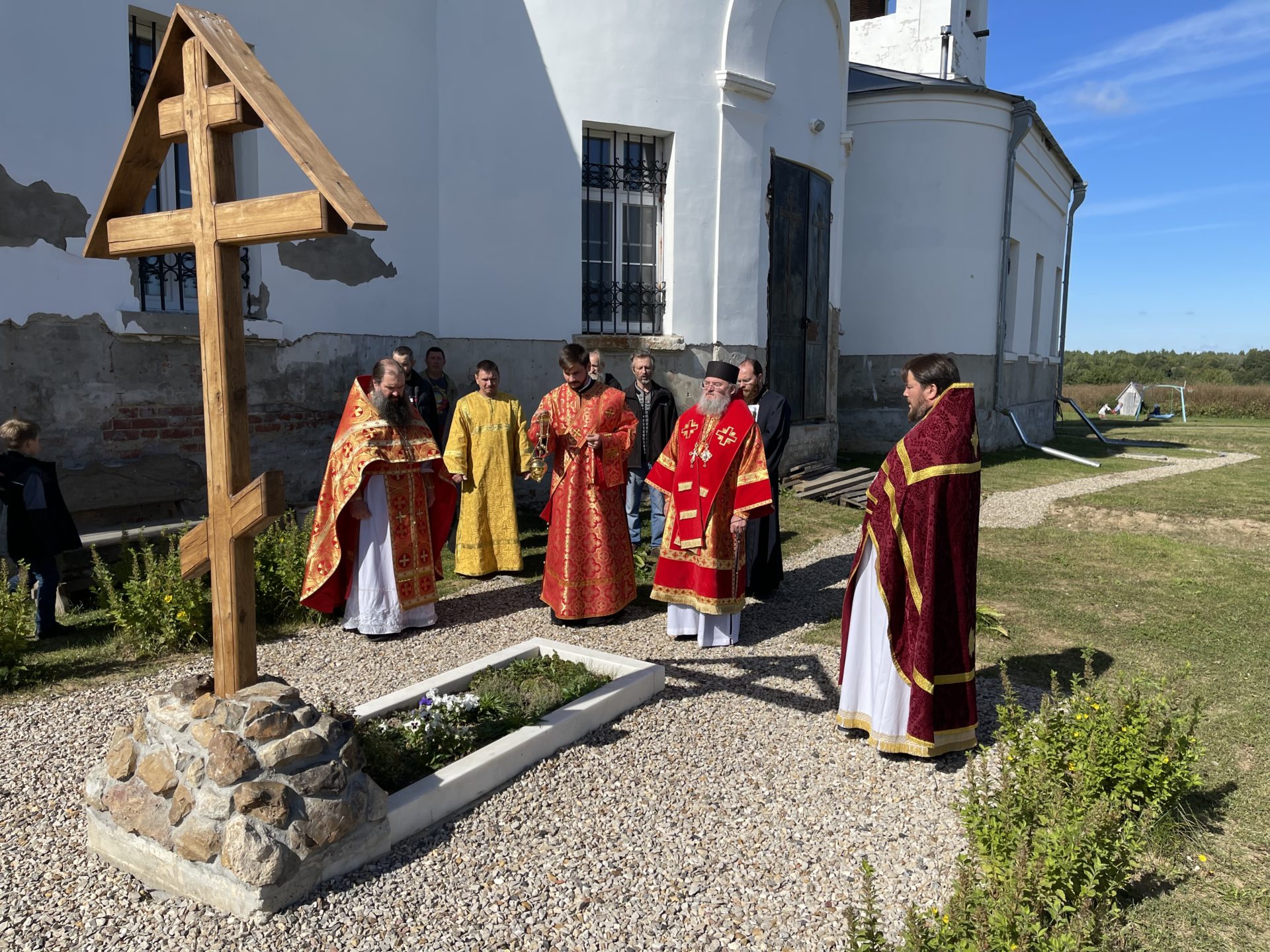 По окончании литургии и славления святому священнослужители совершили заупокойную литию на могиле почившего ктитора храма Андрея Викторовича Завражного, много потрудившегося на восстановлении поруганного в годы безбожного лихолетья Дома Божия и погребенного у северной его алтарной стены.