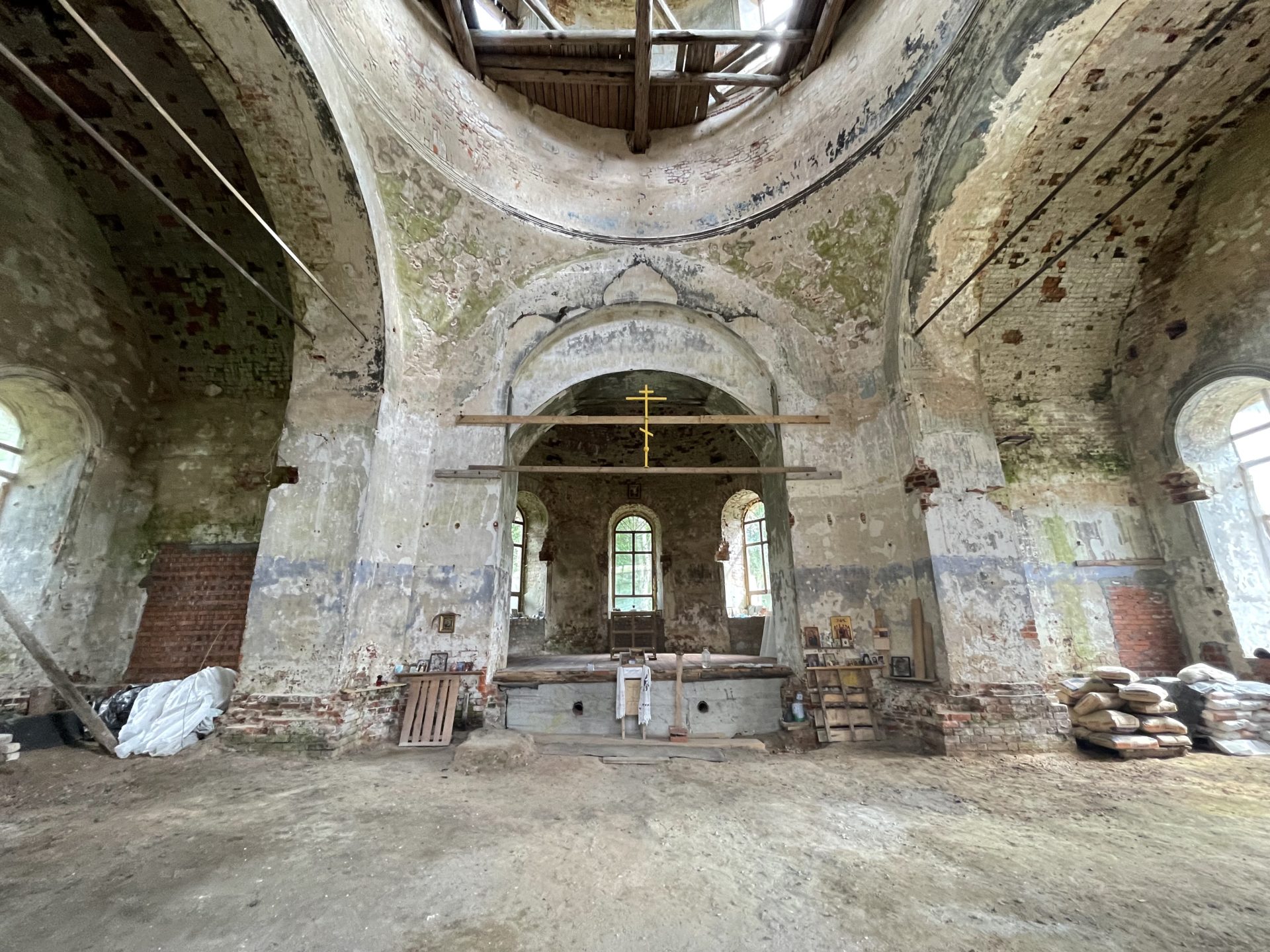 В 1895 г. церковь находилась в ветхом состоянии. К этому времени строительство каменной церкви было окончено вчерне. Крыша покрыта железом и окрашена медянкой.