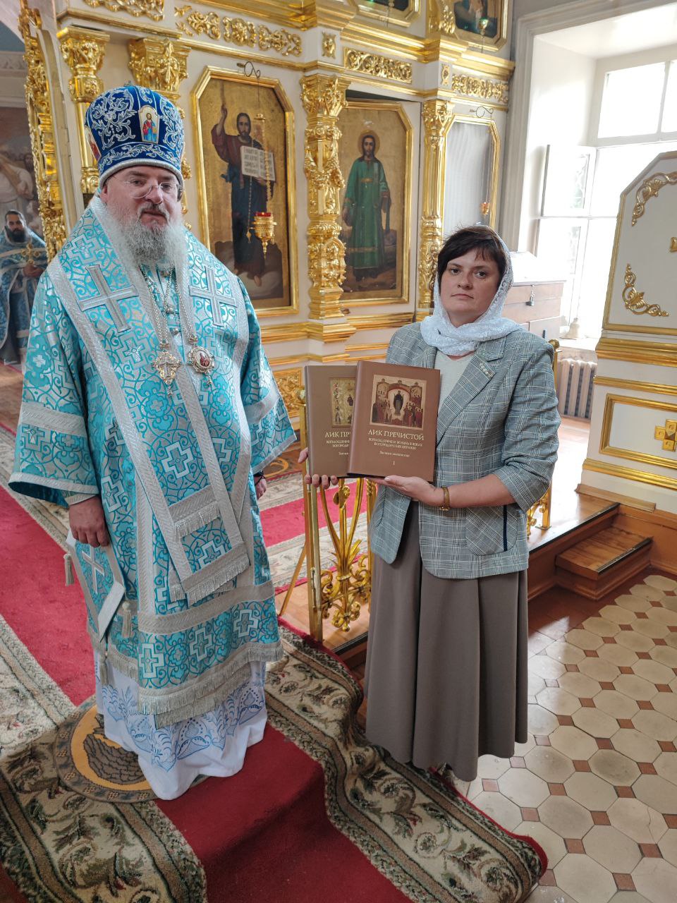 В дар православной гимназии владыка передал ее директору Шмыревой Татьяне Юрьевне подарочное издание книги о чудотворных иконах Пресвятой Богородицы.