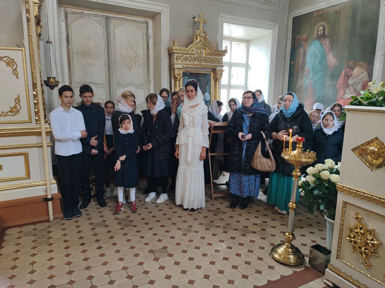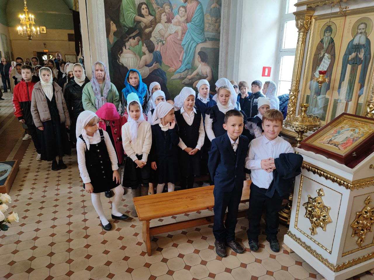 За богослужением молились педагоги и учащиеся Козельской православной гимназии – ровно 25 лет назад гимназия начала свою деятельность.