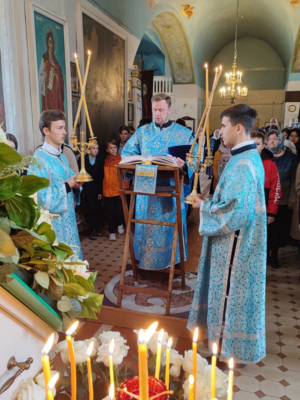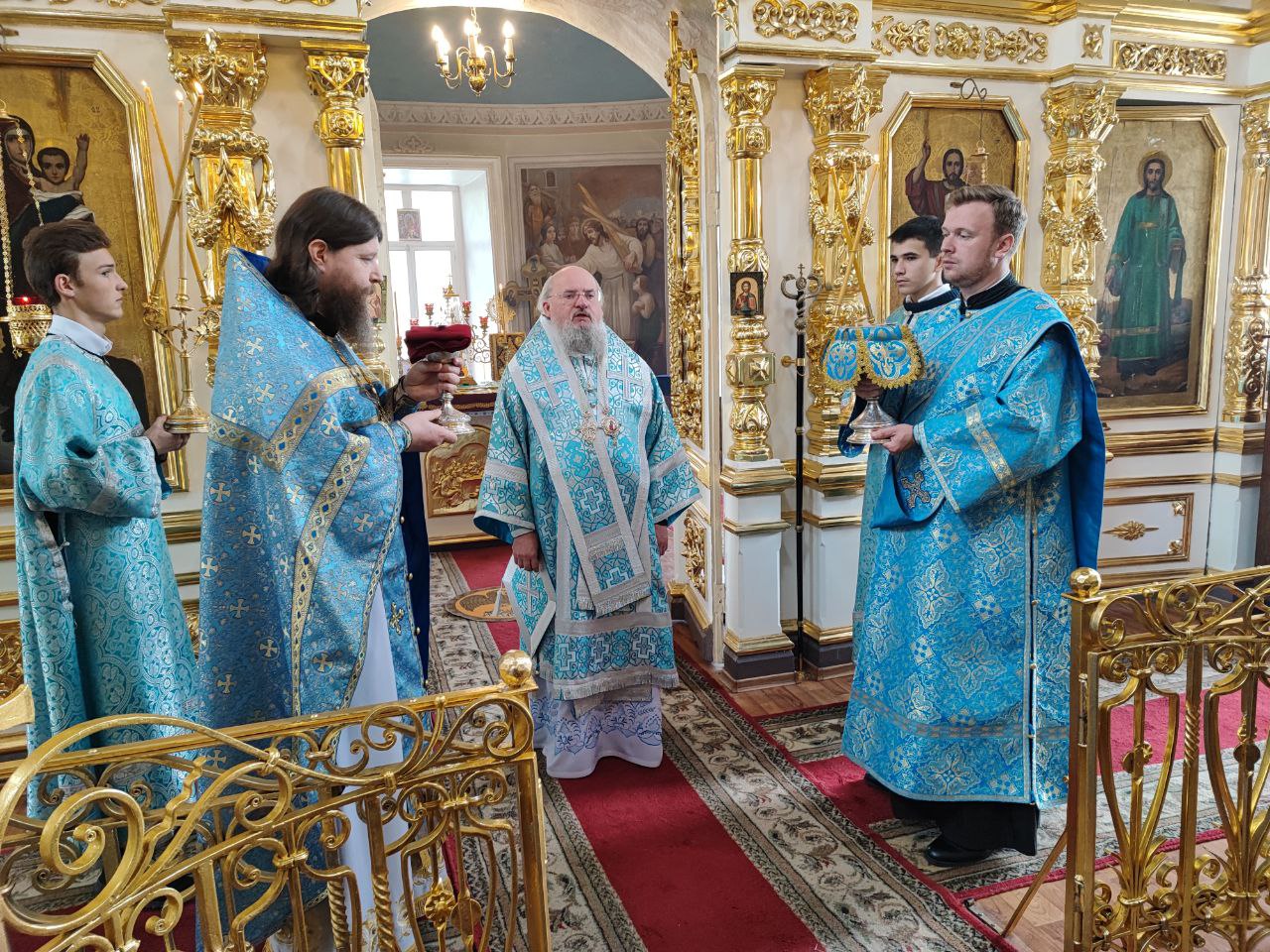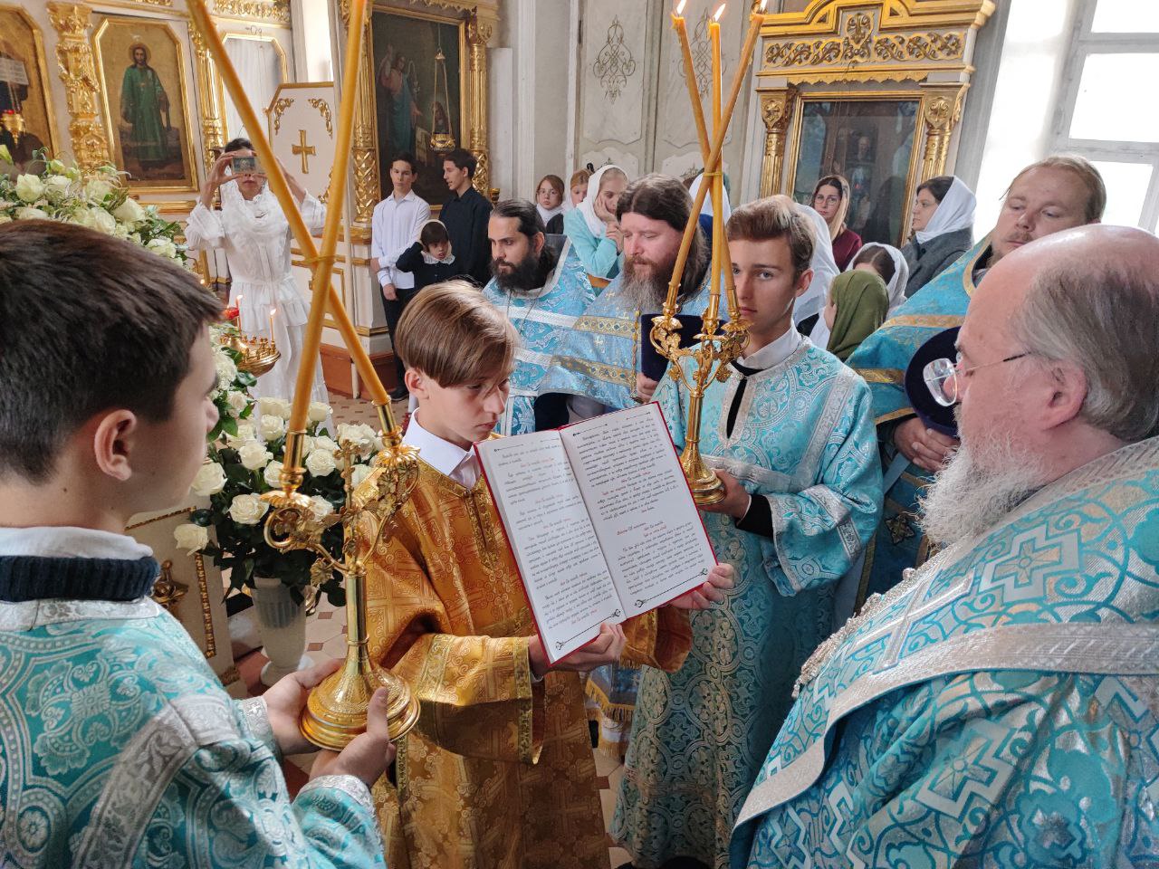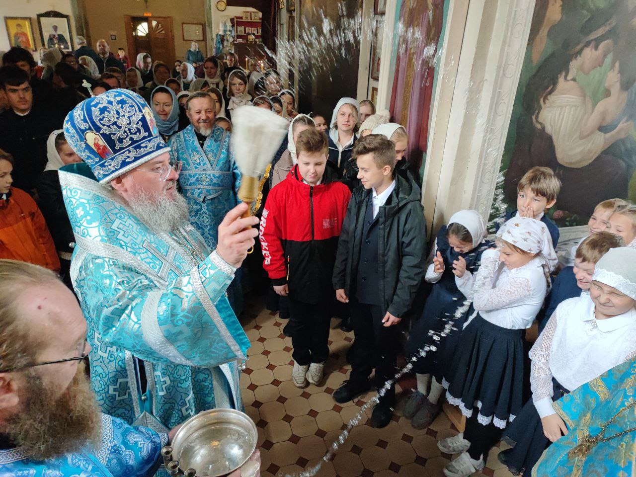 Его Преосвященству сослужили: протоиерей Сергий Сычев, протоиерей Ярослав Мудрый, иерей Сергий Барыкин – настоятель храма, духовник православной гимназии, иерей Алексий Боков, иерей Максим Изопов, диакон Евгений Ковригин, диакон Евгений Васильев и диакон Дмитрий Лутков.