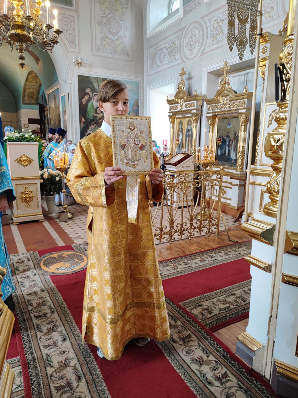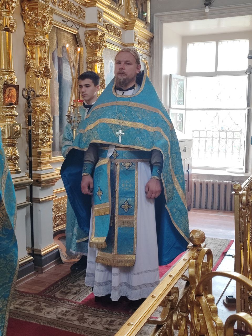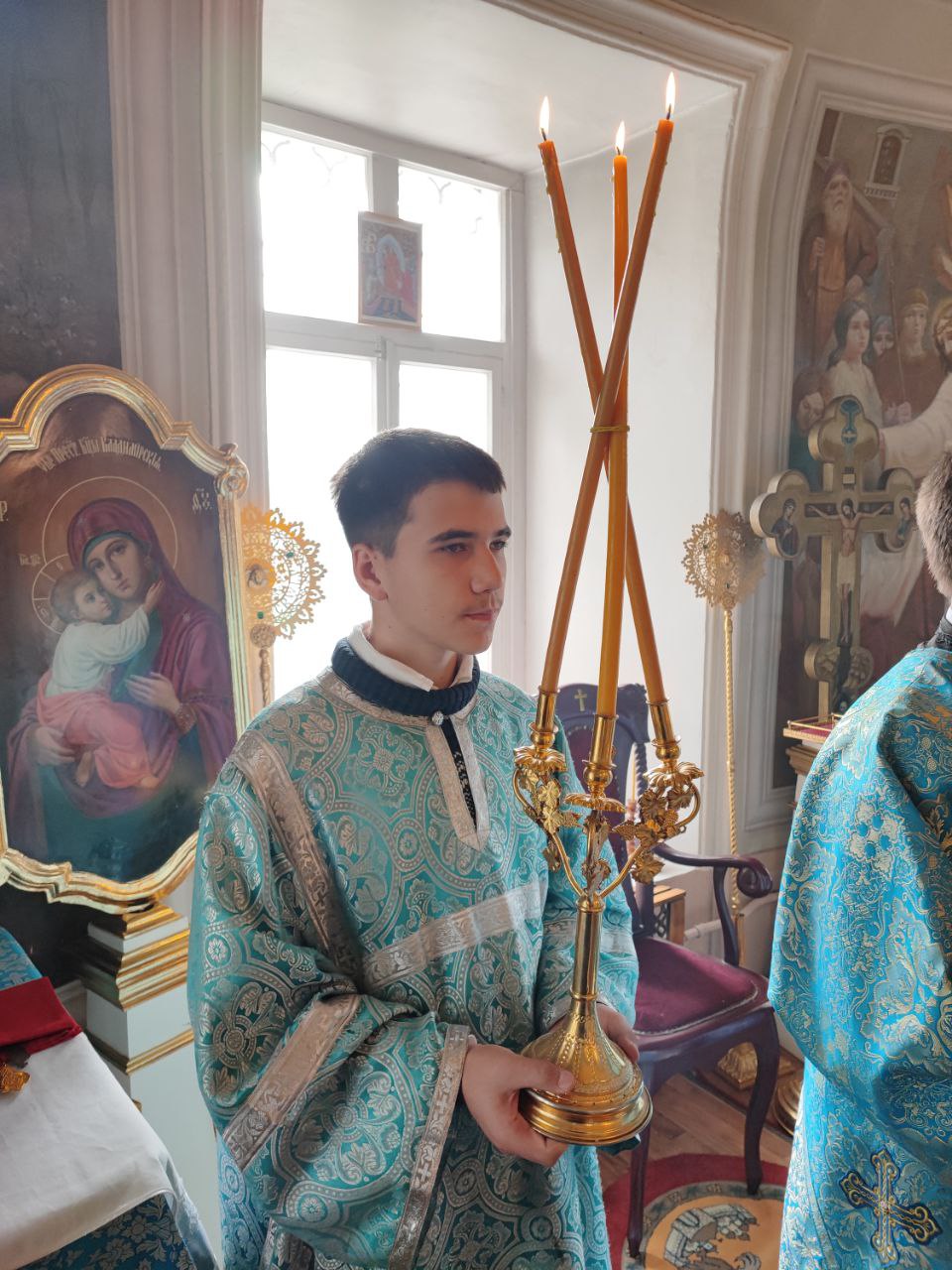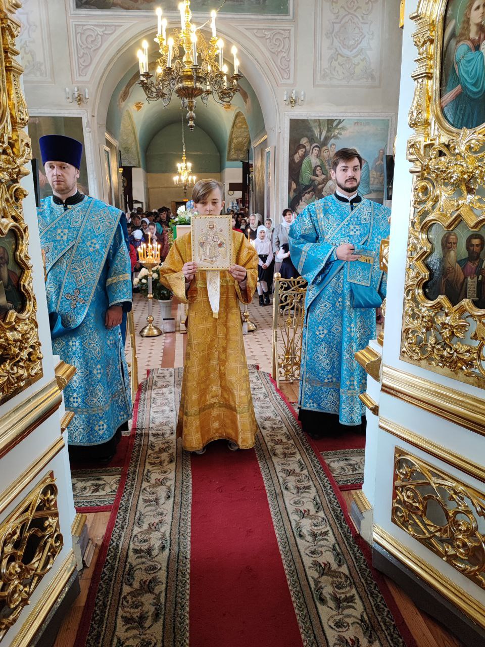 Его Преосвященству сослужили: протоиерей Сергий Сычев, протоиерей Ярослав Мудрый, иерей Сергий Барыкин – настоятель храма, духовник православной гимназии, иерей Алексий Боков, иерей Максим Изопов, диакон Евгений Ковригин, диакон Евгений Васильев и диакон Дмитрий Лутков.