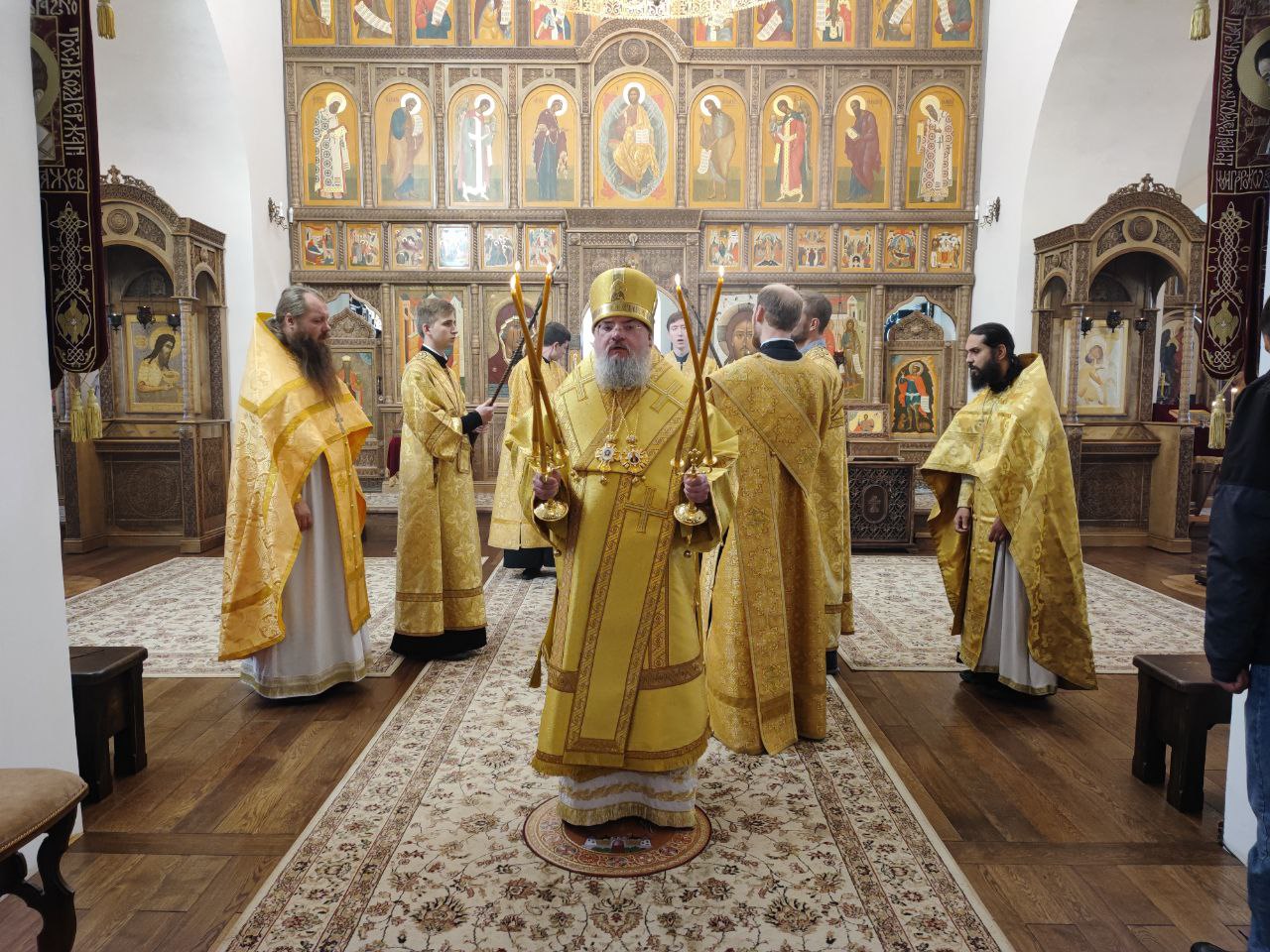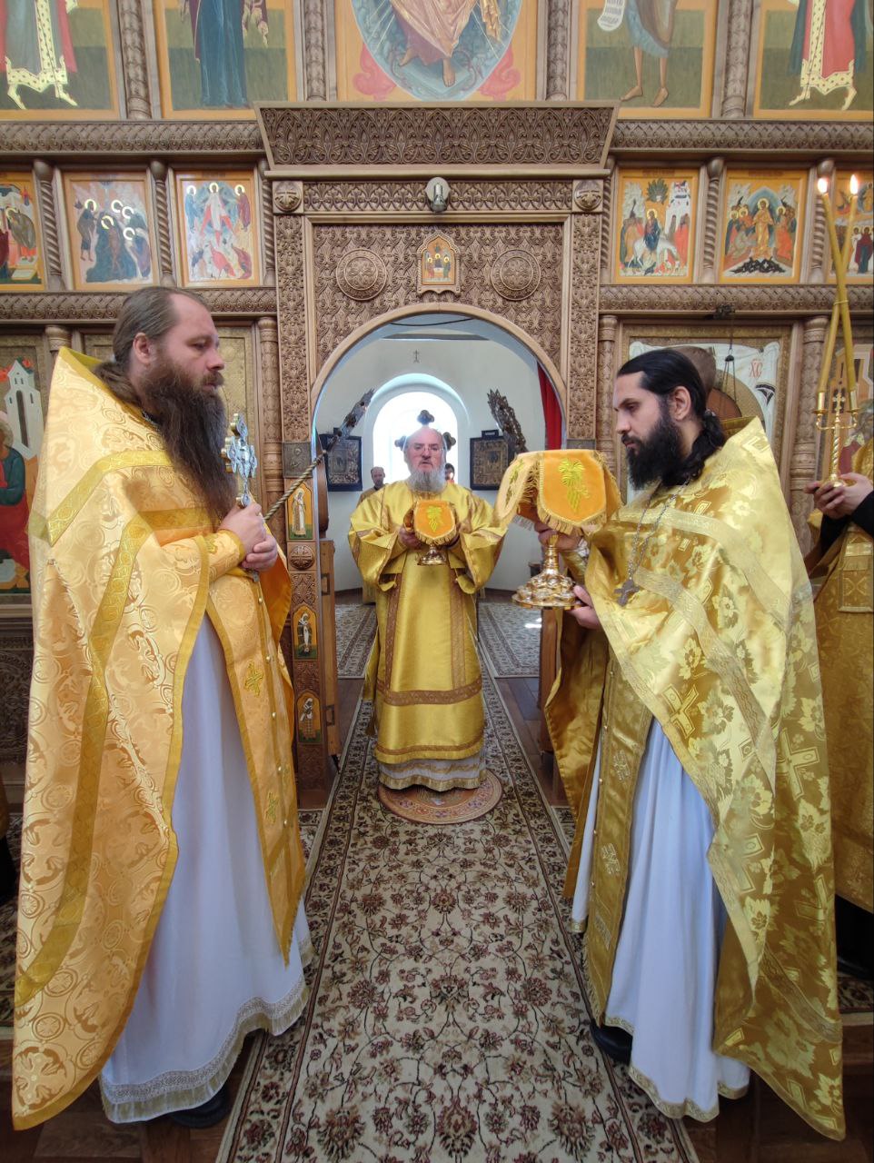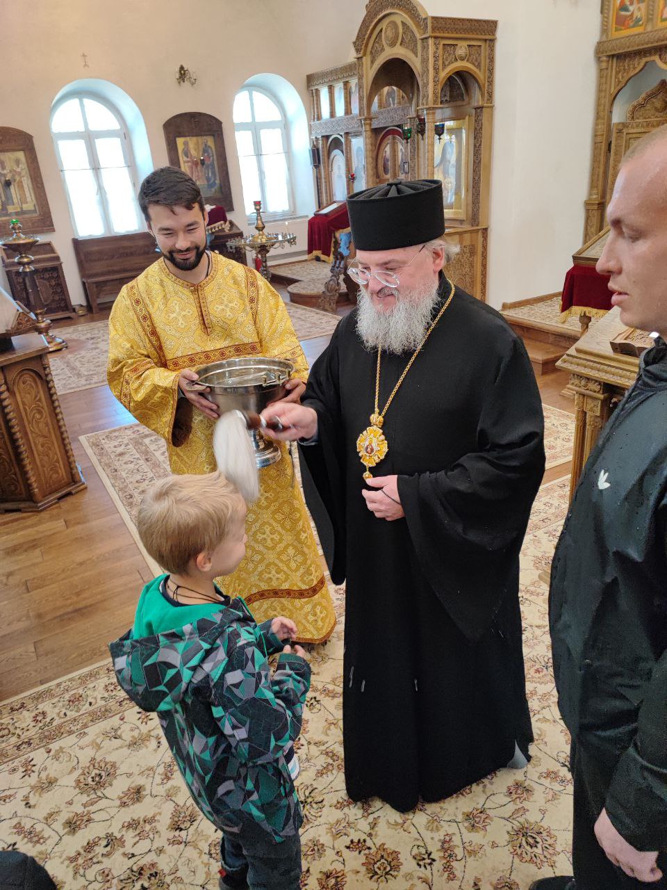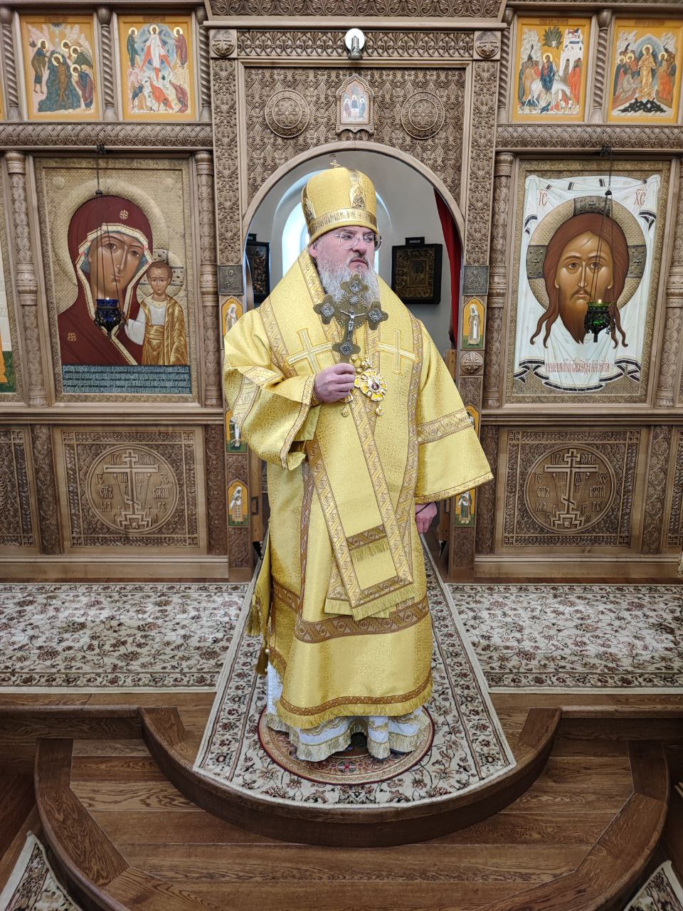 После сугубой ектении епископ Никита вознес молитву о скорейшем восстановлении мира. По благословению Святейшего Патриарха Московского и всея Руси Кирилла эта сугубая молитва совершается во всех храмах Русской Православной Церкви за каждым богослужением.