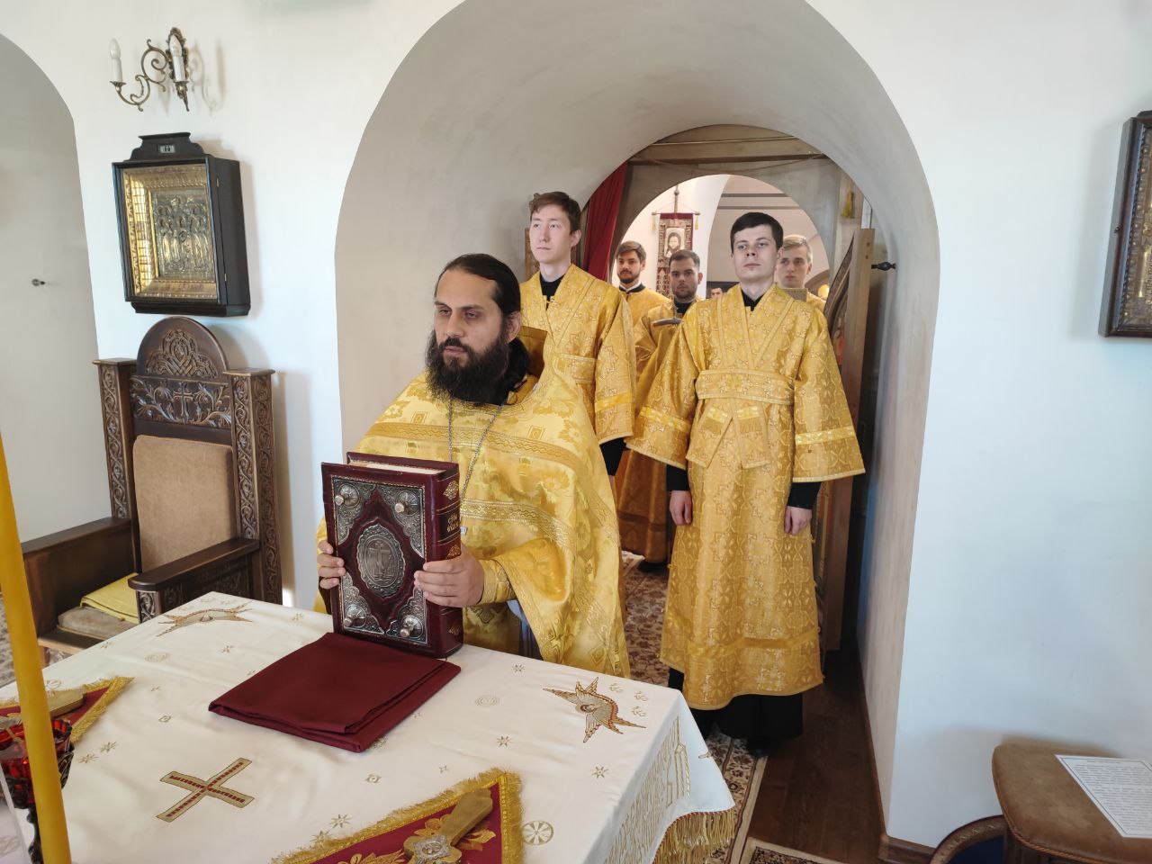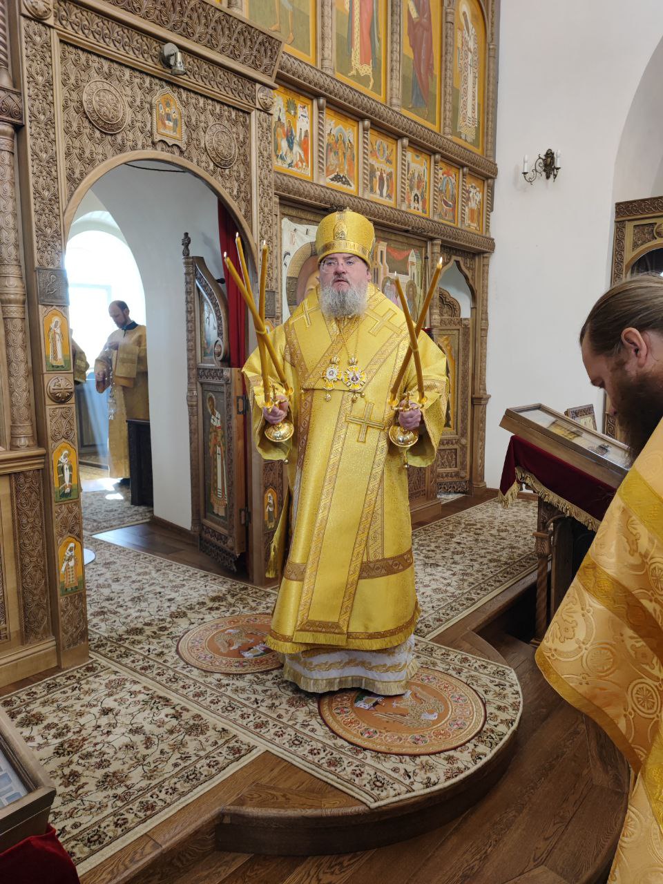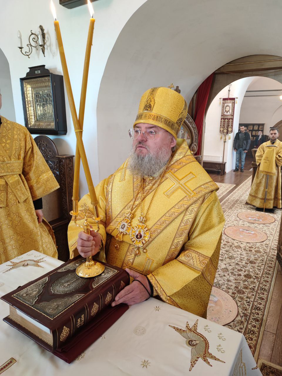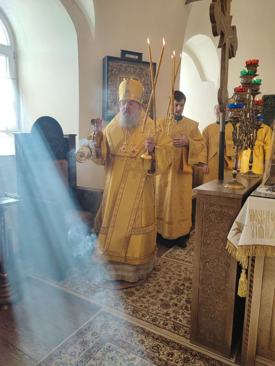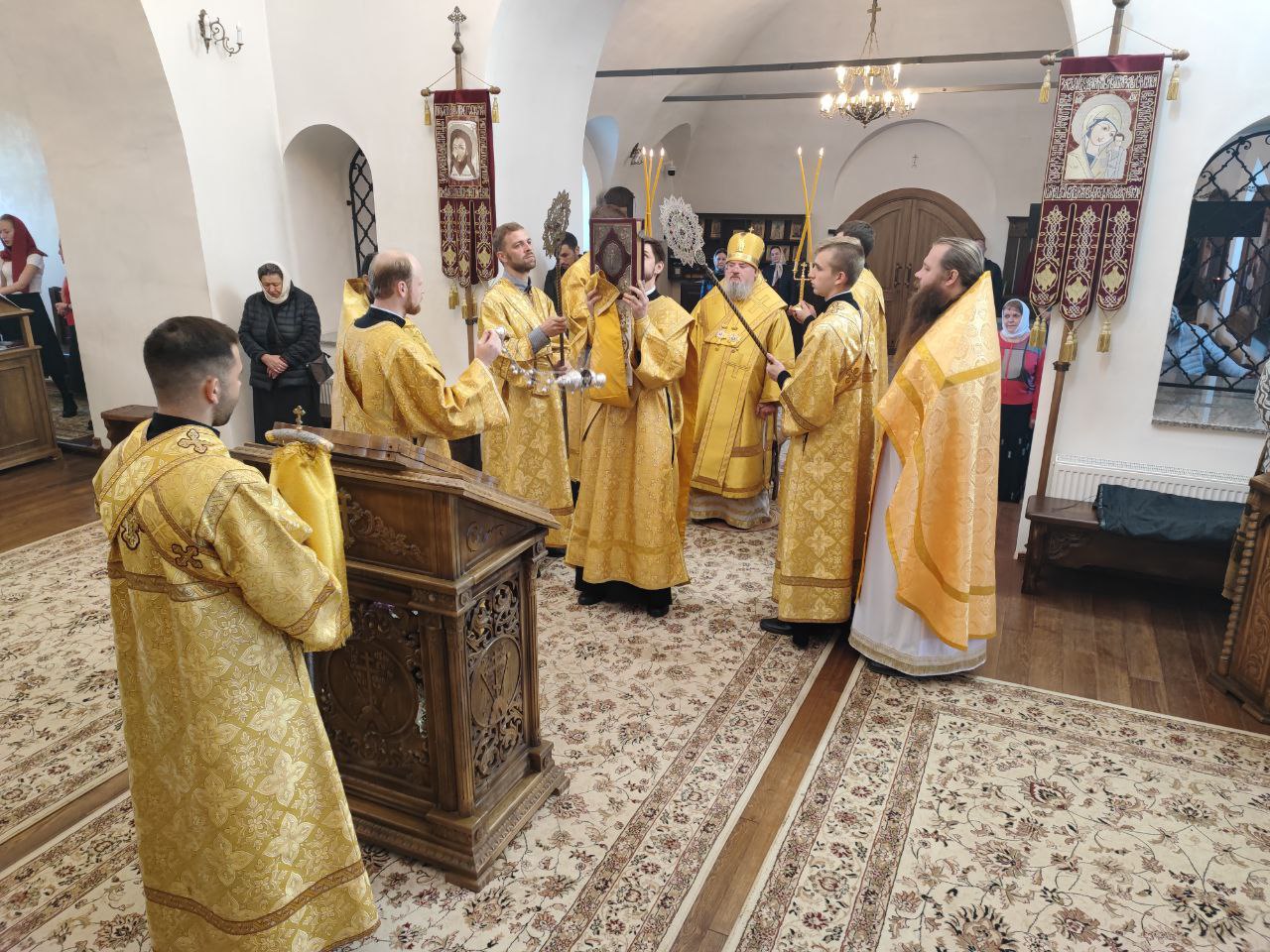 После сугубой ектении епископ Никита вознес молитву о скорейшем восстановлении мира. По благословению Святейшего Патриарха Московского и всея Руси Кирилла эта сугубая молитва совершается во всех храмах Русской Православной Церкви за каждым богослужением.