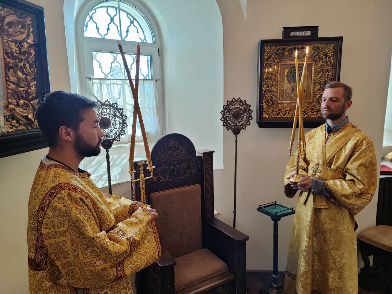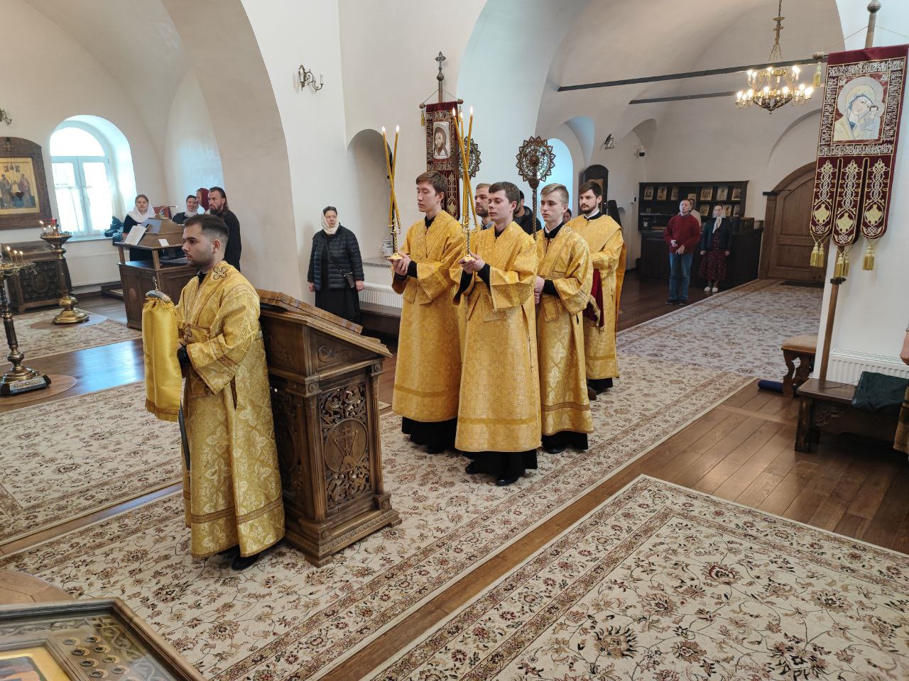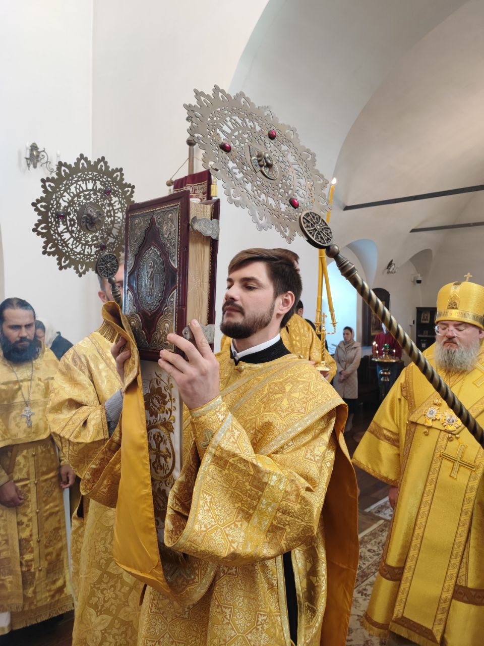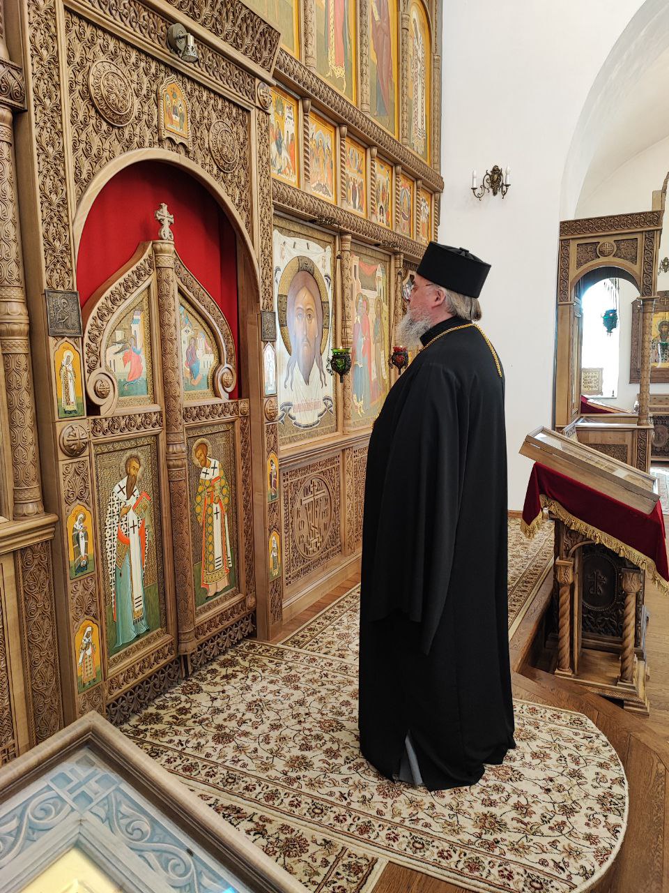 После сугубой ектении епископ Никита вознес молитву о скорейшем восстановлении мира. По благословению Святейшего Патриарха Московского и всея Руси Кирилла эта сугубая молитва совершается во всех храмах Русской Православной Церкви за каждым богослужением.