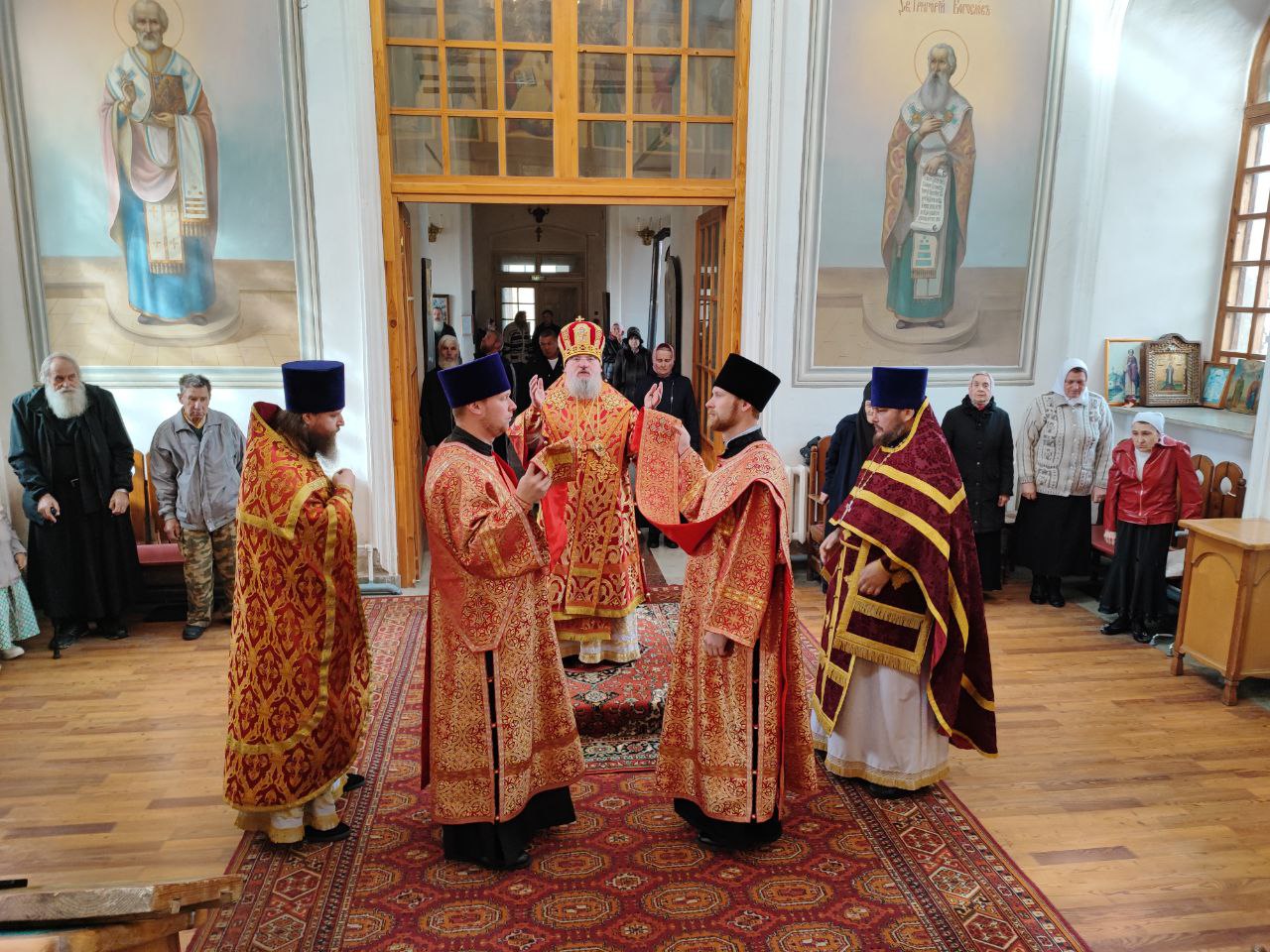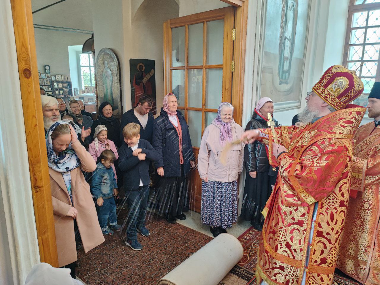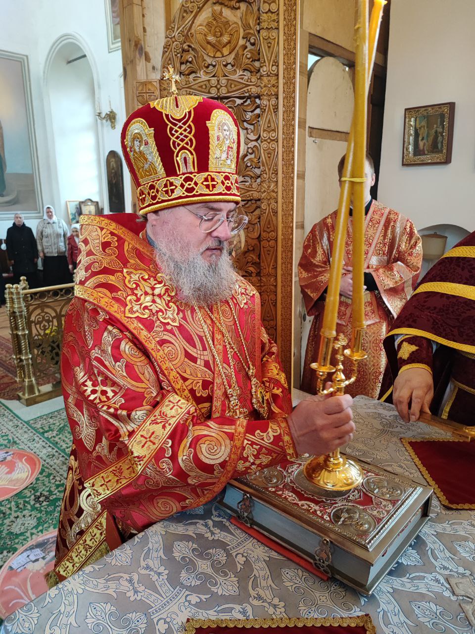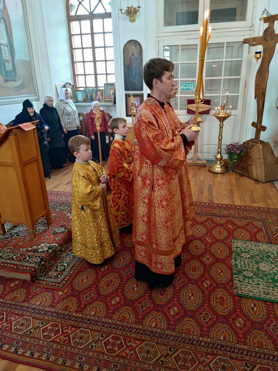 После сугубой ектении епископ Никита вознес молитву о скорейшем восстановлении мира. По благословению Святейшего Патриарха Московского и всея Руси Кирилла эта сугубая молитва совершается во всех храмах Русской Православной Церкви за каждым богослужением.