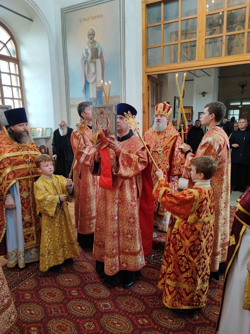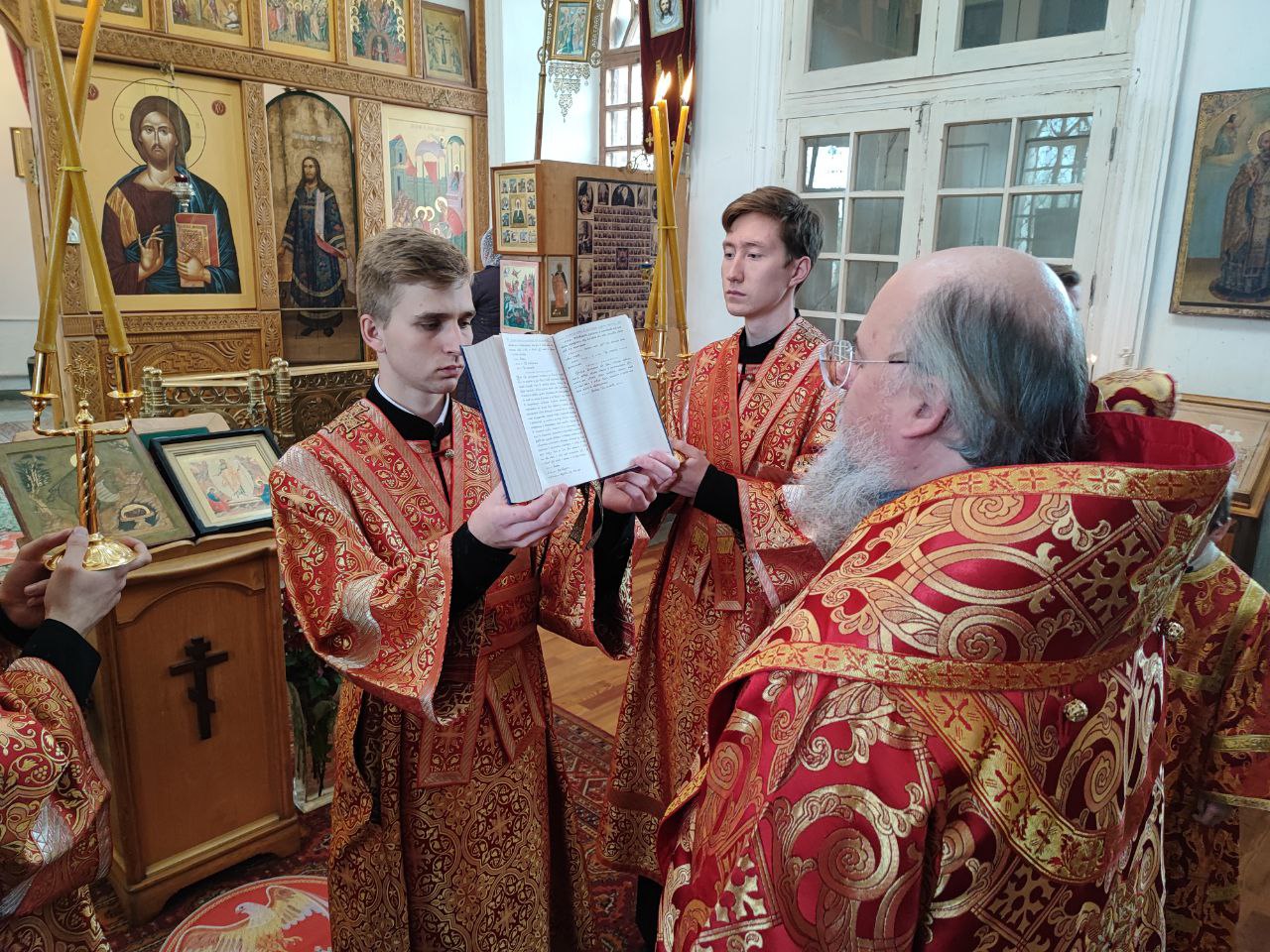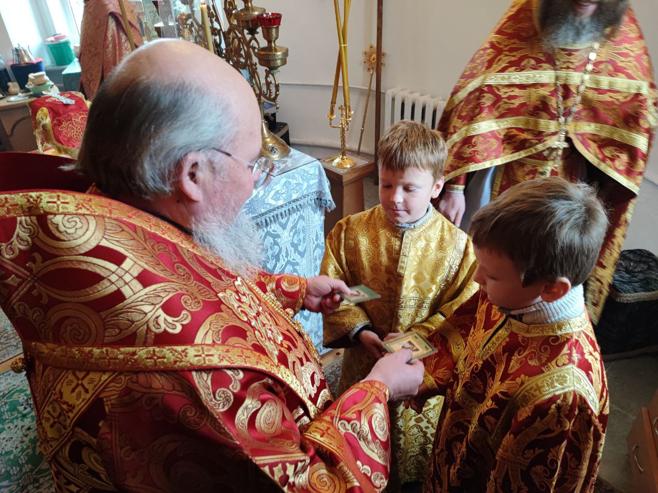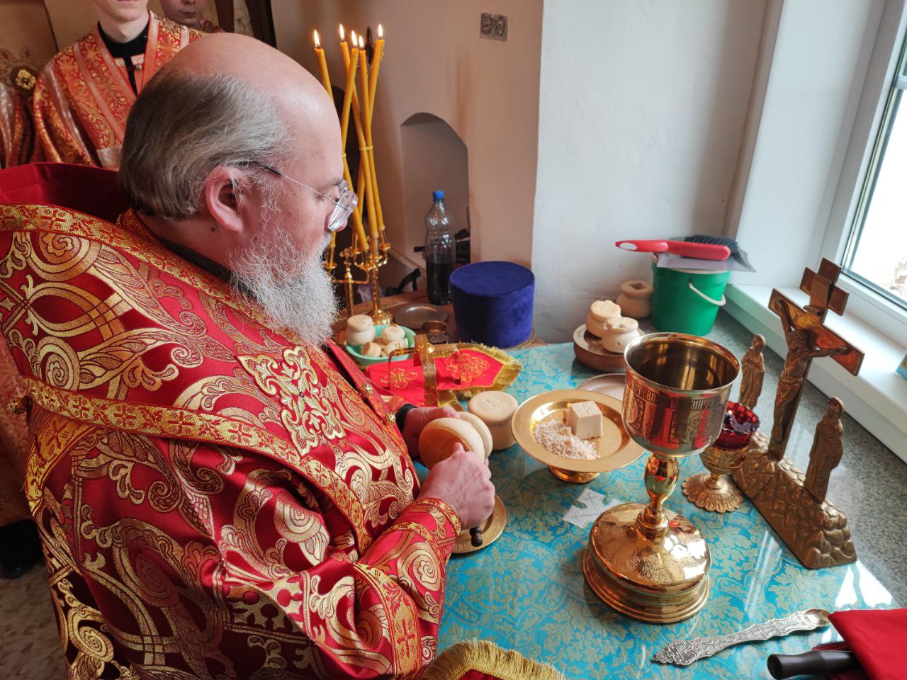 После сугубой ектении епископ Никита вознес молитву о скорейшем восстановлении мира. По благословению Святейшего Патриарха Московского и всея Руси Кирилла эта сугубая молитва совершается во всех храмах Русской Православной Церкви за каждым богослужением.
