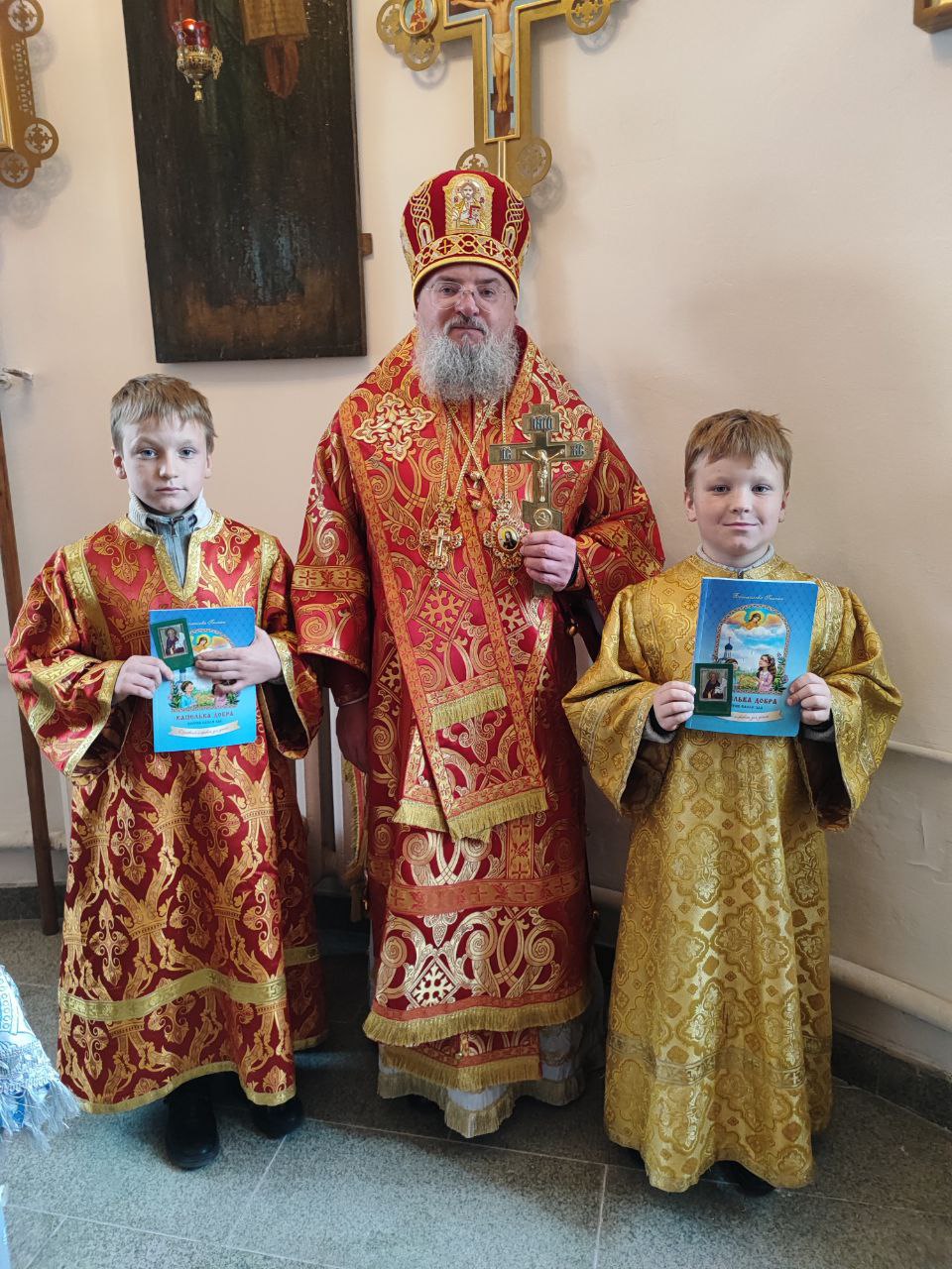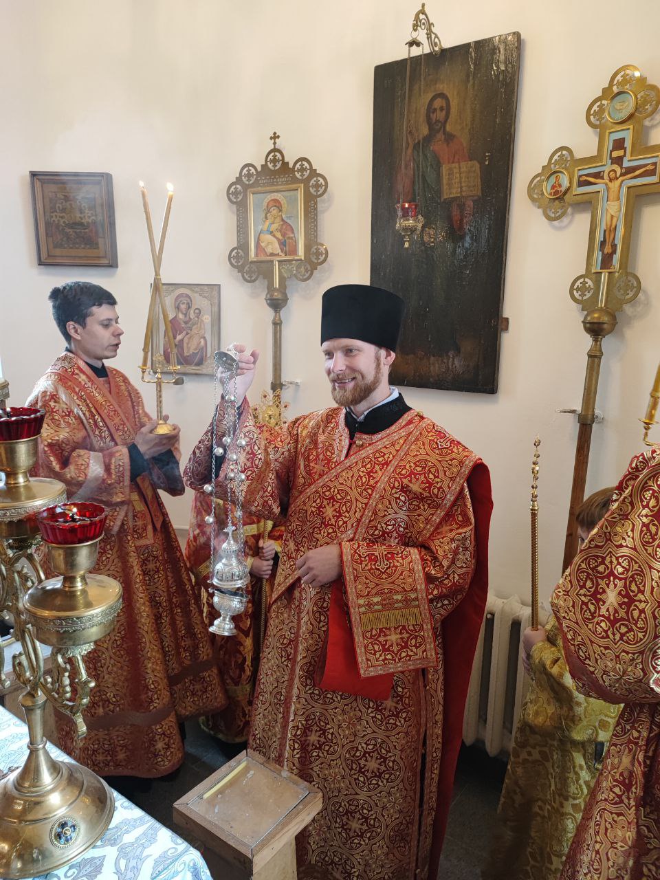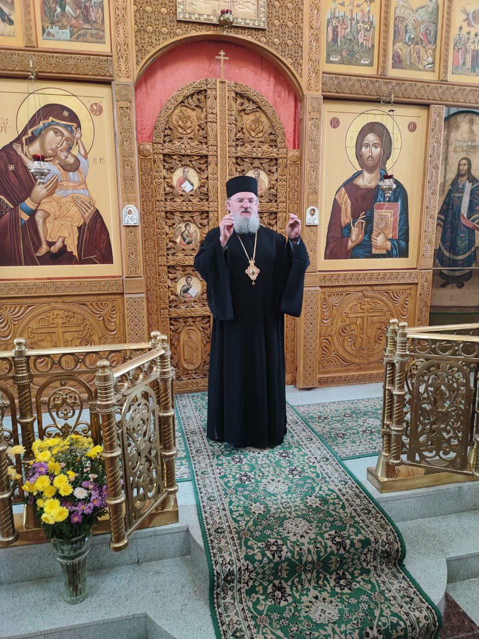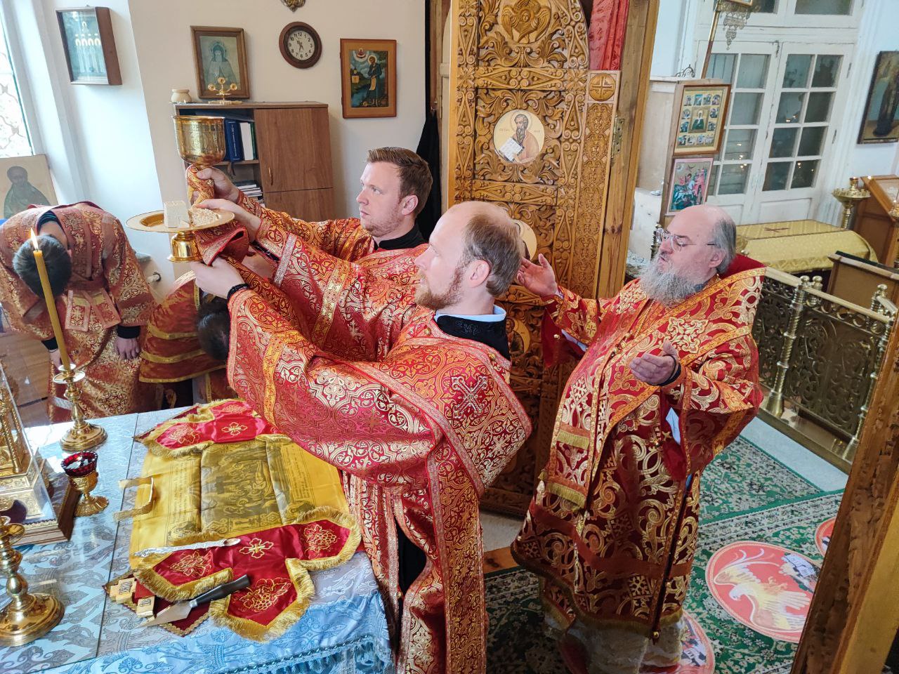 После сугубой ектении епископ Никита вознес молитву о скорейшем восстановлении мира. По благословению Святейшего Патриарха Московского и всея Руси Кирилла эта сугубая молитва совершается во всех храмах Русской Православной Церкви за каждым богослужением.