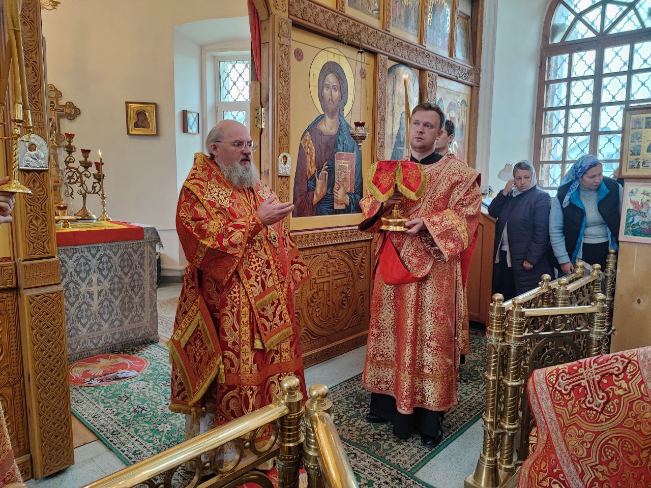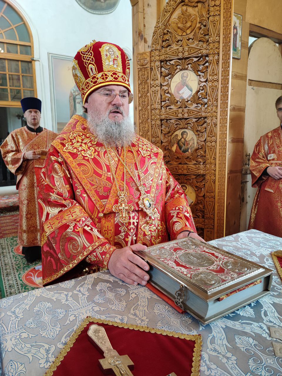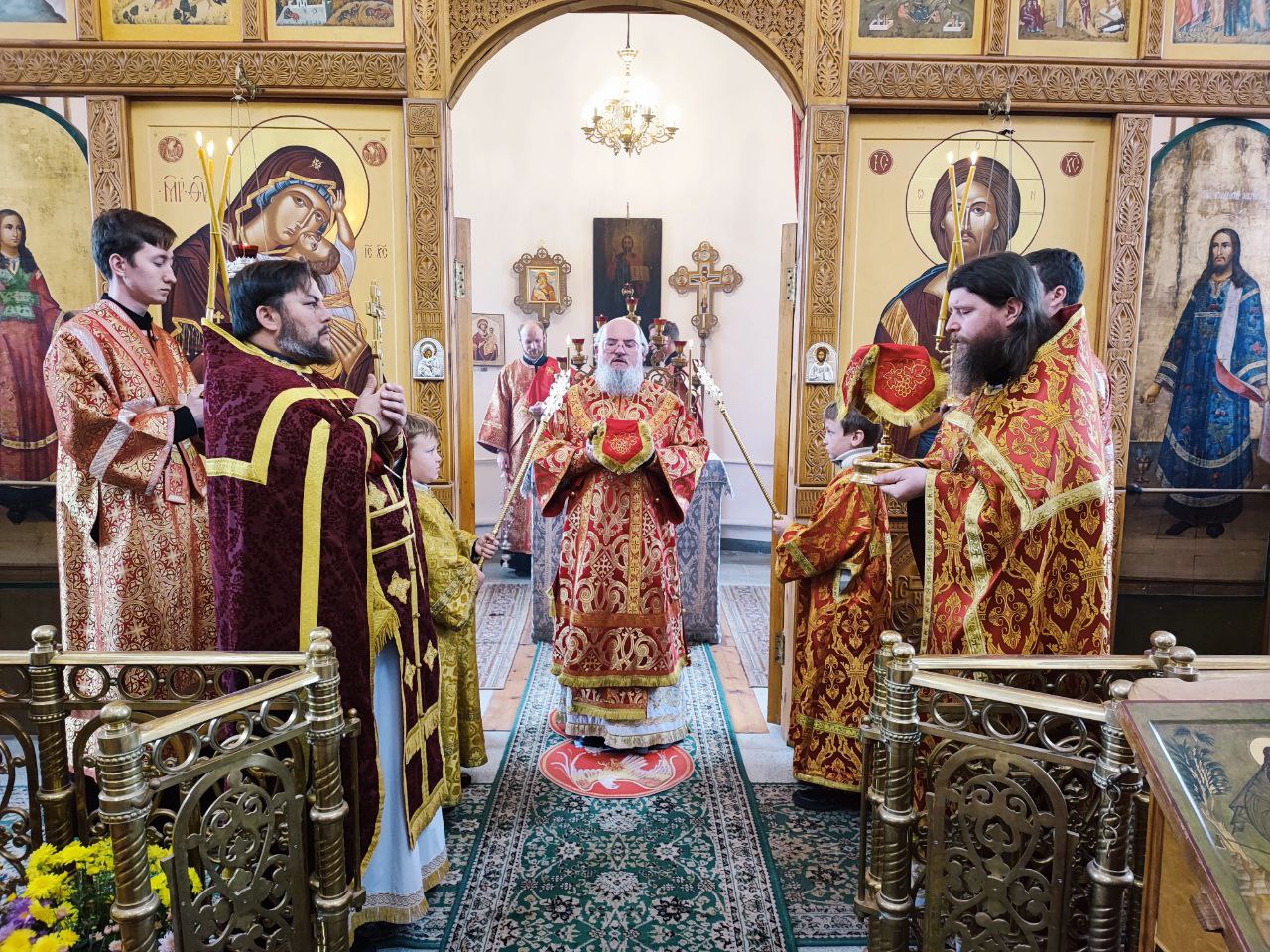 Преосвященному владыке сослужили: настоятель храма протоиерей Ярослав Мудрый, протоиерей Антоний Хатунцев, диакон Евгений Ковригин и иеродиакон Лука (Старостин).