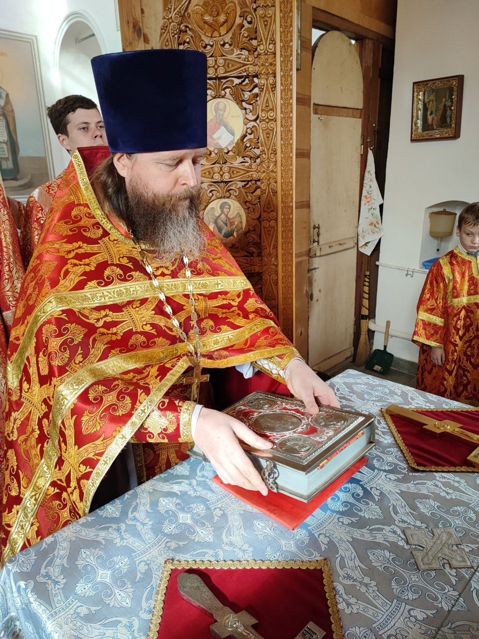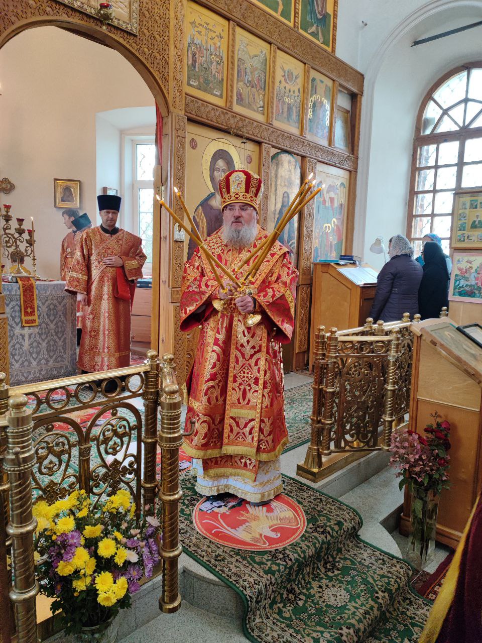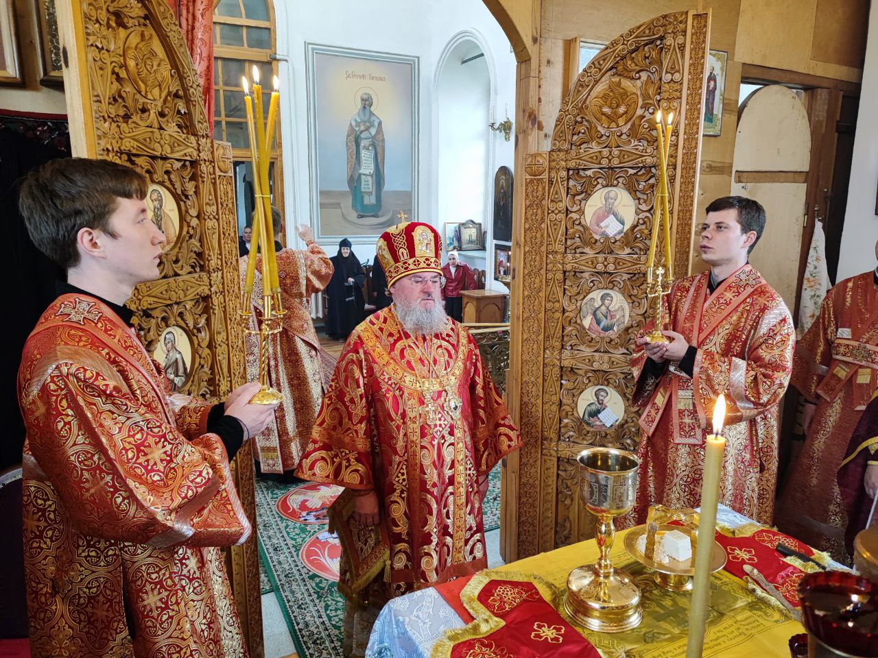 Преосвященному владыке сослужили: настоятель храма протоиерей Ярослав Мудрый, протоиерей Антоний Хатунцев, диакон Евгений Ковригин и иеродиакон Лука (Старостин).