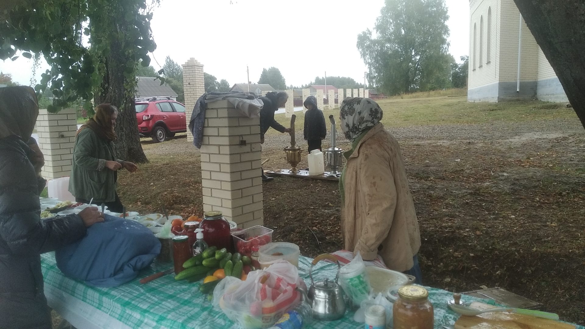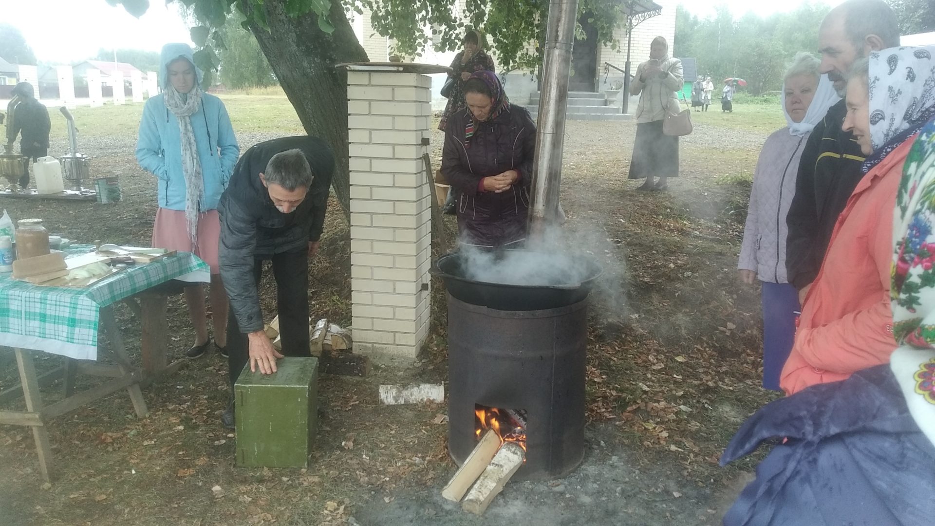 11 сентября в день воспоминания Усекновении главы Крестителя Господня Иоанна Русская Православная Церковь отмечает День трезвости. В Козельской епархии к этому дню приурочено автомобильное паломничество «За Трезвость!». В этом году в нем приняли участие около 30 человек на 8 машинах. Паломники проехали по маршруту Козельск – Хвастовичи – деревня Теребень, и помолились в храме в честь иконы Божией Матери «Неупиваемая Чаша». Акафист по традиции читали и пели все вместе. В богослужении приняли участие настоятель храма иерей Геннадий Сафиев, настоятель Свято-Никольского храма села Бояновичи иерей Андрей Ахмедов и епархиальный координатор по утверждению трезвости иерей Сергий Дрозд. Практически сразу после выезда из Козельска колонна попала под дождь, который в пути постепенно усиливался. Когда подъехали к храму, поливало уже хорошо. После акафиста была запланирована общая трапеза. Прямо перед храмом раскинулось очень большое дерево, под ветвями которого и расположилась печка с 60-литровым казаном, два самовара и столы. Священники и те, кто ехал помолиться о страждущих родственниках или о своем избавлении от страстей табакокурения, пьянства и остальных видов наркомании, пошли в храм, а группа поддержки к концу акафиста уже накрыла столы и приготовила замечательный постный плов.