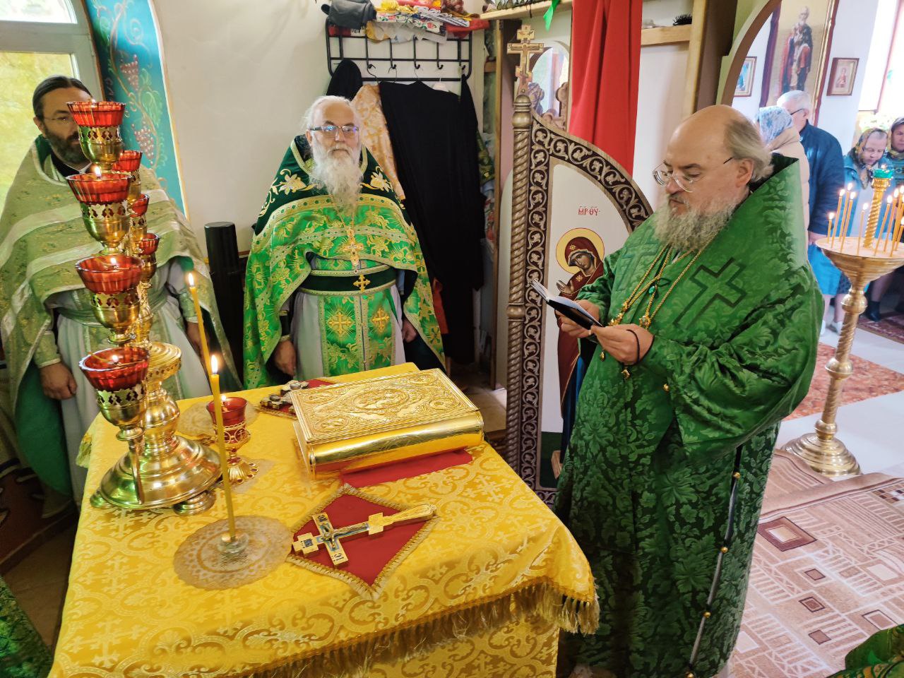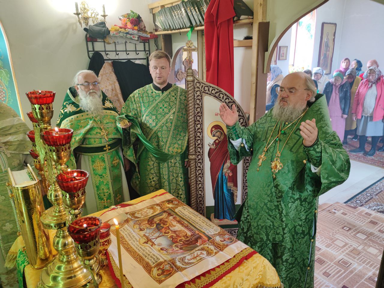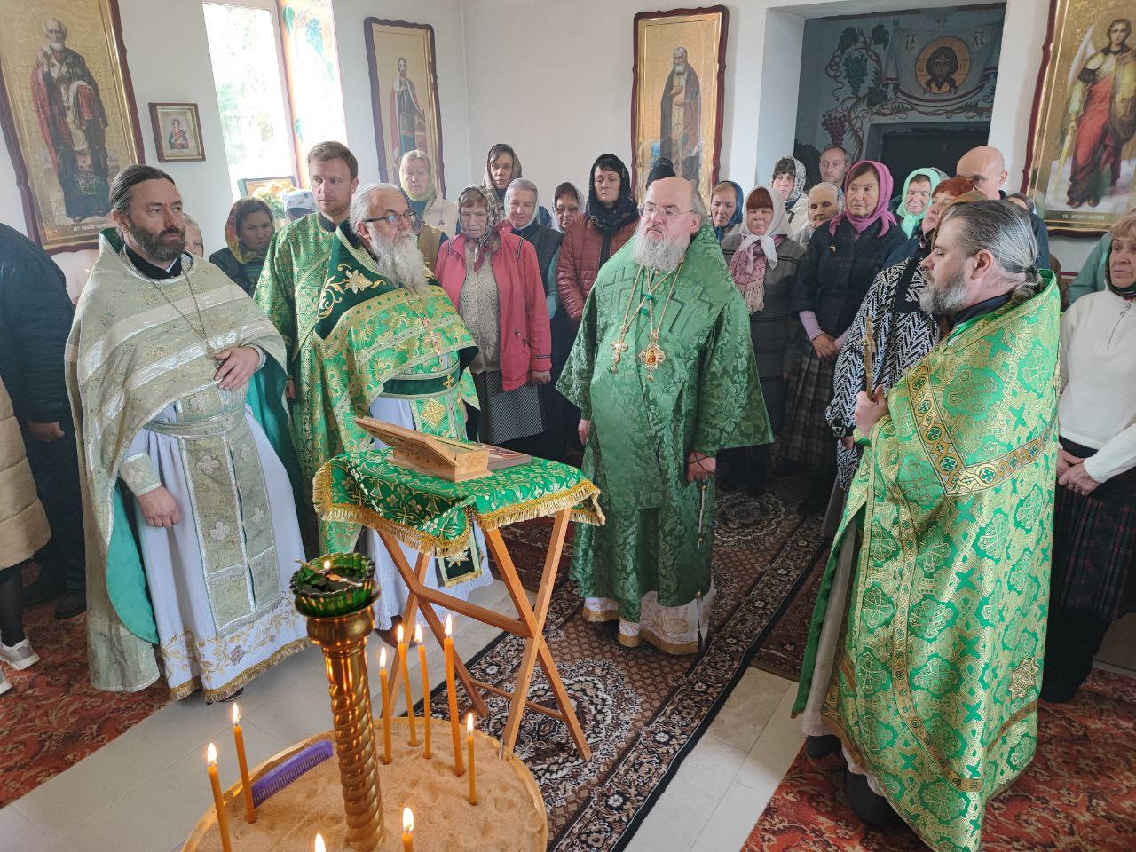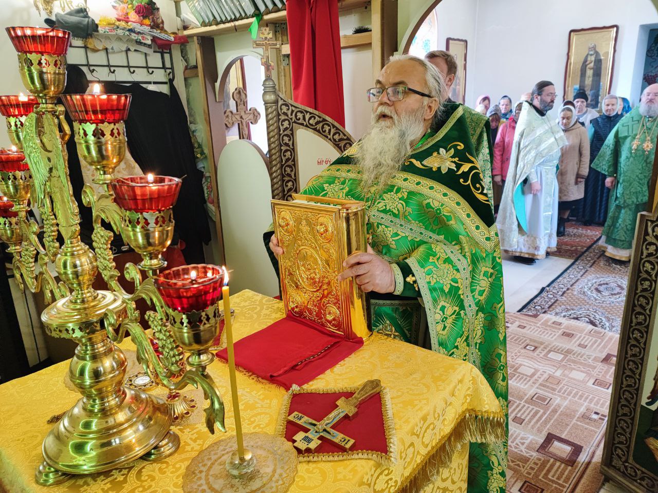 Преосвященному владыке сослужили: протоиерей Алексий Жиганов – благочинный округа, протоиерей Михаил Карпенко, иерей Георгий Краснов – настоятель храма и диакон Евгений Ковригин.