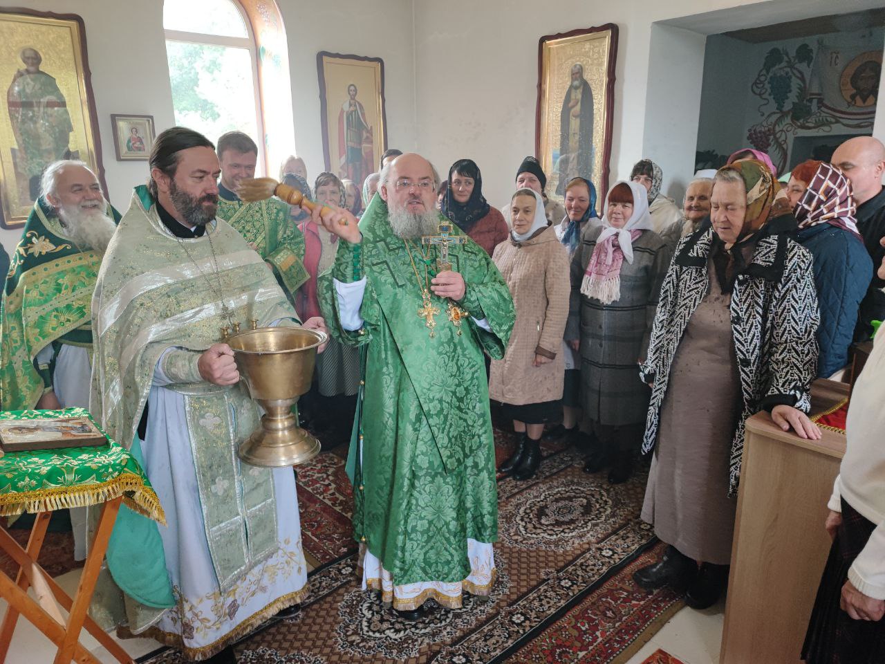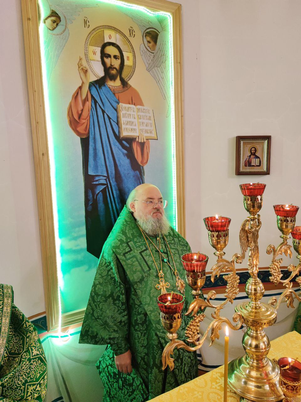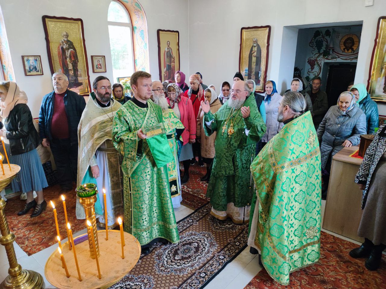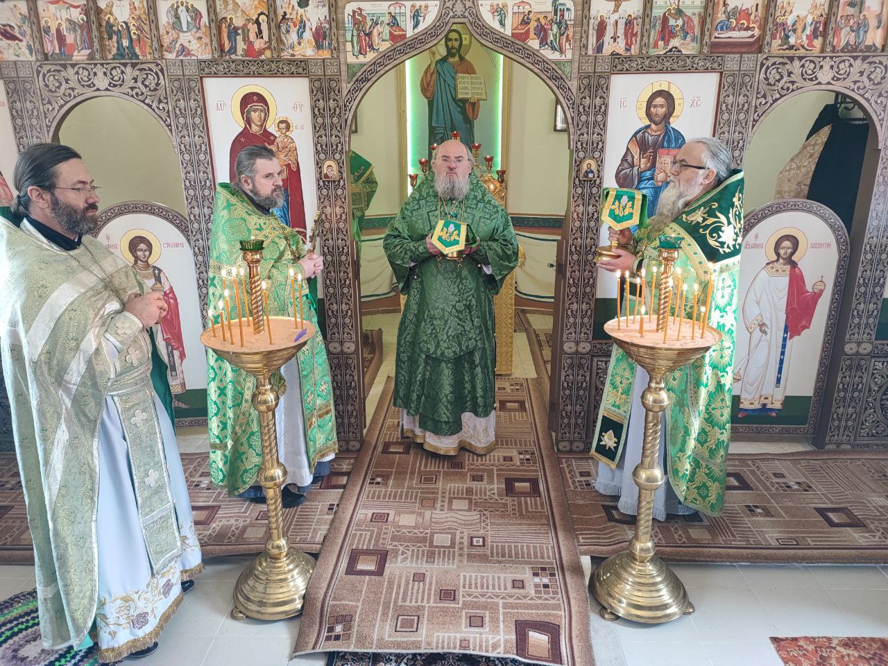 Преосвященному владыке сослужили: протоиерей Алексий Жиганов – благочинный округа, протоиерей Михаил Карпенко, иерей Георгий Краснов – настоятель храма и диакон Евгений Ковригин.