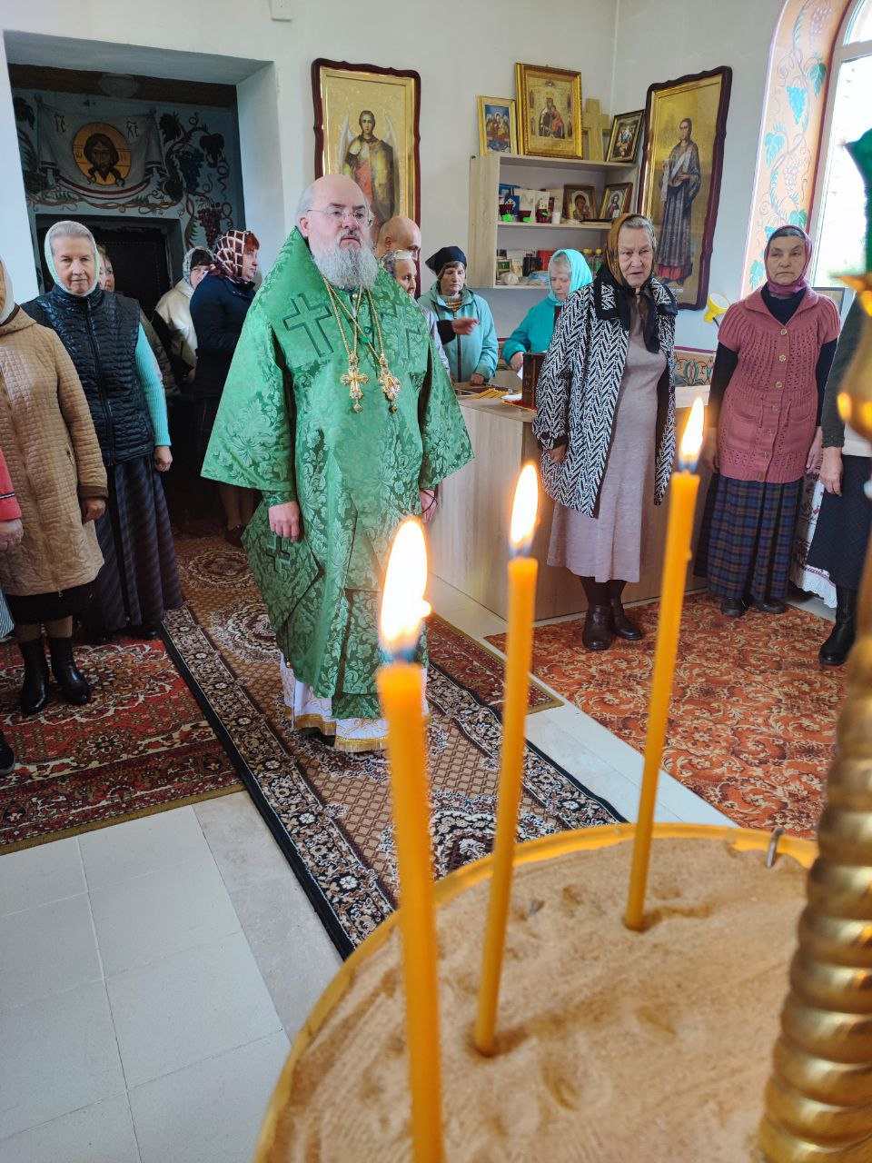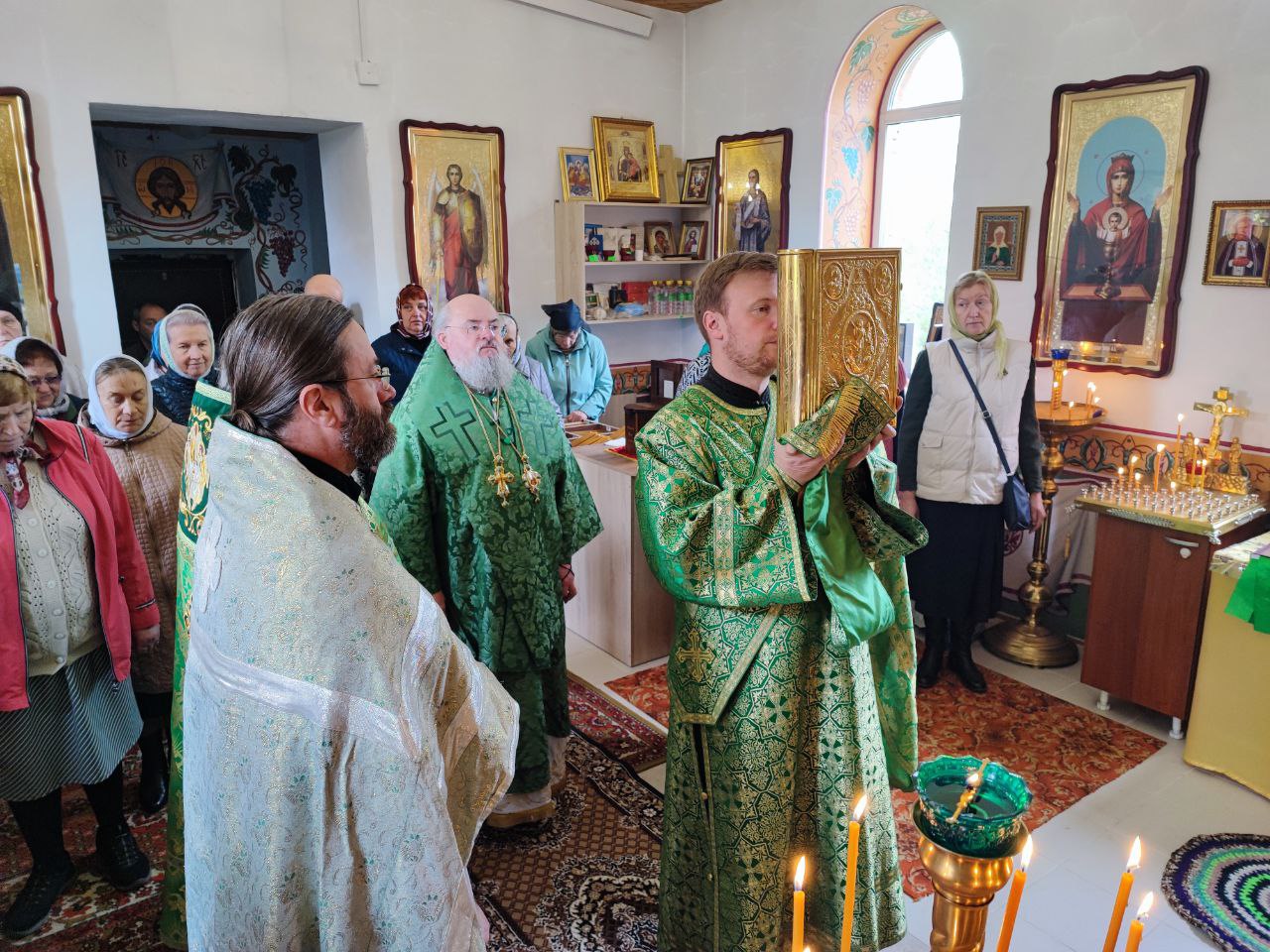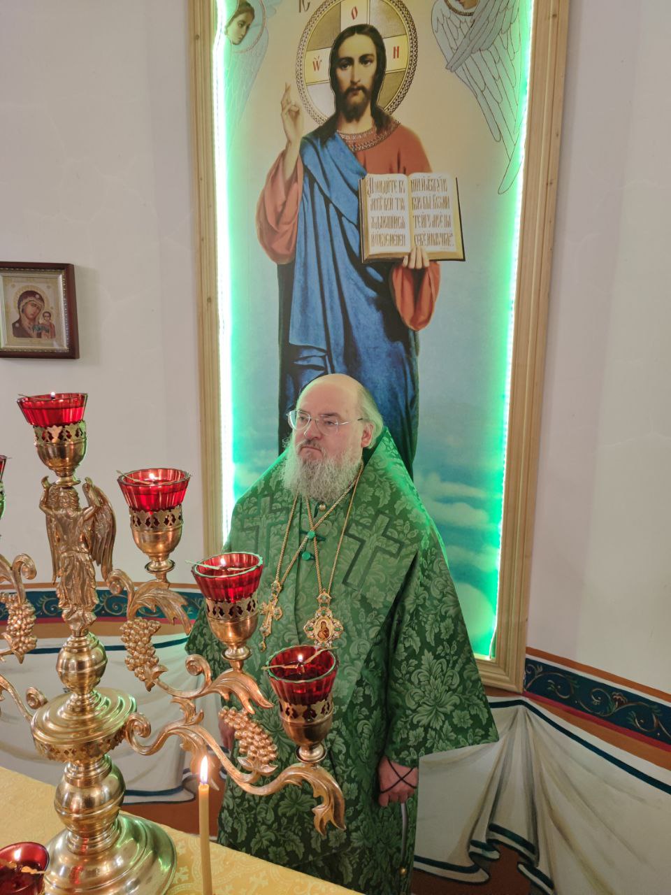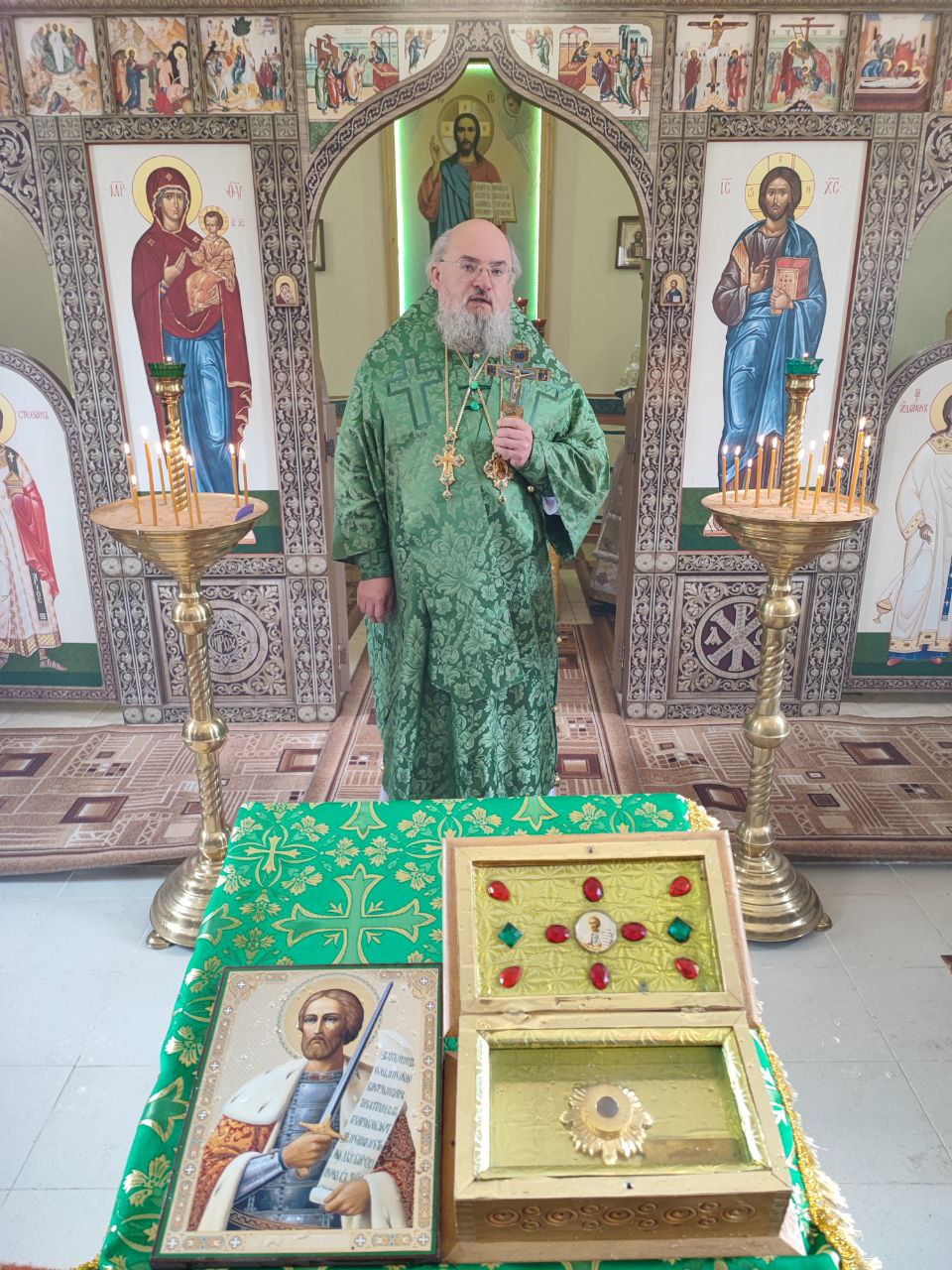 Преосвященному владыке сослужили: протоиерей Алексий Жиганов – благочинный округа, протоиерей Михаил Карпенко, иерей Георгий Краснов – настоятель храма и диакон Евгений Ковригин.