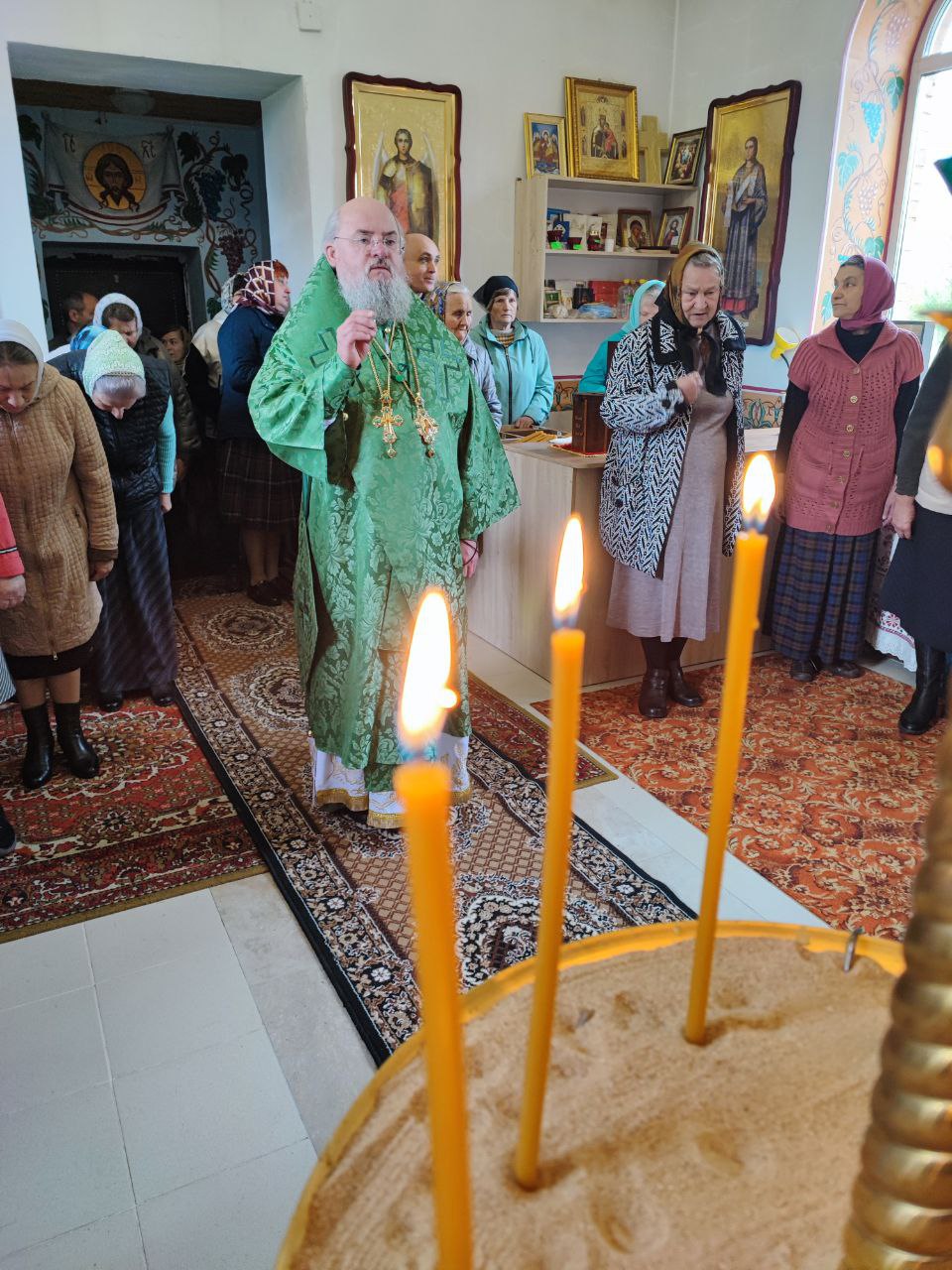 После сугубой ектении епископ Никита вознес молитву о скорейшем восстановлении мира. По благословению Святейшего Патриарха Московского и всея Руси Кирилла эта сугубая молитва совершается во всех храмах Русской Православной Церкви за каждым богослужением.