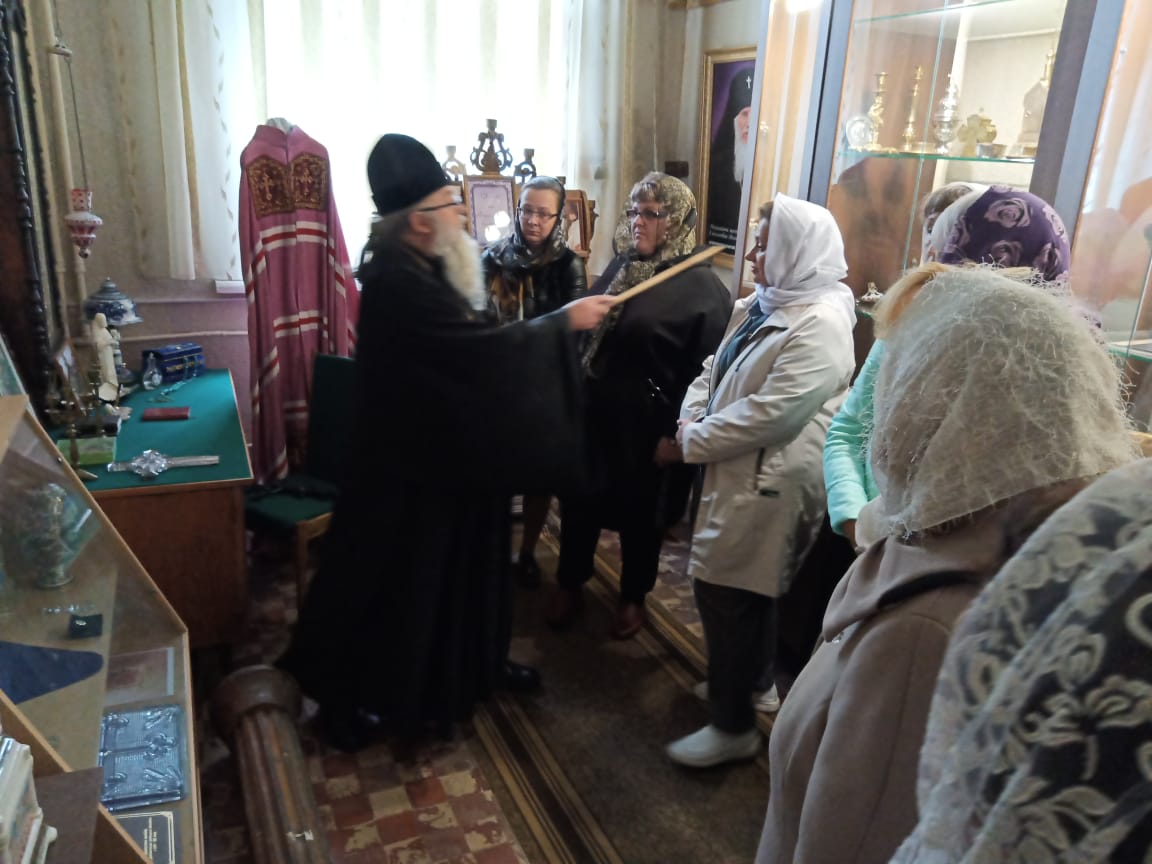 14 сентября 2022 года в День Церковного Новолетия, после богослужений, благочинный Людиновского округа Козельской епархии  настоятель Казанского собора города Людиново протоиерей Алексий Жиганов провел экскурсию в храме для воспитателей детских садов города. Экскурсия на тему «Устройство и убранство храма» была организована в рамках заседания районного методического объединения педагогов дошкольных образовательных организаций по основам православной культуры.  Экскурсия получилось интересной, познавательной и насыщенной: было рассказано про азы православия, подробно про устройство храма и краткую историю собора; прошло знакомство со святынями храма.  Дополнительно к запланированной экскурсии, педагоги посетили церковно – краеведческий музей Казанского собора. И здесь для слушателей много интересного рассказал им настоятель —  фотографии о жизни священника Викторина Зарецкого, его родных, личные вещи, также облачения и церковная утварь архиепископа Георгия (Грязнова), старинные богослужебные книги… В другой экспозиции музея слушатели погрузились в старину русского быта: рушники, сундуки с нарядами, рабочий инвентарь и многое другое. За короткое время невозможно рассказать все подробно, поэтому остался еще интерес и дальше, глубже и подробнее изучать все необыкновенные места в музее Казанского собора и в самом храме. В заключение отец Алексий поздравил педагогов с ЦЕРКОВНЫМ НОВОЛЕТИЕМ, пожелав помощи Божией, и подарил на память каждому духовную литературу, а также выразил надежду, что почаще они будут бывать в храме, посещать музей со своими подопечными детками, делиться с ними полученными знаниями.