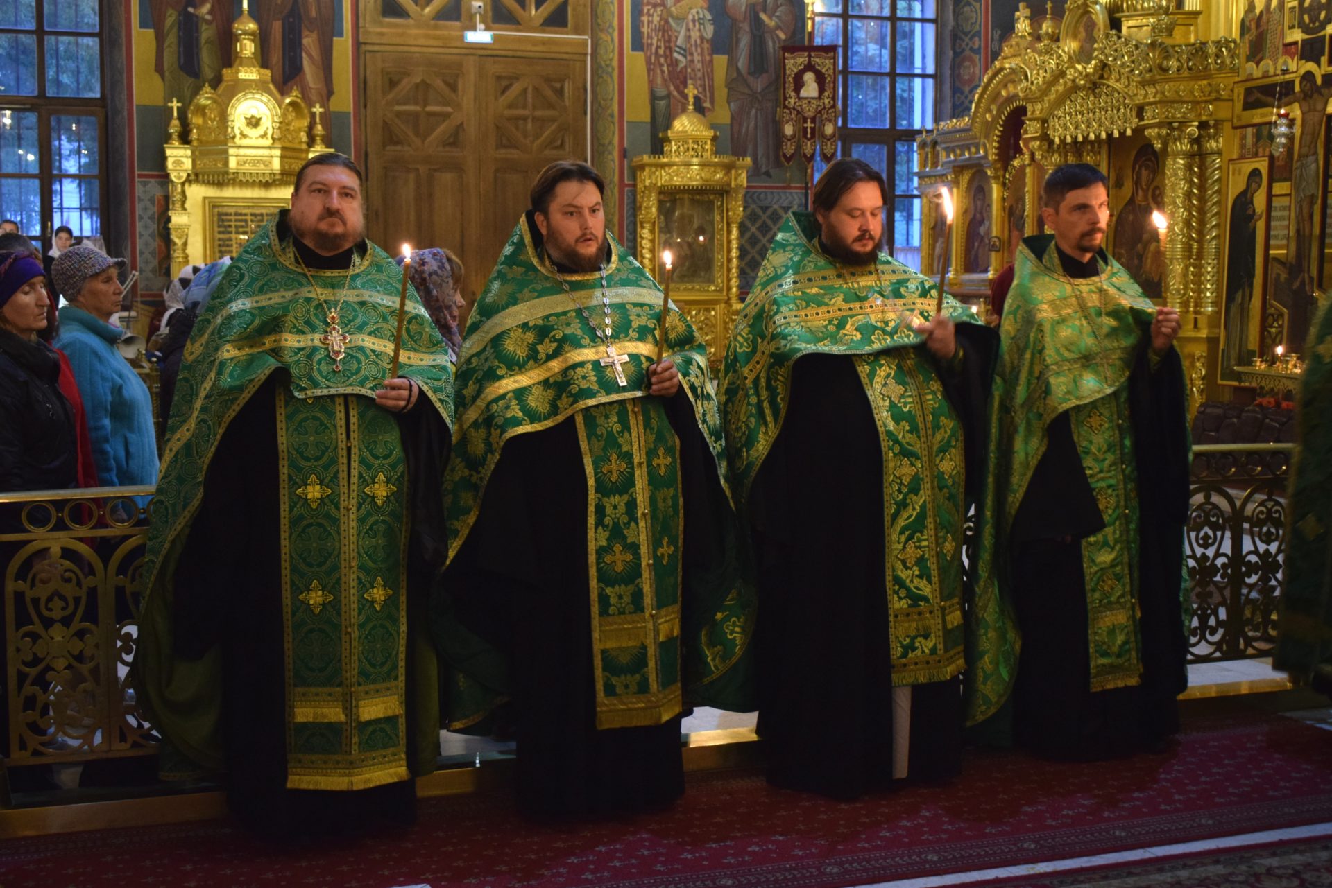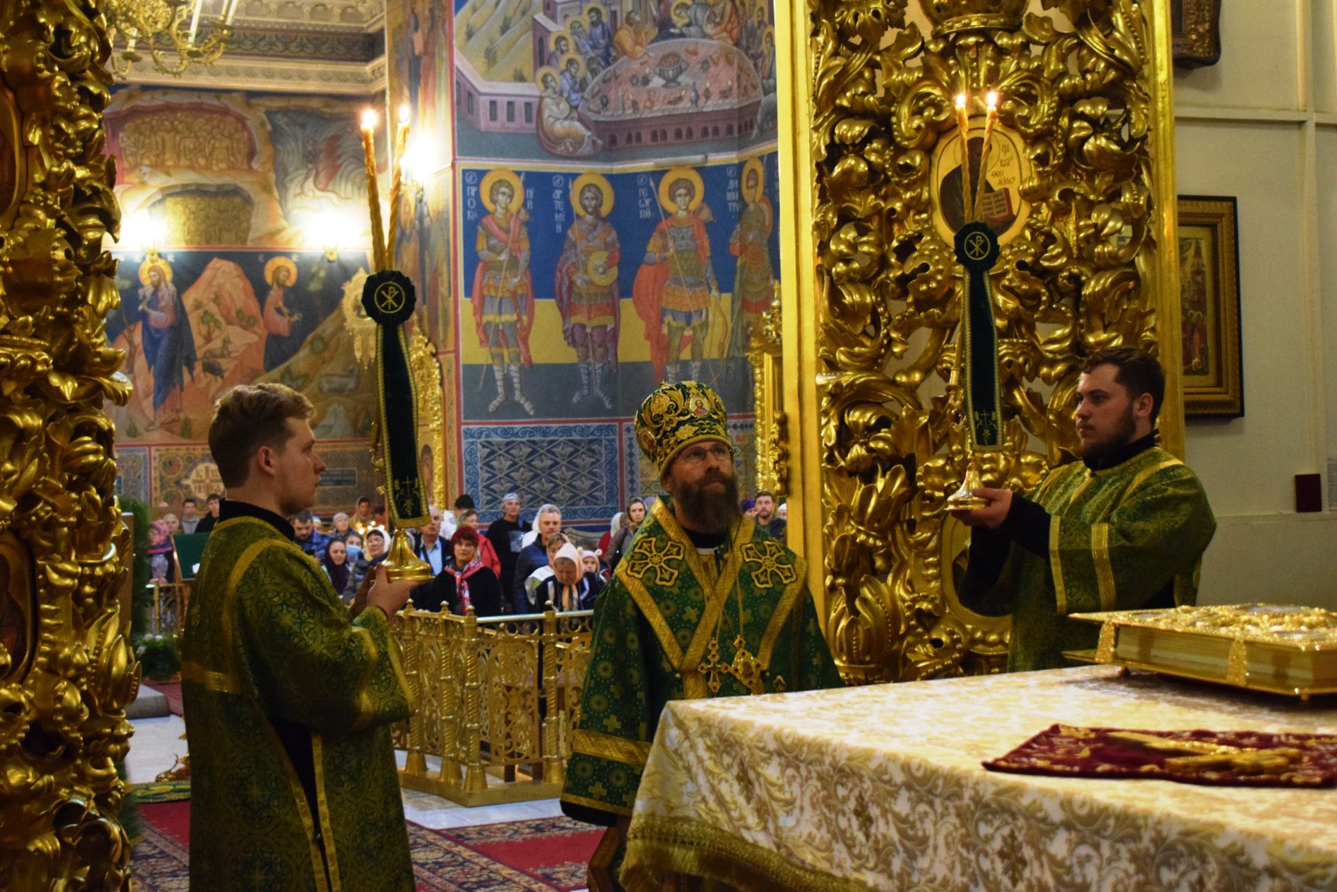 17 сентября архиереи Калужской митрополии митрополит Калужский и Боровский Климент, архиепископ Песоченский и Юхновский Максимилиан, епископ Козельский и Людиновский Никита, епископ Тарусский Леонид совершили праздничное всенощное бдение. Архипастырям сослужили: протоиерей Андрей Богомолов — благочинный первого Калужского благочиния 5-го округа Калужской епархии, игумен Мефодий (Пронькин) — секретарь Калужской епархии, протоиерей Евгений Чупров, протоиерей Антоний Хатунцев, иеромонах Феофан (Сурин), иерей Максим Лихонин, иерей Кирилл Хланта, иерей Илия Комягин, иерей Стефан Бойко, протодиаконы Алексий Хамтеев и Сергий Комаров, диаконы Георгий Бурцев, Павел Карпенко, Максим Тихоцкий и Николай Кабичкин. За богослужением молились главный федеральный инспектор по Калужской области аппарата полномочного представителя Президента Российской Федерации в Центральном федеральном округе Князев Игорь Федорович, председатель Законодательного Собрания Калужской области Новосельцев Геннадий Станиславович.